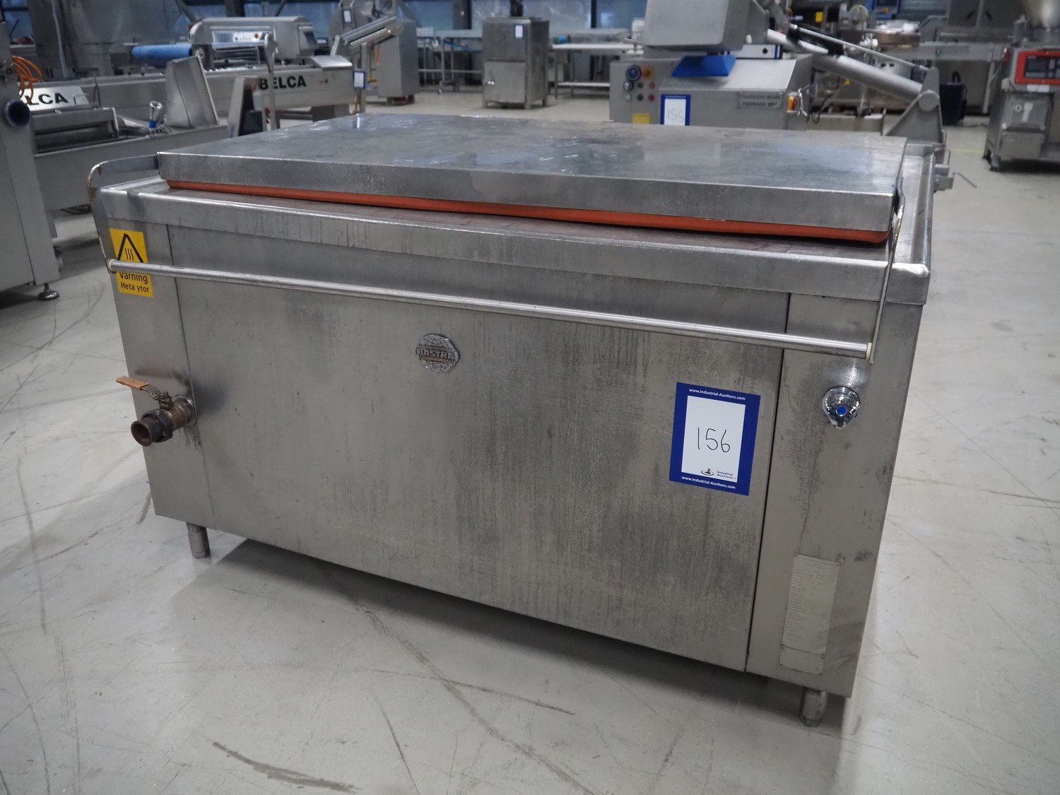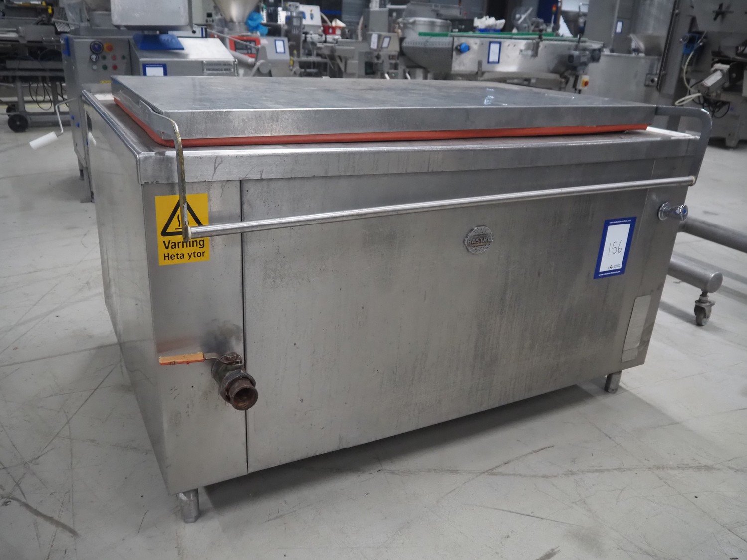 Bastra cooking vessel, type: 8110, year of construction: 2006, 230 V, 50 Hz, 1.5 kW, volume: 500 liter, gas heated, dimensions: 1700 mm x 1350 mm x 1100 mm.