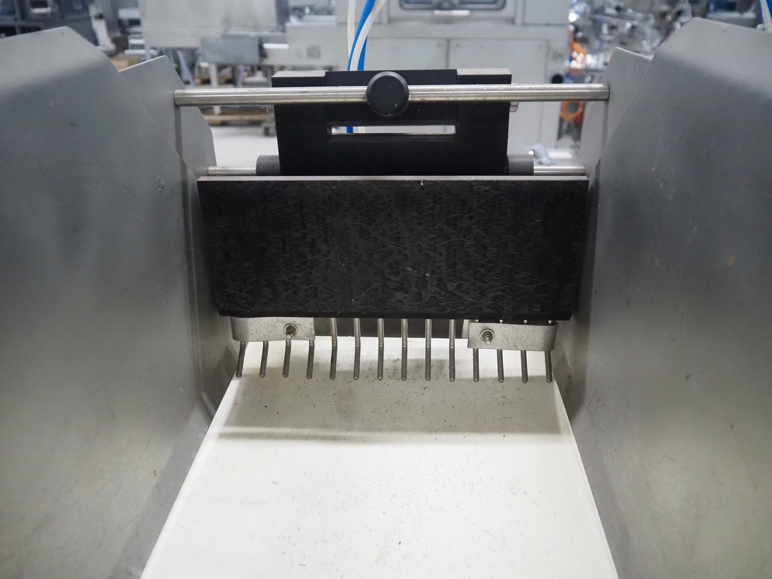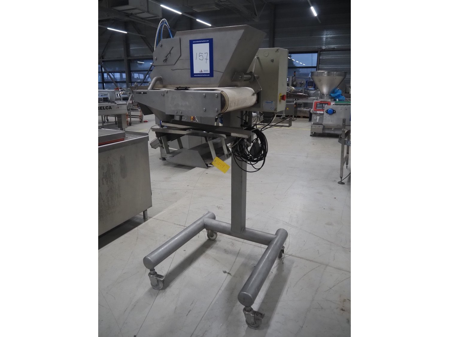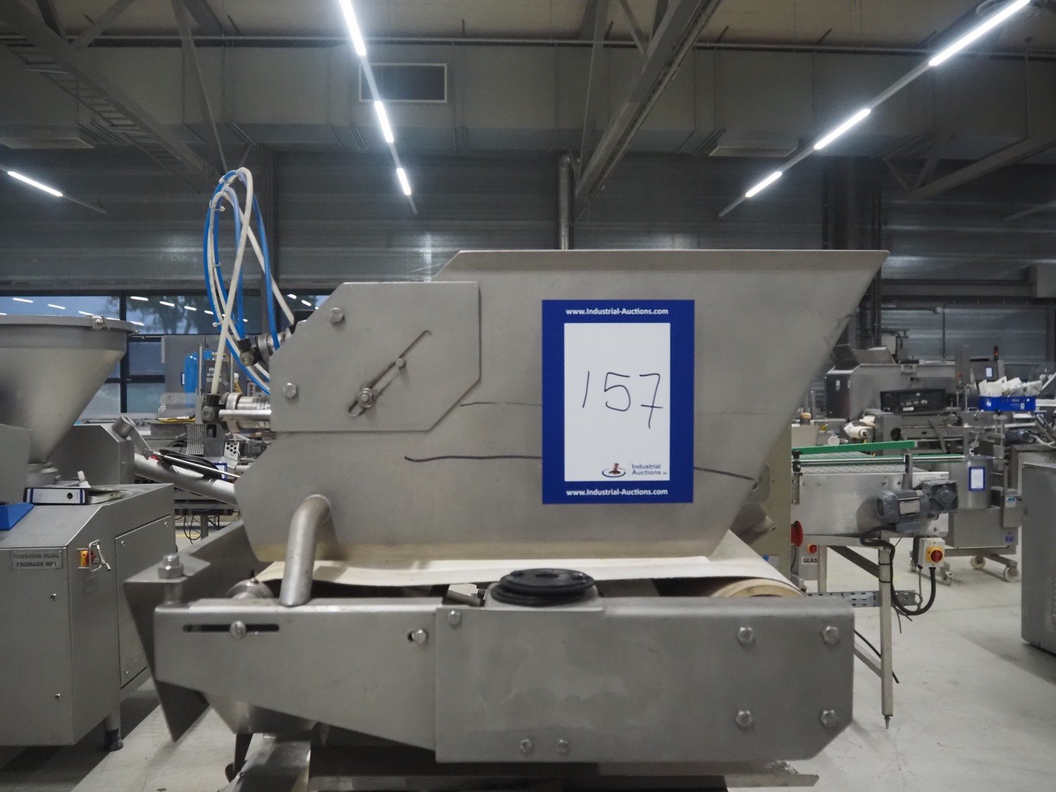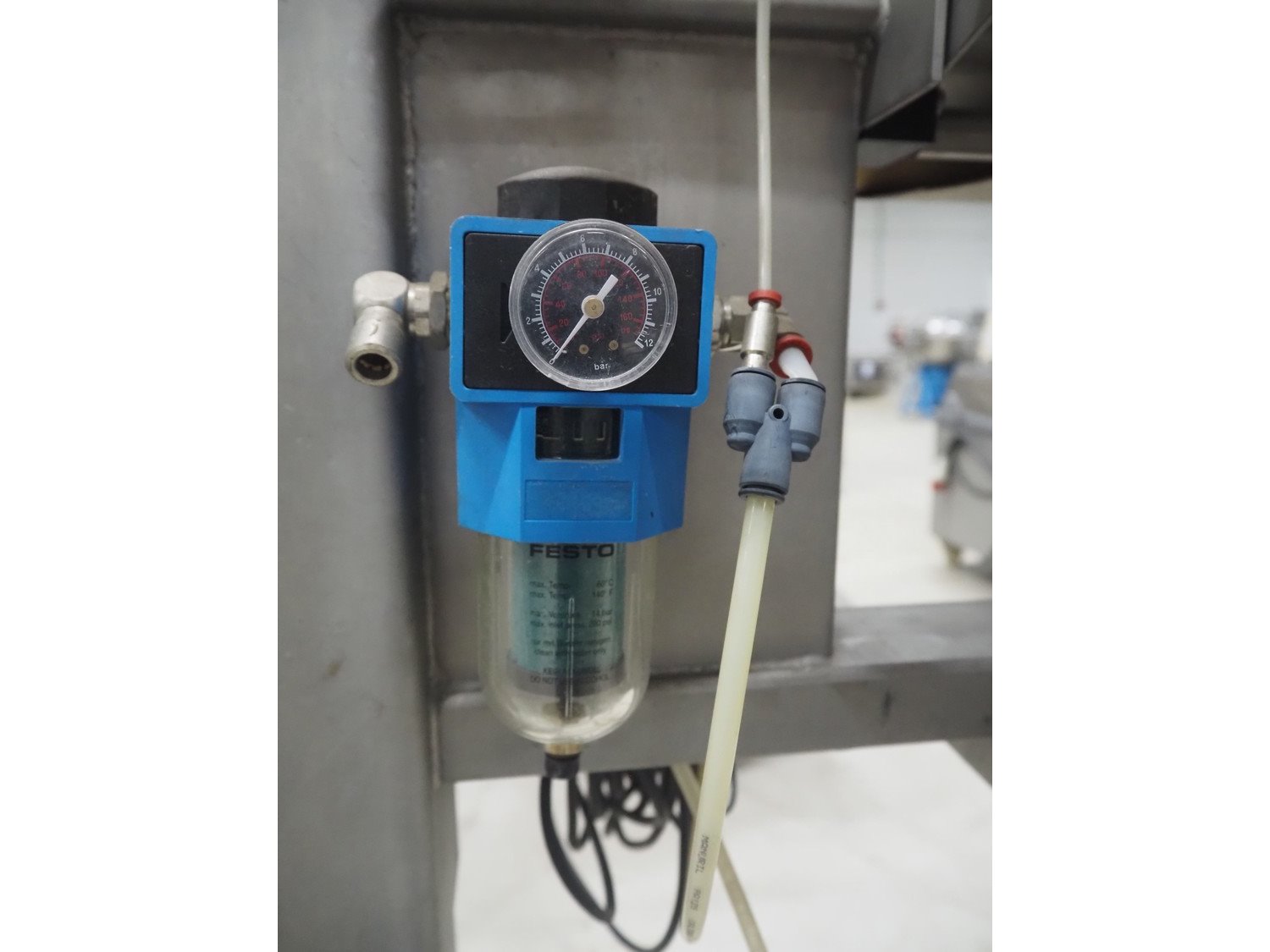 Fillpack mobile infeed hopper, type: DV2, number: 90105, year of construction: 1999, plastic belt, belt width: 680 mm, gutter width: 210 mm, total dimensions: 840 mm x 900 mm x 1800 mm.