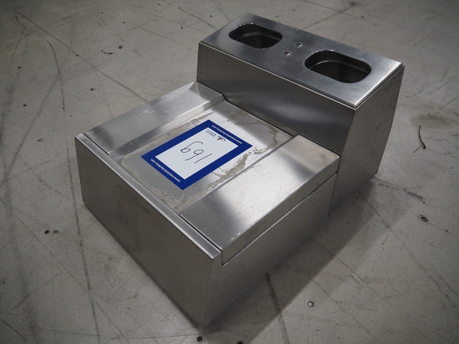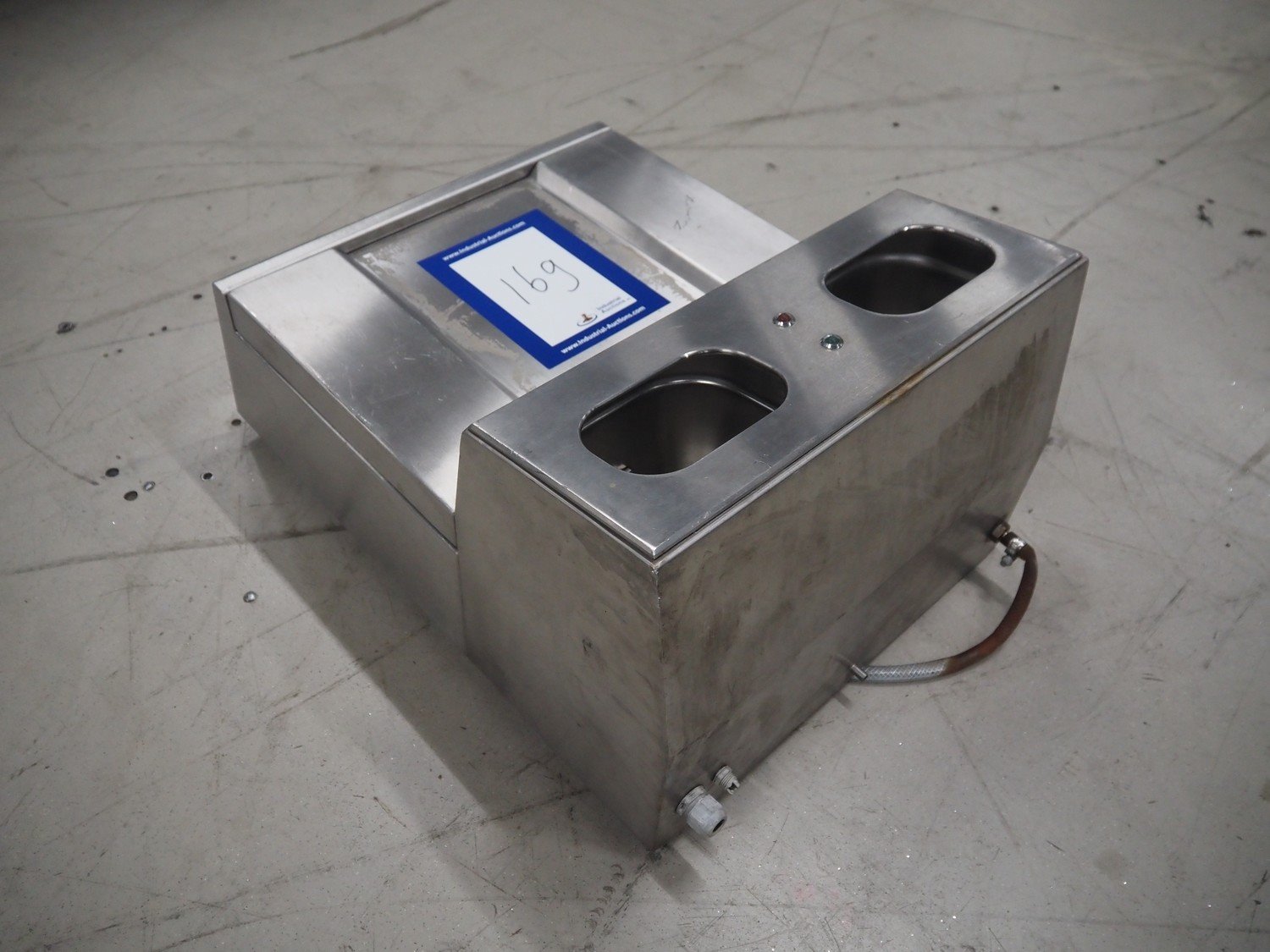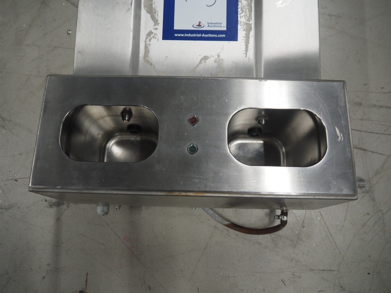 Itec hand disinfection unit, type: 23700, number: 0240, year of construction: 04/01, 230 V, 50 Hz, 0.1 kW, dimensions: 560 mm x 640 mm x 320 mm.