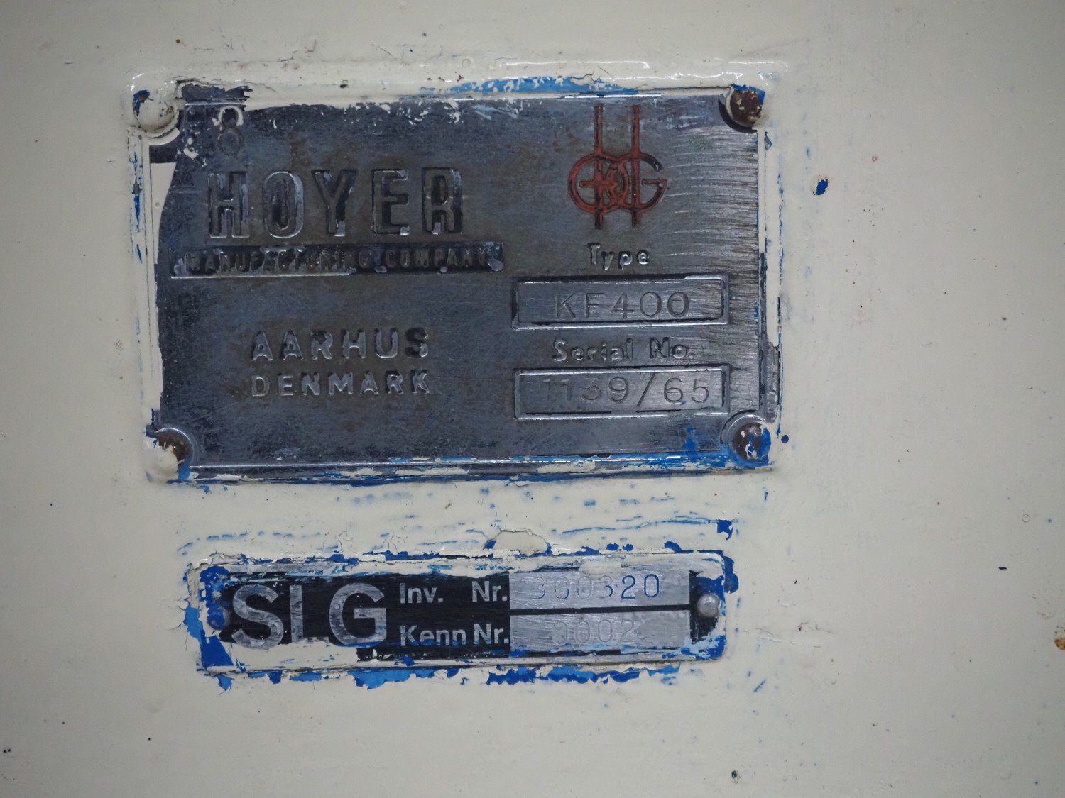 Hoyer continuous ice-cream machine, type: KF400, serial number: 1139/65, dimensions: 1850 mm x 650 mm x 1650 mm.