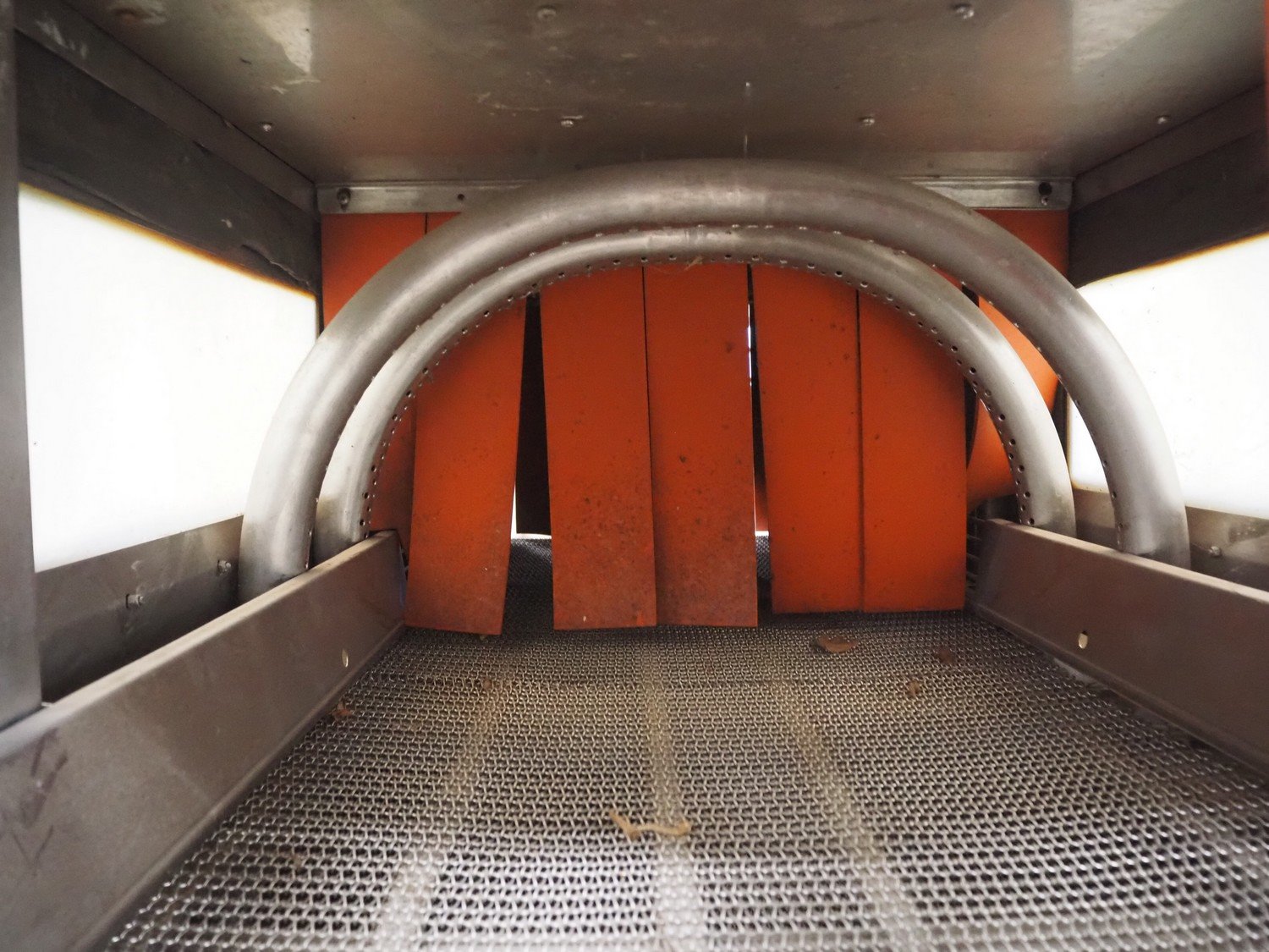 Spraying belt, s/s belt, belt width: 590 mm, clearance: 550 mm x 440 mm, total dimensions: 1850 mm x 1300 mm x 1750 mm.