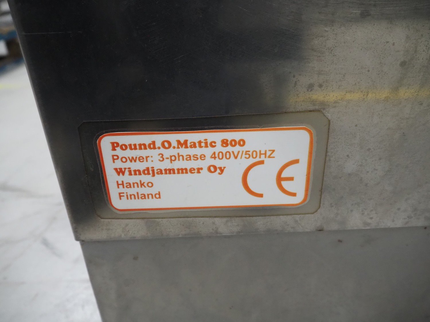 Windjammer Oy pounding machine, model: Pound.O.Matic 800, 400 V, 3 Ph, 50 Hz, diameter pounder: 260 mm, total dimensions: 700 mm x 430 mm x 730 mm.