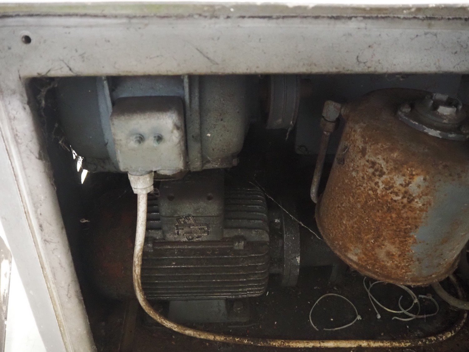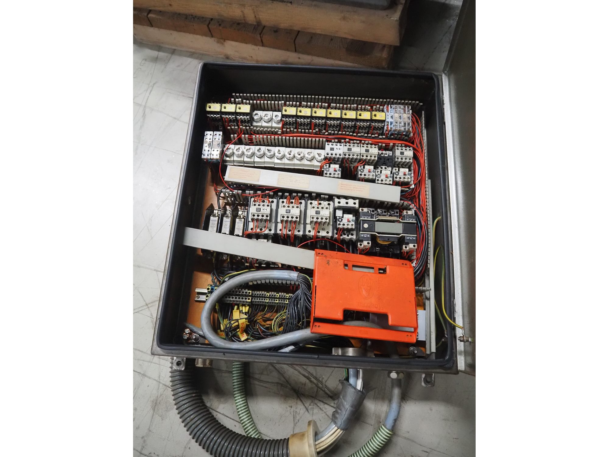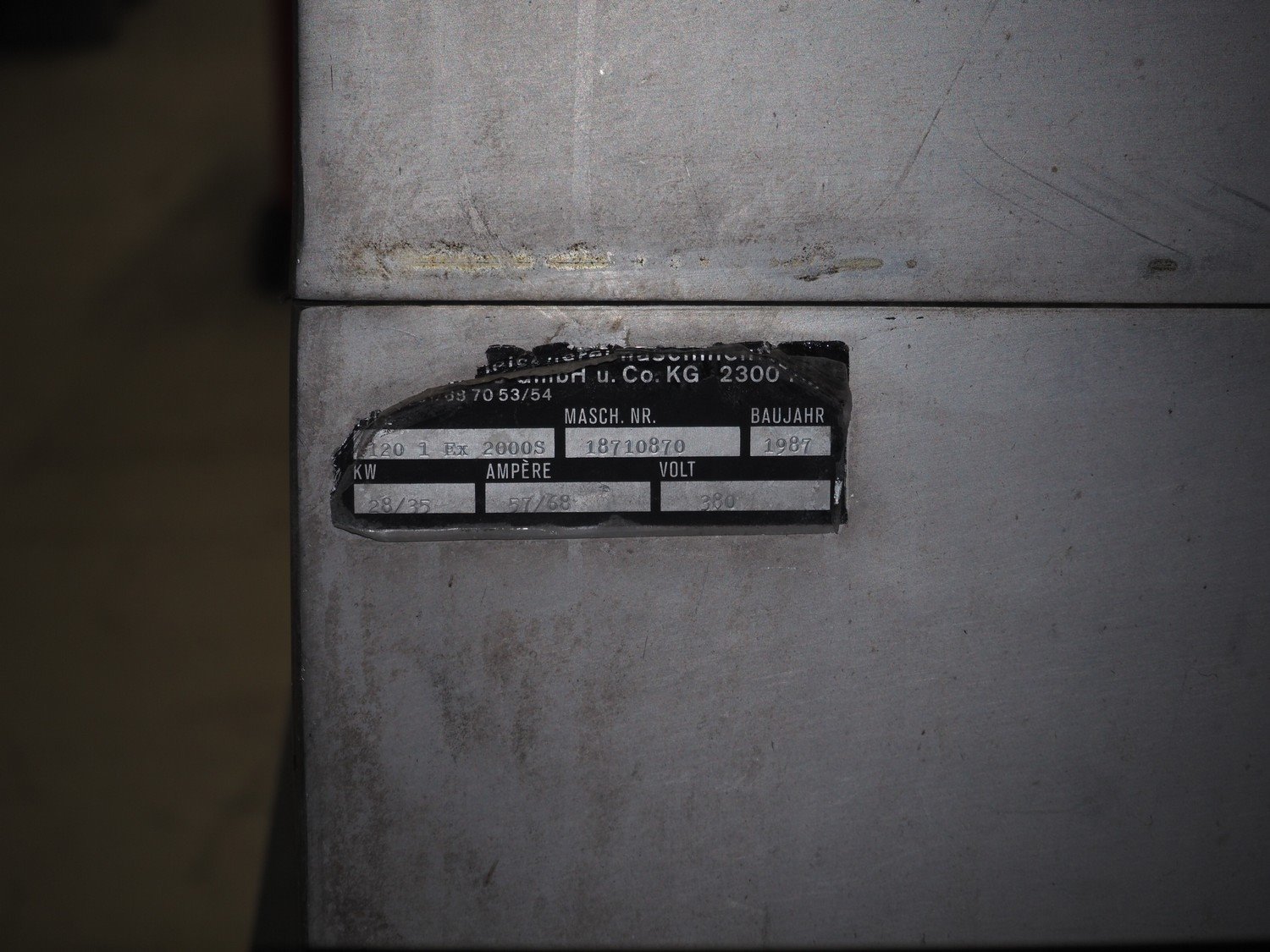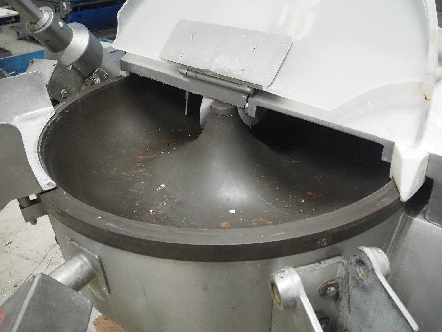 Kilia cutter with ejector and switch cabinet, model: 120 1 EX 2000S, machine number: 18710870, year of construction: 1987, 380 V, 57/68 A, 28/25 kW, steel bowl, volume: 120 liter, dimensions: 2050 mm x 1750 mm x 1950 mm, dimensions switch cabinet: 660 mm x 200 mm x 760 mm.