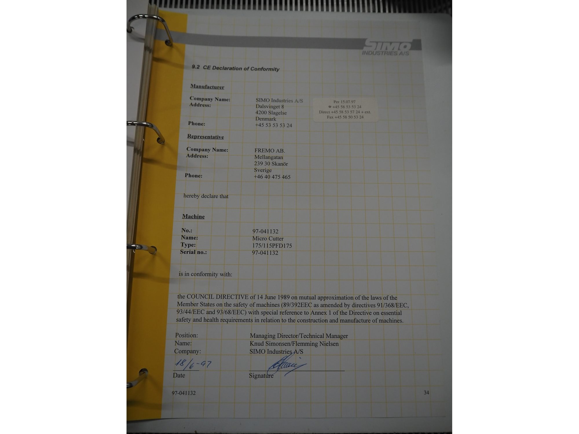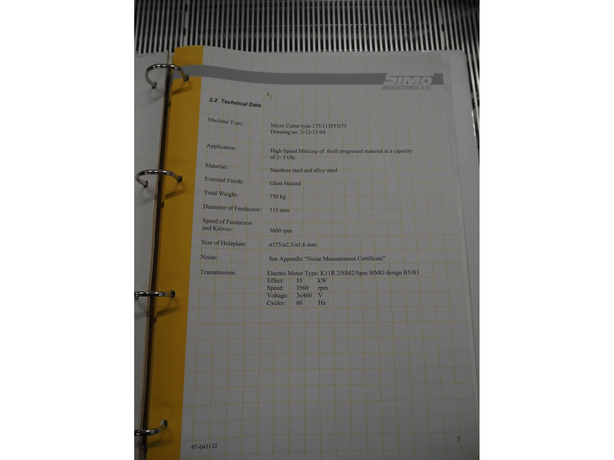 Simo microcutter, type: 175/115PFD175, serial number: 97-041132, year of construction: 1997, diameter plate: 210 mm, total dimensions: 1400 mm x 700 mm x 1450 mm.