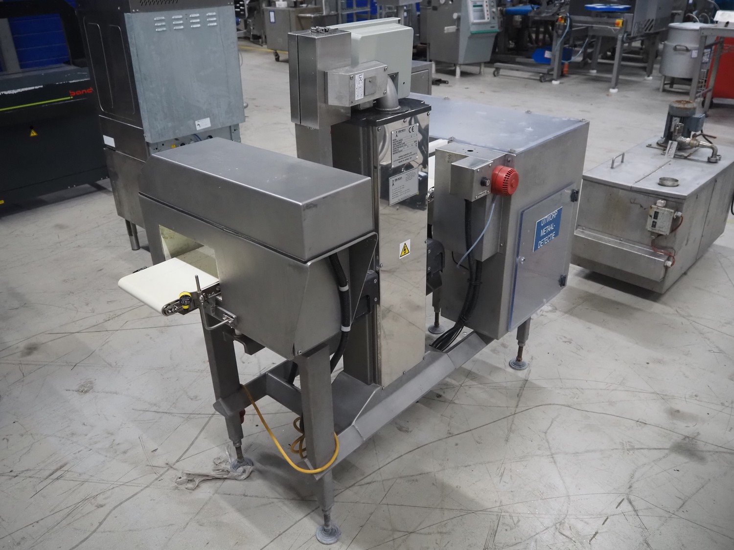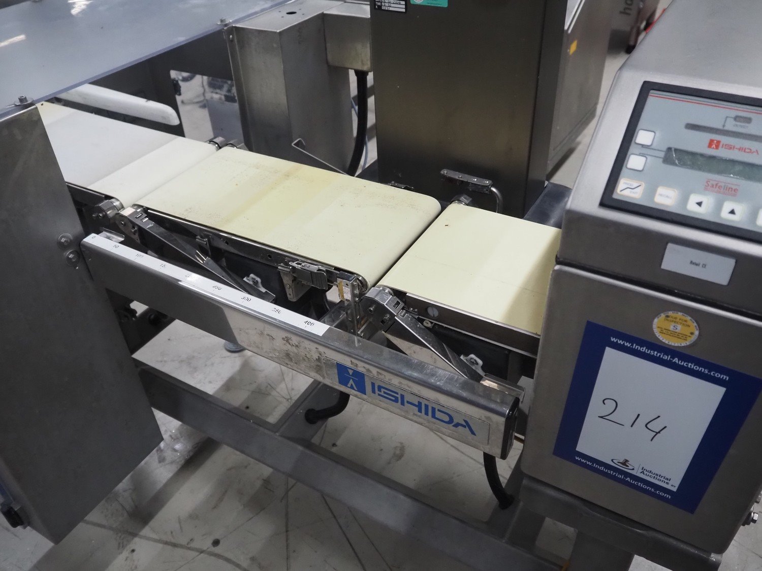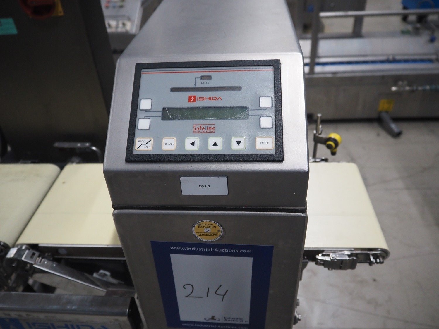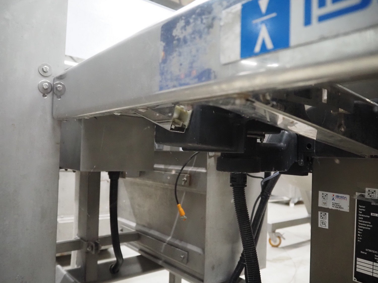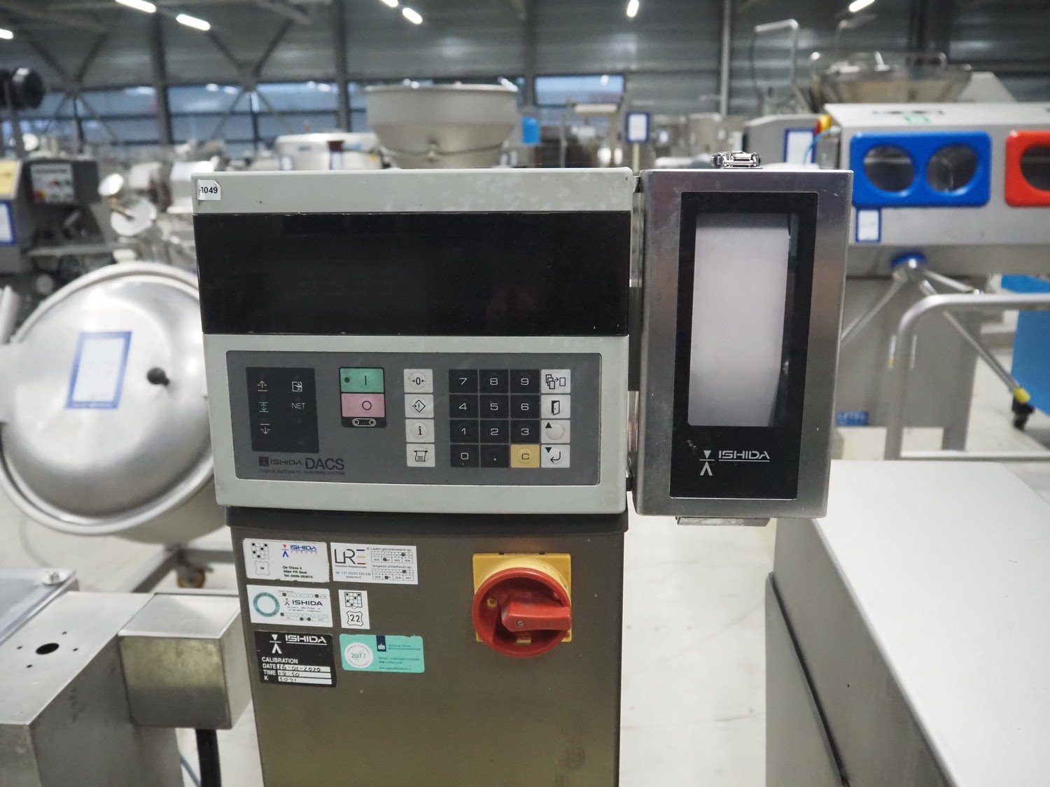 Ishida metal detector and checkweigher with rejecters, model: DACS-W-012-SB-WP-I, serial number: 551513, year of construction: 2001, 240 V, 1 Ph, 50 Hz, 2 A, clearance: 270 mm x 100 mm, plastic belt, belt width: (3x) 220 mm, total dimensions: 1670 mm x 1000 mm x 1470 mm.