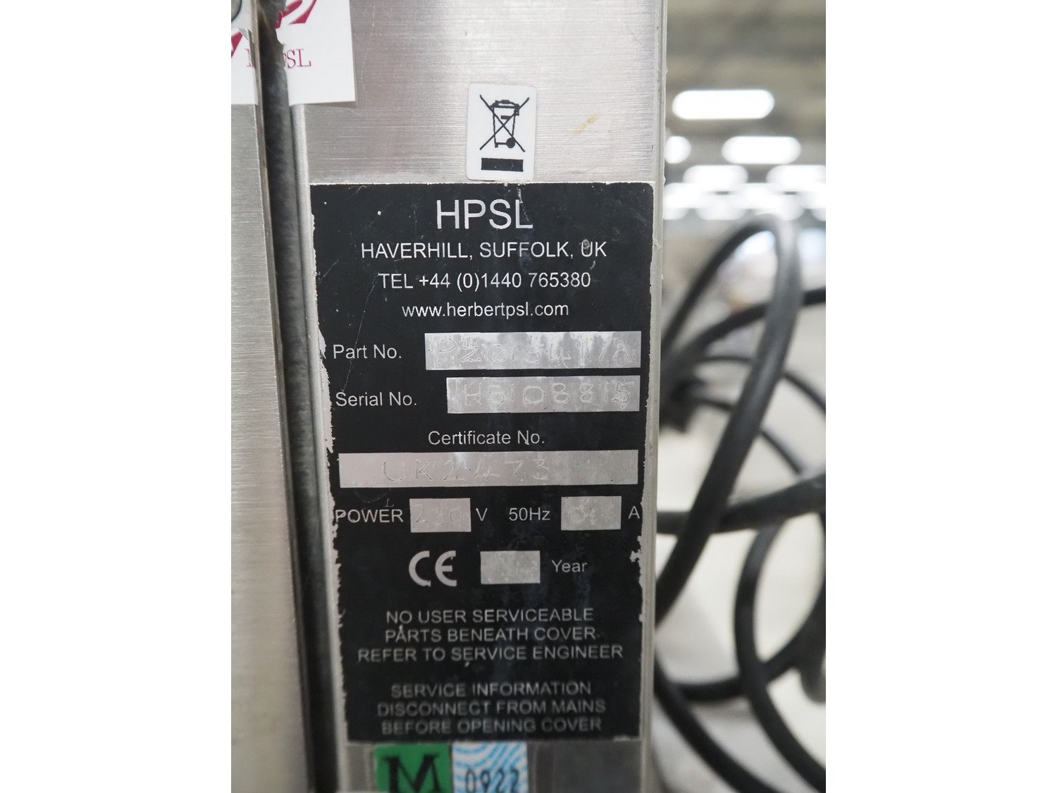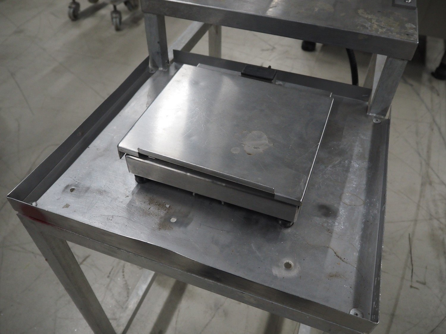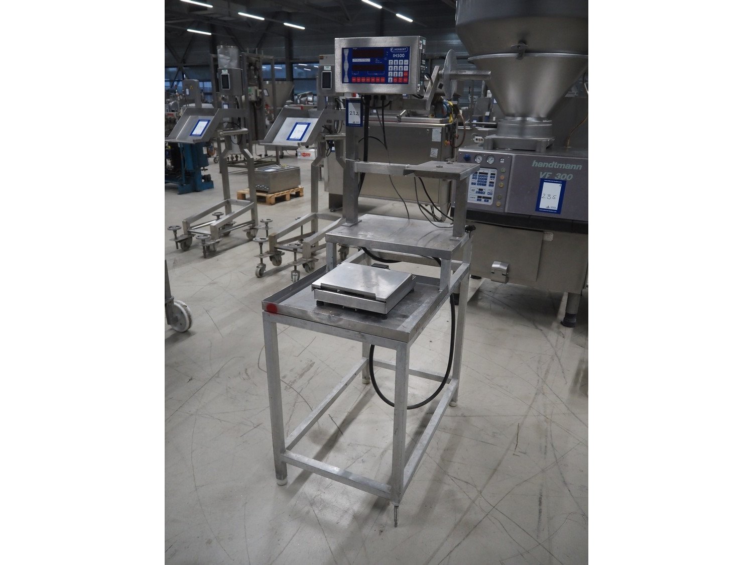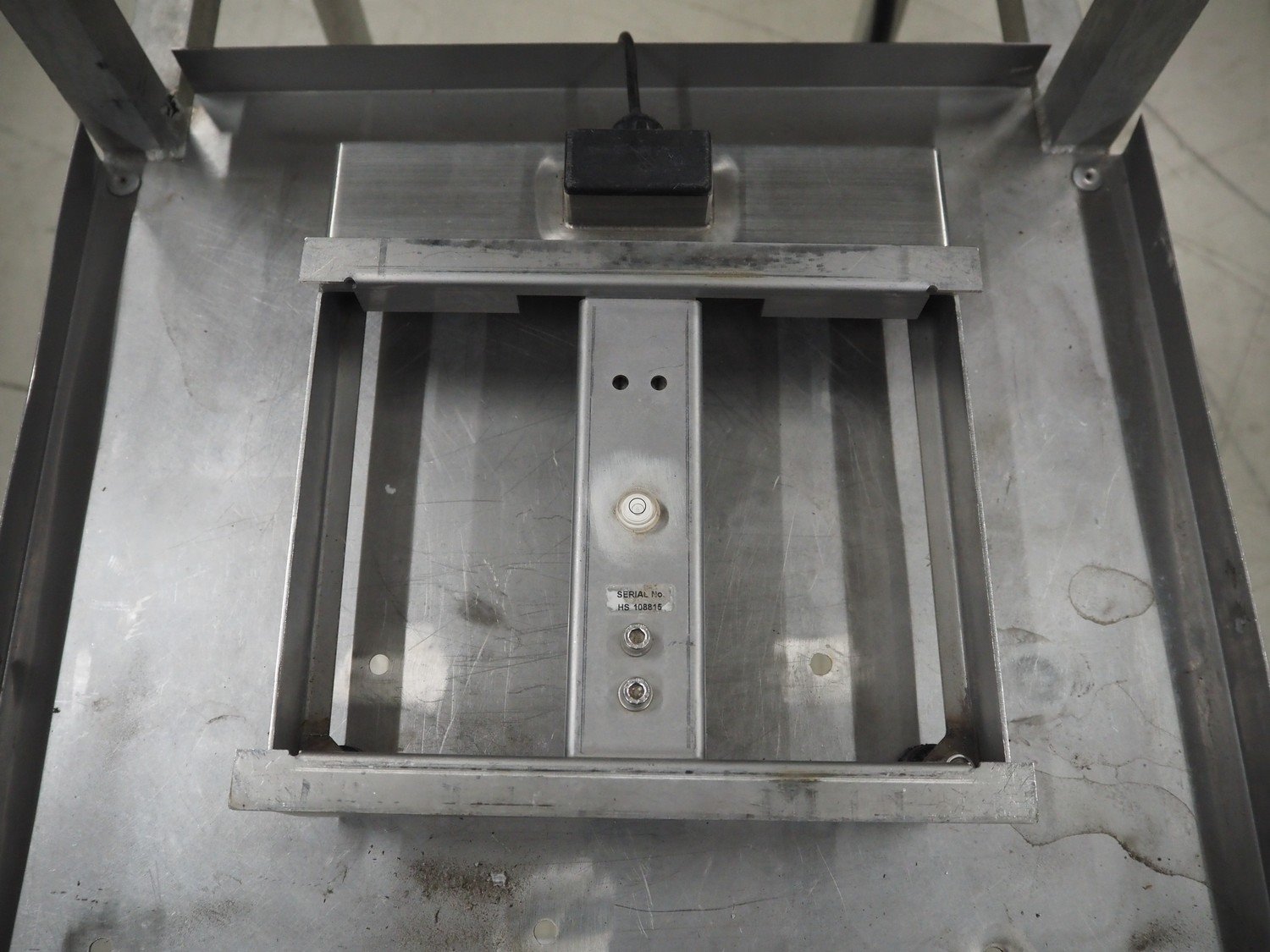 HPSL weighing scale on s/s frame, serial number: H5108515, year of construction: 2011, 230 V, 50 Hz, scale dimensions: 275 mm x 225 mm, total dimensions: 820 mm x 520 mm x 1610 mm.
