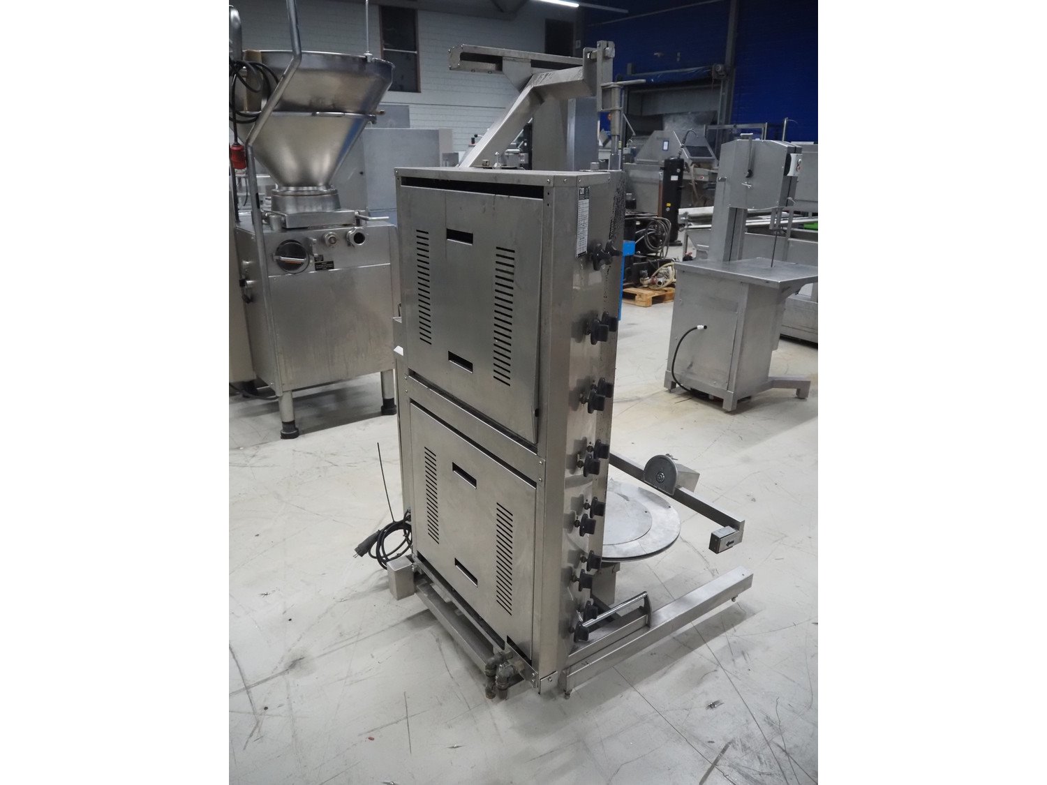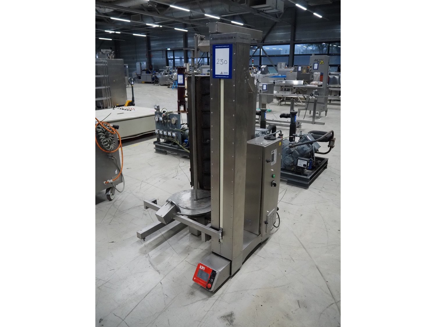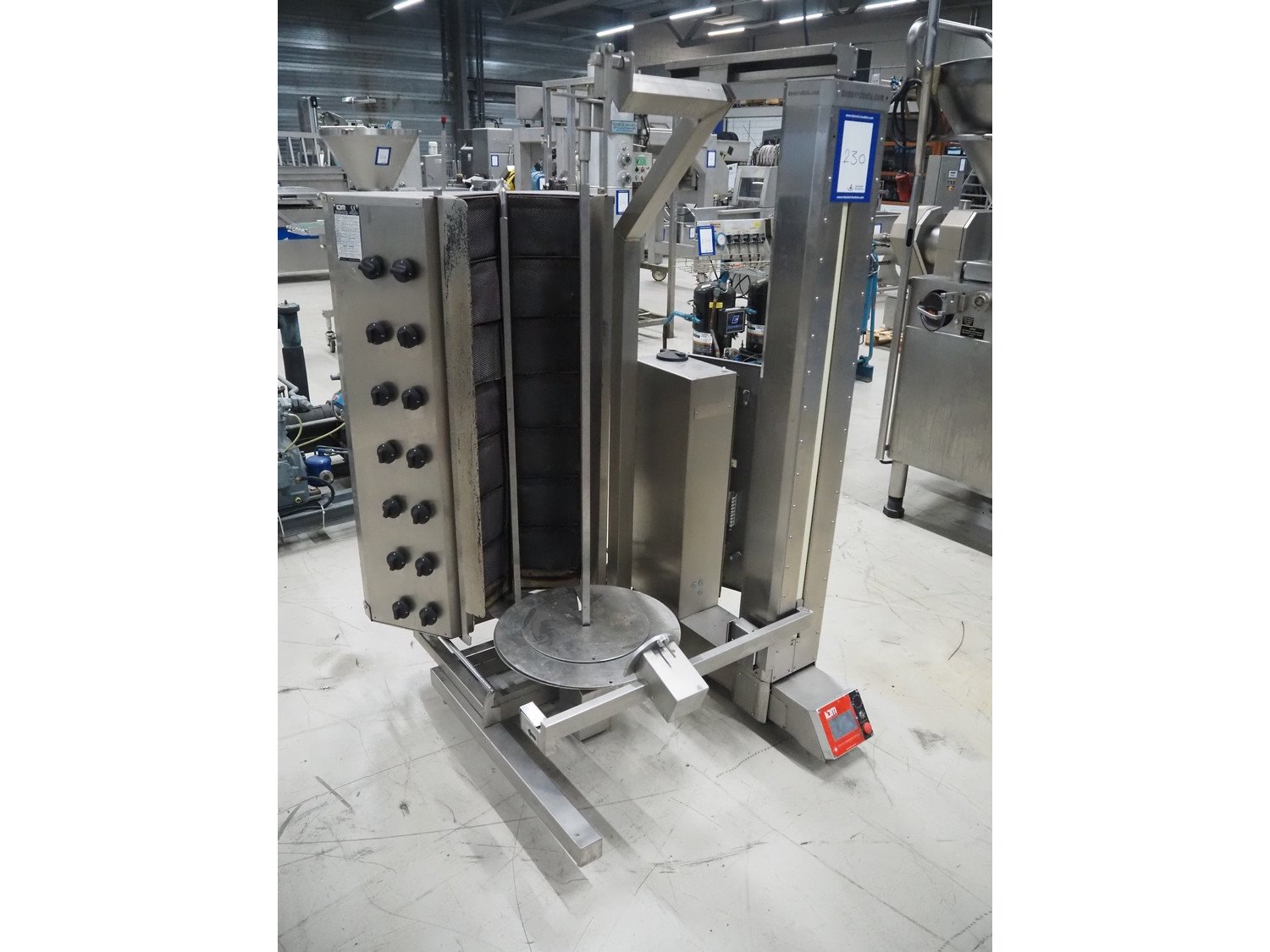 IDM kebab grill, model: IDM 2R07, serial number: 536, year of construction: 12/08/16, 220 V, 50/60 Hz, 2 A, 450 W, clearance: Ø 500 mm x 1100 mm, total dimensions: 1150 mm x 1100 mm x 1800 mm.