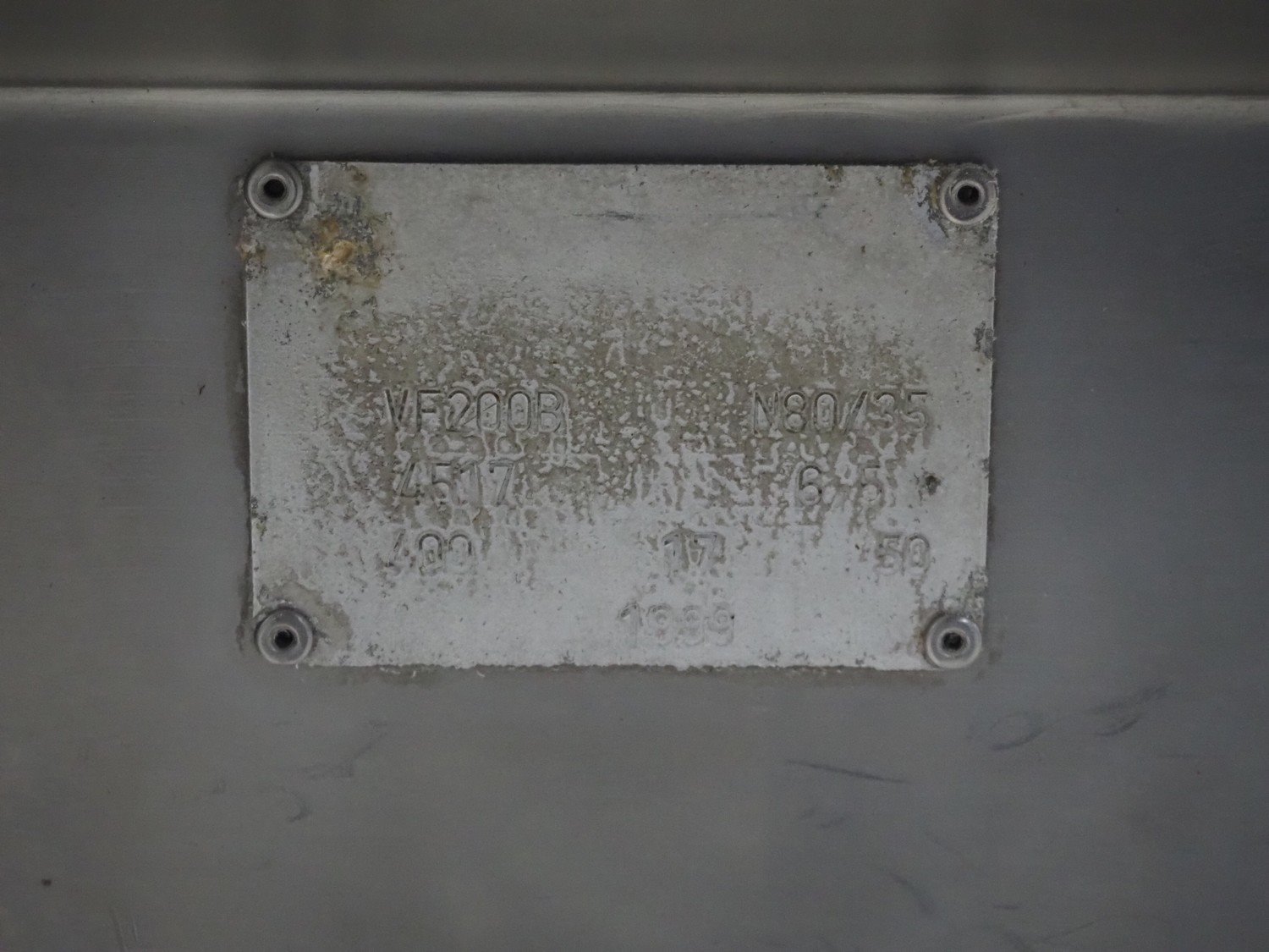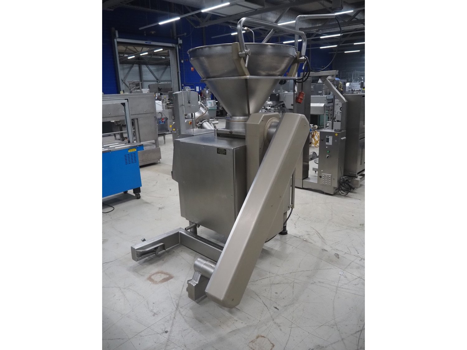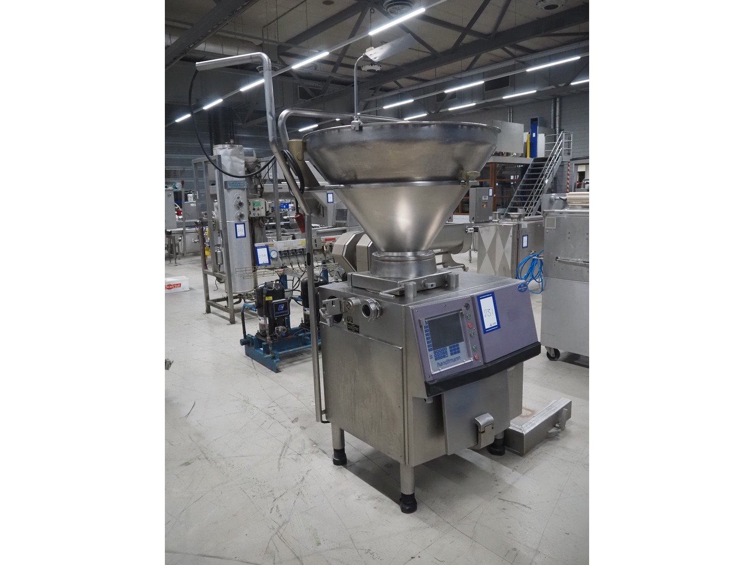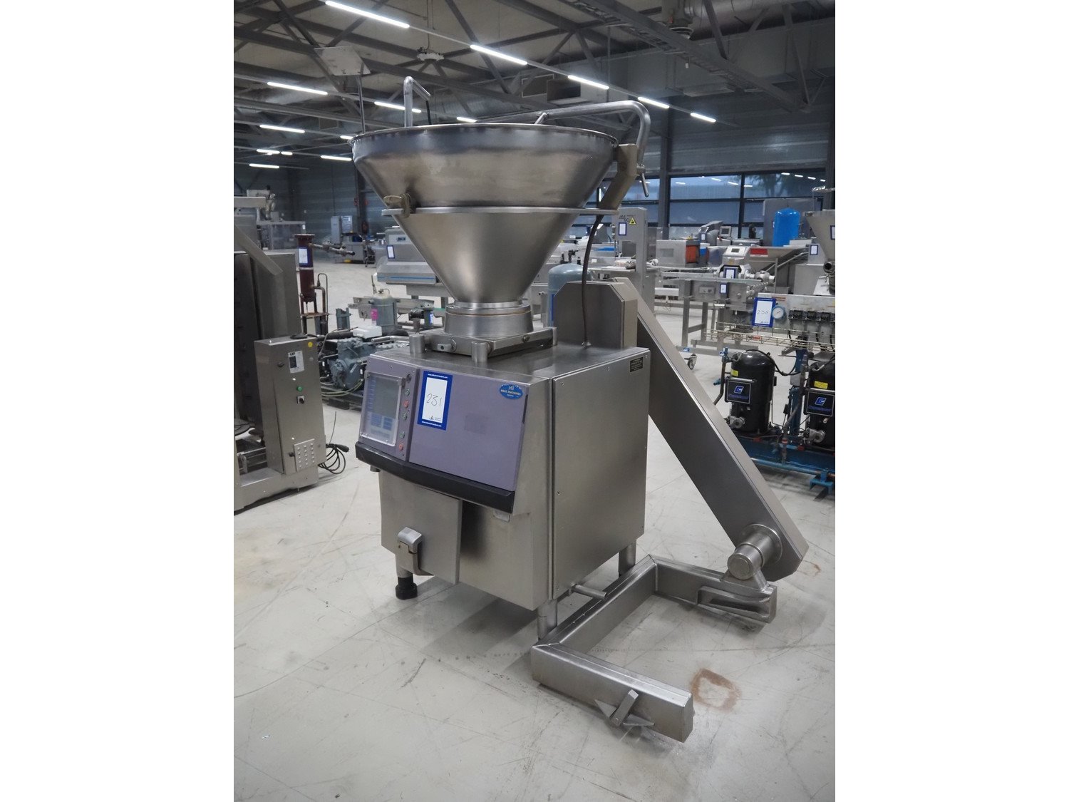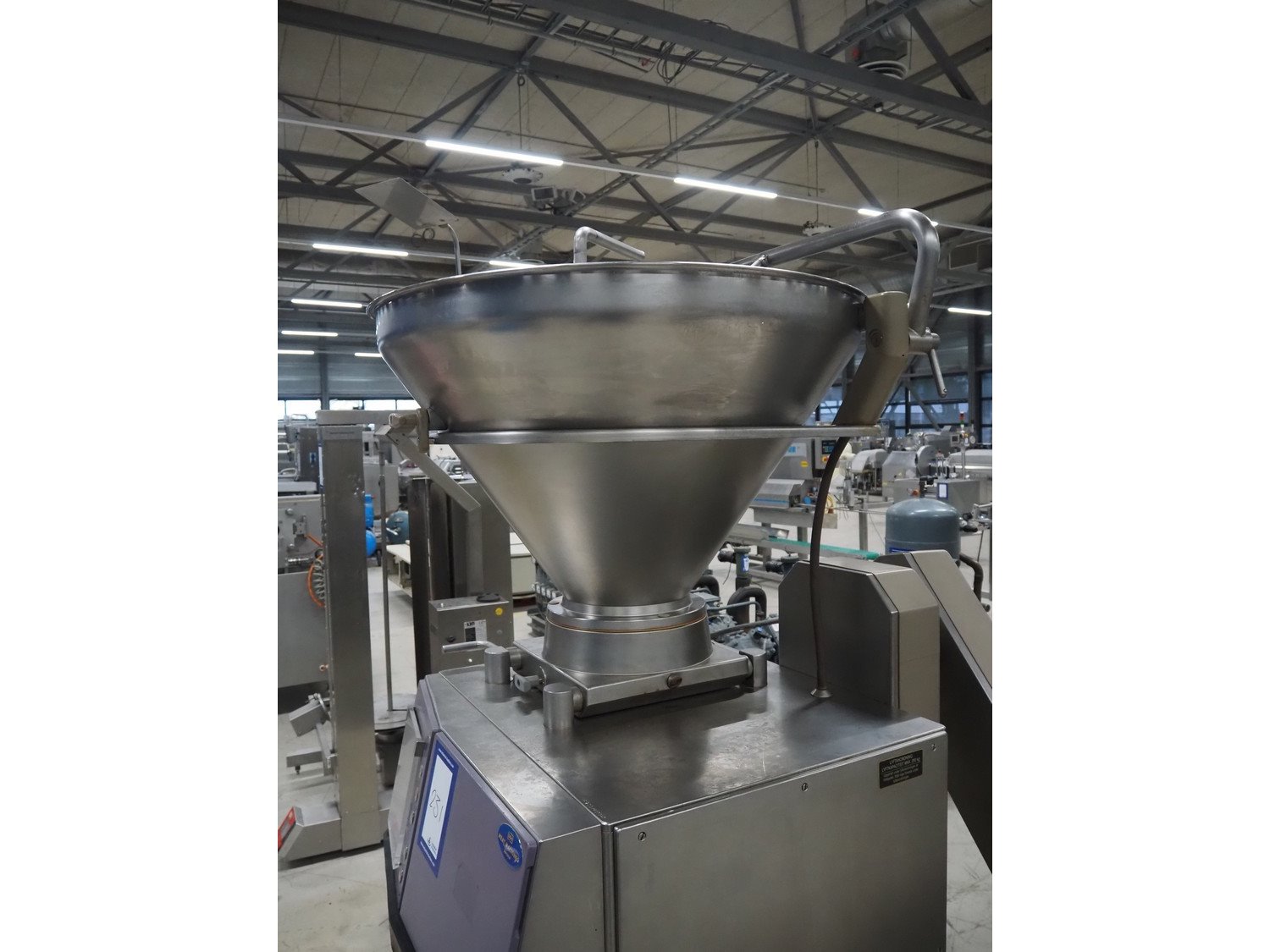 Handtmann vacuum filling machine with lifter for 200 liter meat bins, type: VF200B, number: 4517, year of construction: 1999, 400 V, 50 Hz, 17 A, 6.5 kW, Becker vacuum pump, type: U 1.16 SA-31, number: B 1563649, year of construction: 1999, dimensions: 1900 mm x 1320 mm x 2300 mm.
