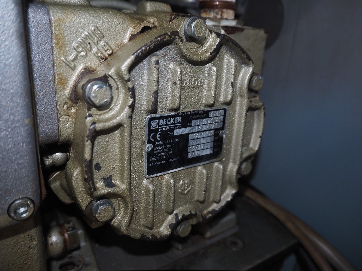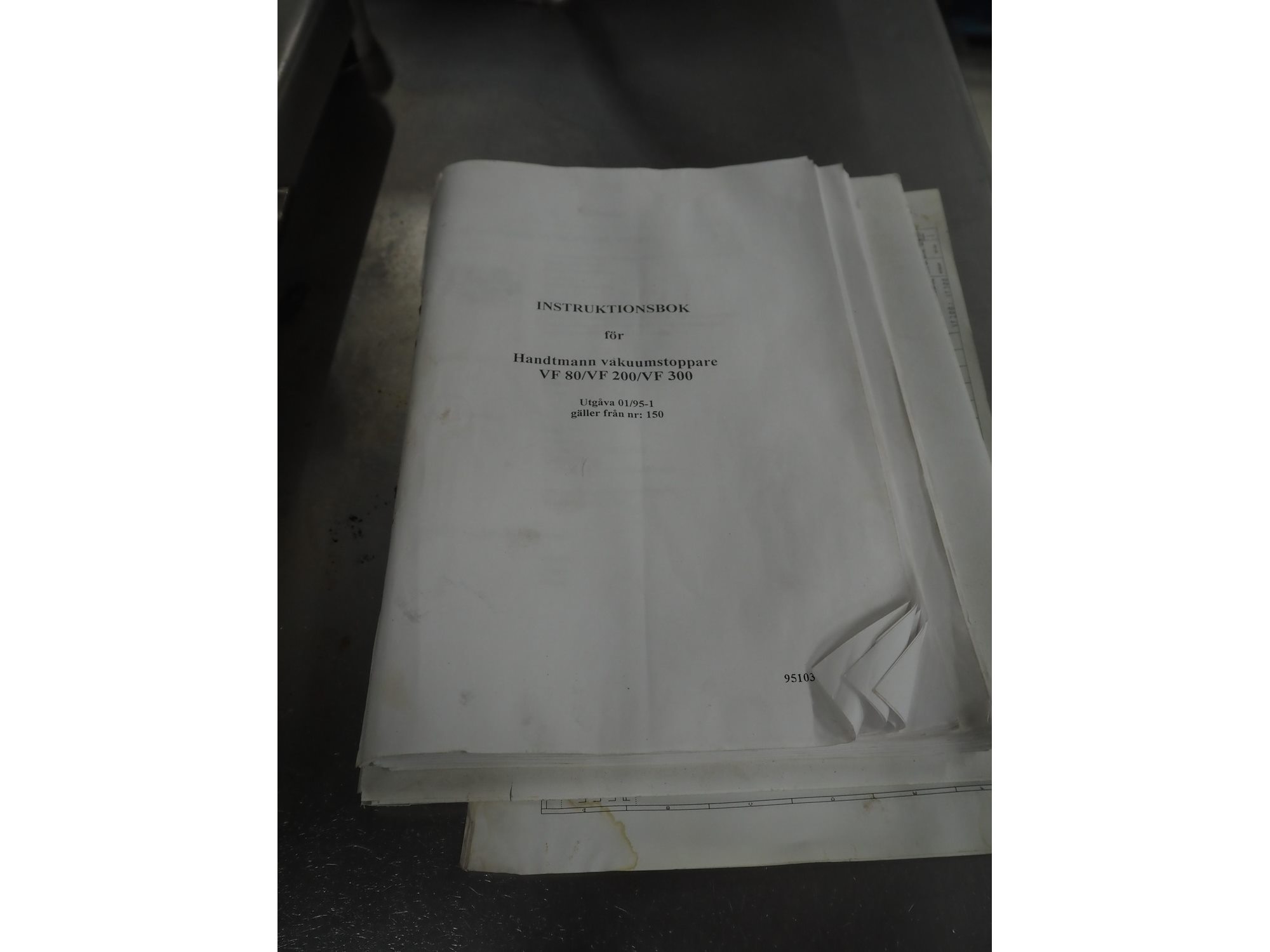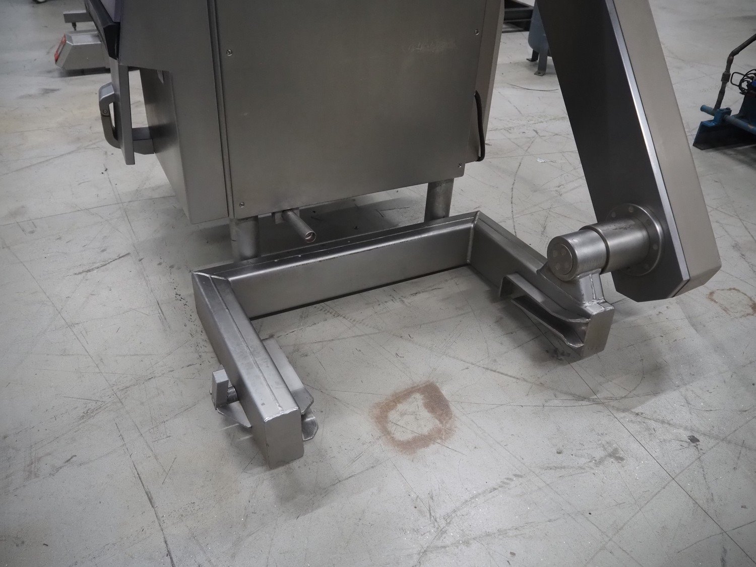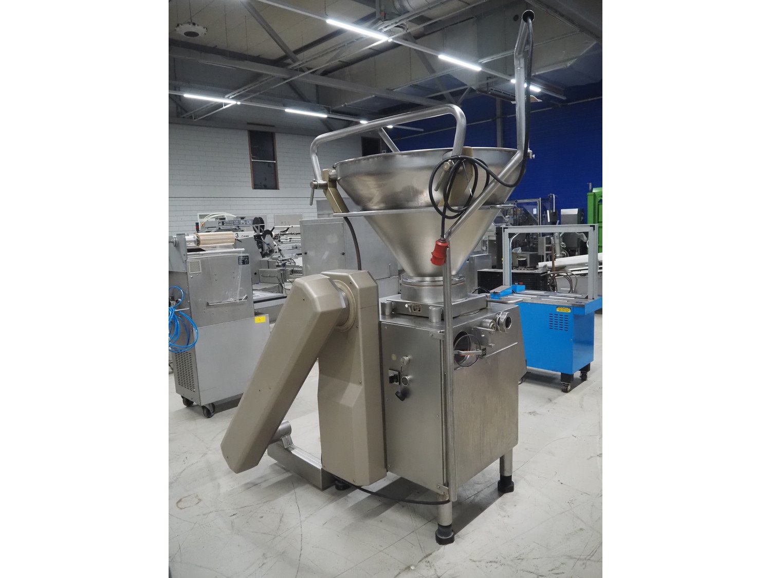 Handtmann vacuum filling machine with lifter for 200 liter meat bins, type: VF200B, number: 4517, year of construction: 1999, 400 V, 50 Hz, 17 A, 6.5 kW, Becker vacuum pump, type: U 1.16 SA-31, number: B 1563649, year of construction: 1999, dimensions: 1900 mm x 1320 mm x 2300 mm.