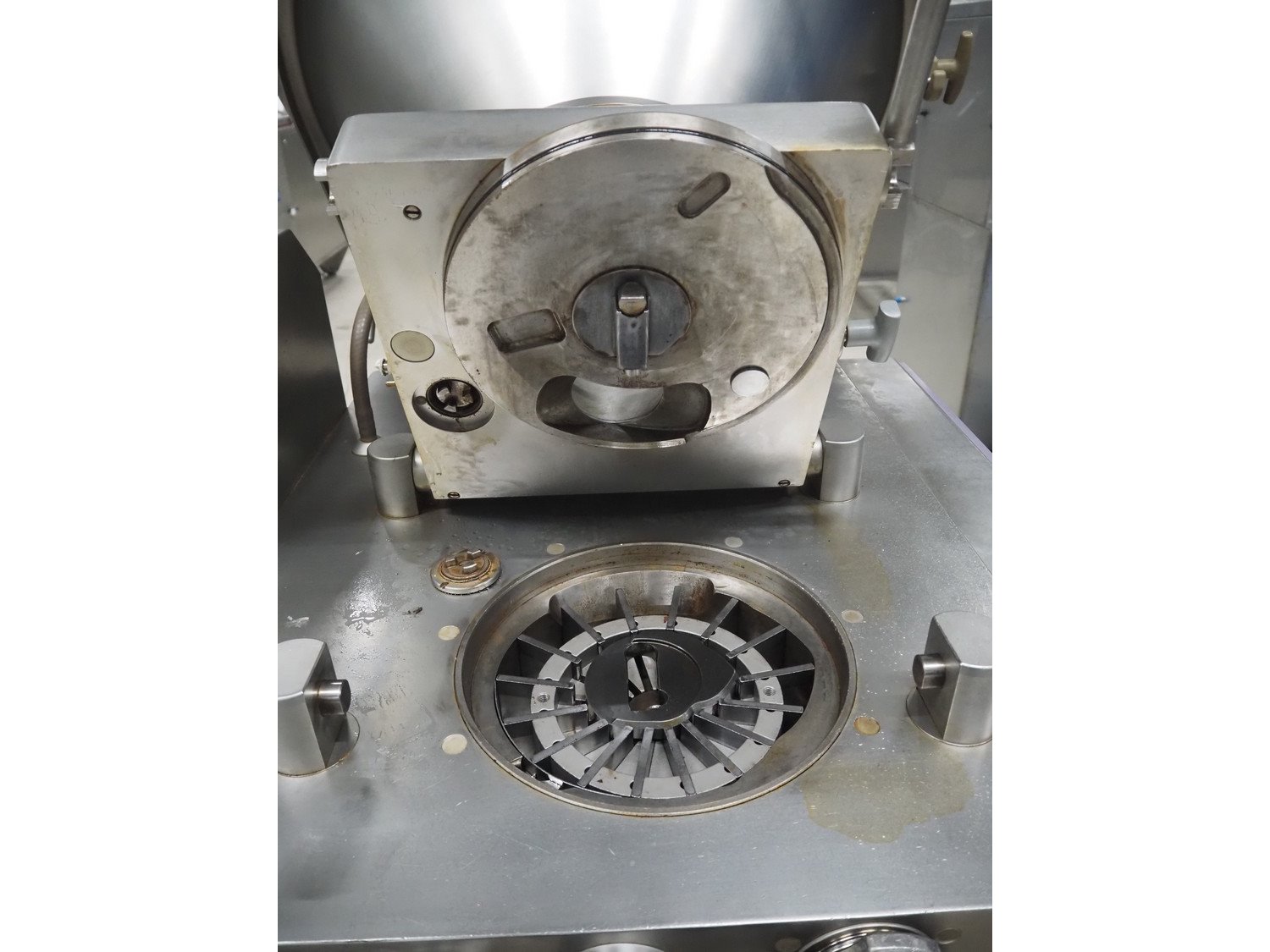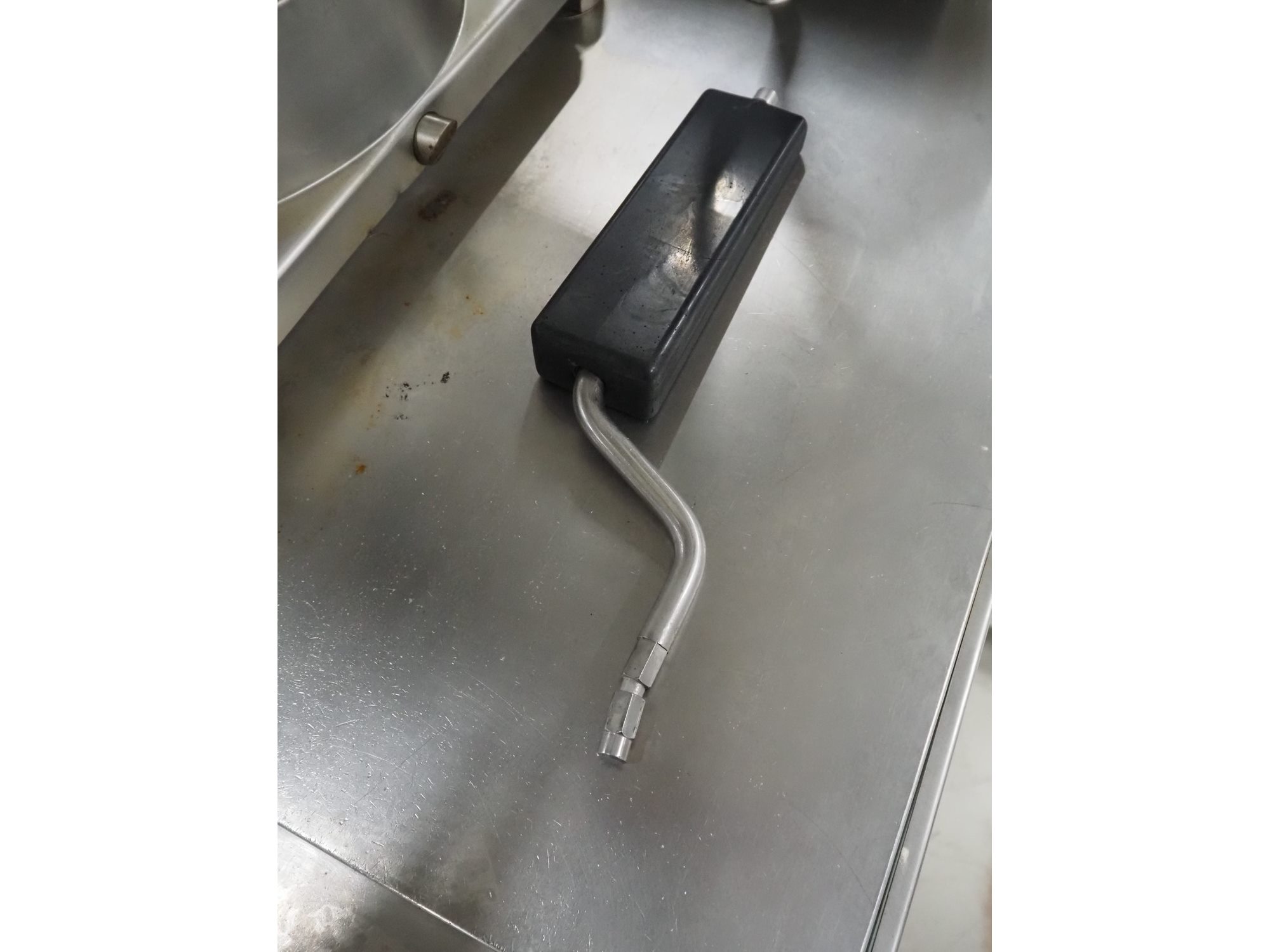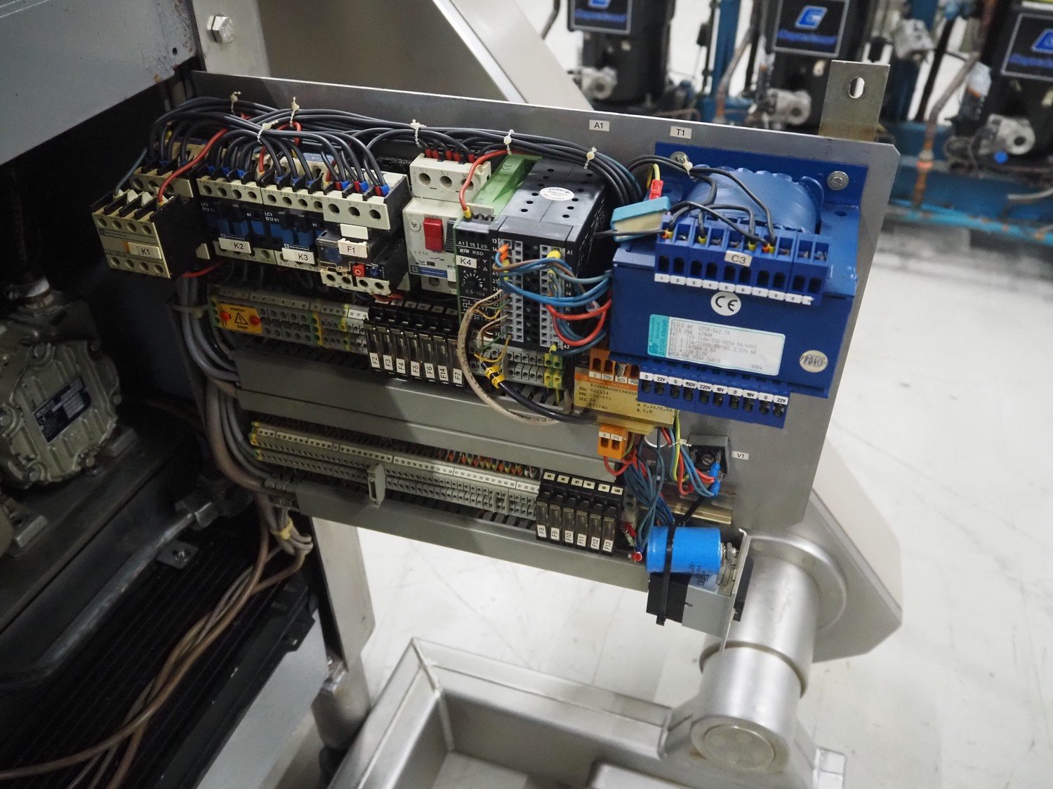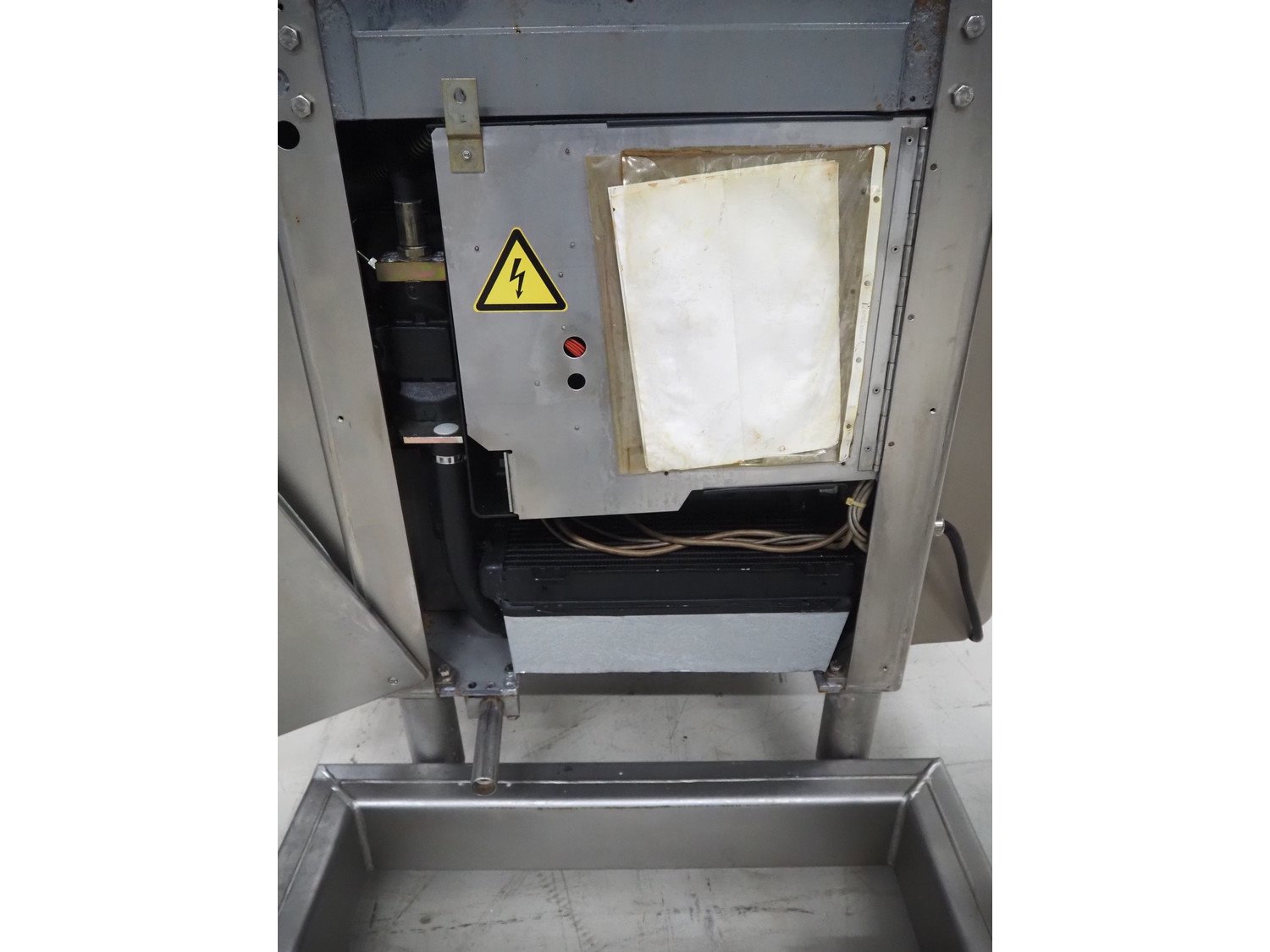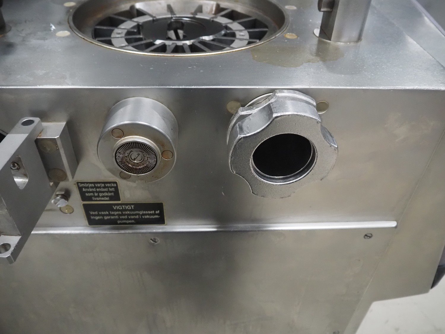 Handtmann vacuum filling machine with lifter for 200 liter meat bins, type: VF200B, number: 4517, year of construction: 1999, 400 V, 50 Hz, 17 A, 6.5 kW, Becker vacuum pump, type: U 1.16 SA-31, number: B 1563649, year of construction: 1999, dimensions: 1900 mm x 1320 mm x 2300 mm.