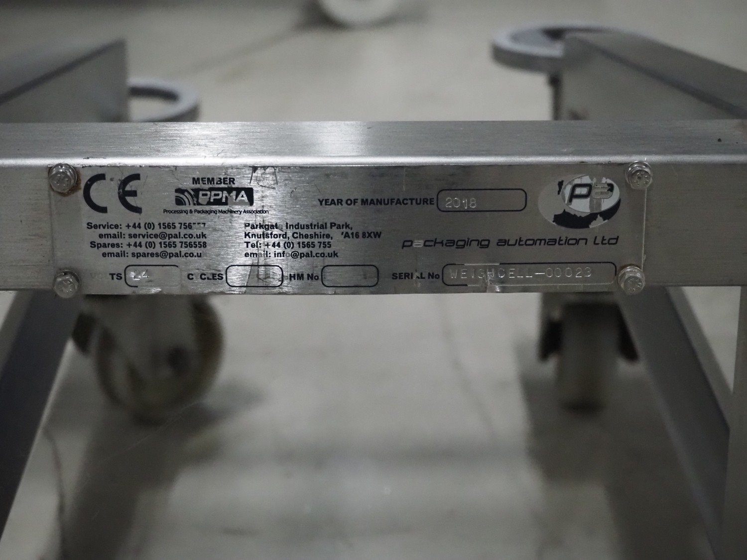Packaging Automation Ltd weigh cell unit, serial number: WEIGHCELL-00023, year of construction: 2018, 24 V, dimensions: 900 mm x 800 mm x 1660 mm.