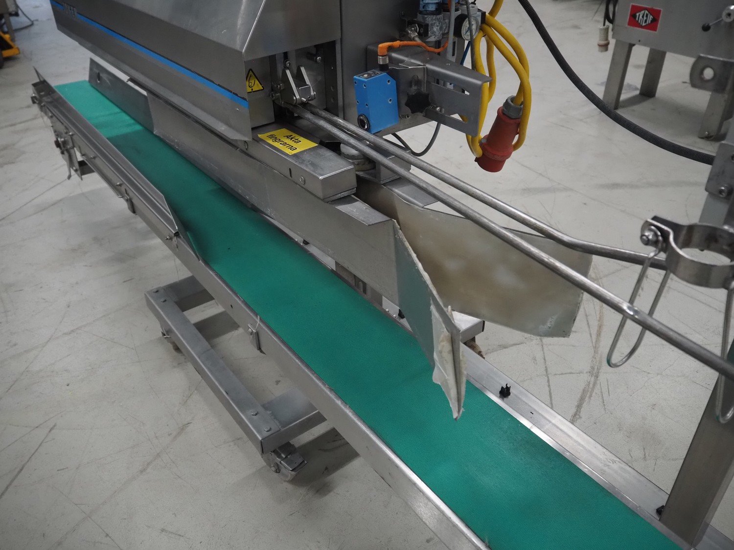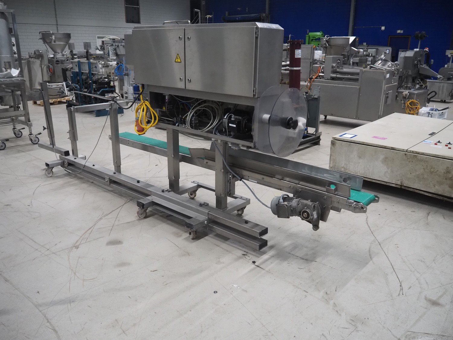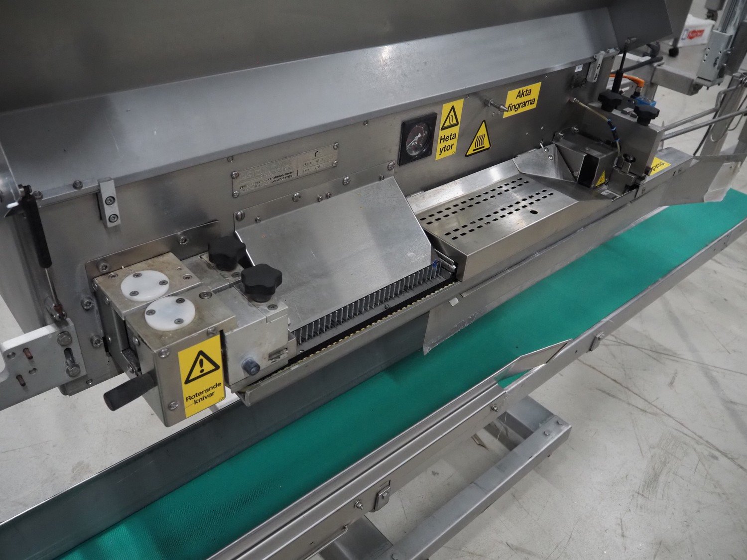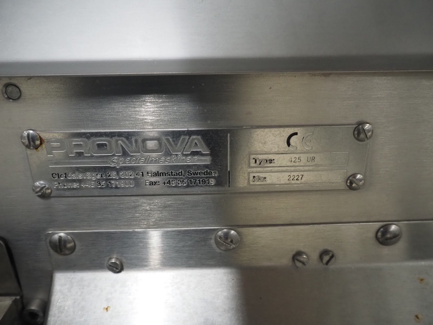 Pronova Specialmaskiner mobile continuous bag sealer, type: 425 UR, number: 2227, plastic belt, belt width: 190 mm, seal length: 1170 mm, total dimensions: 4540 mm x 800 mm x 1620 mm.