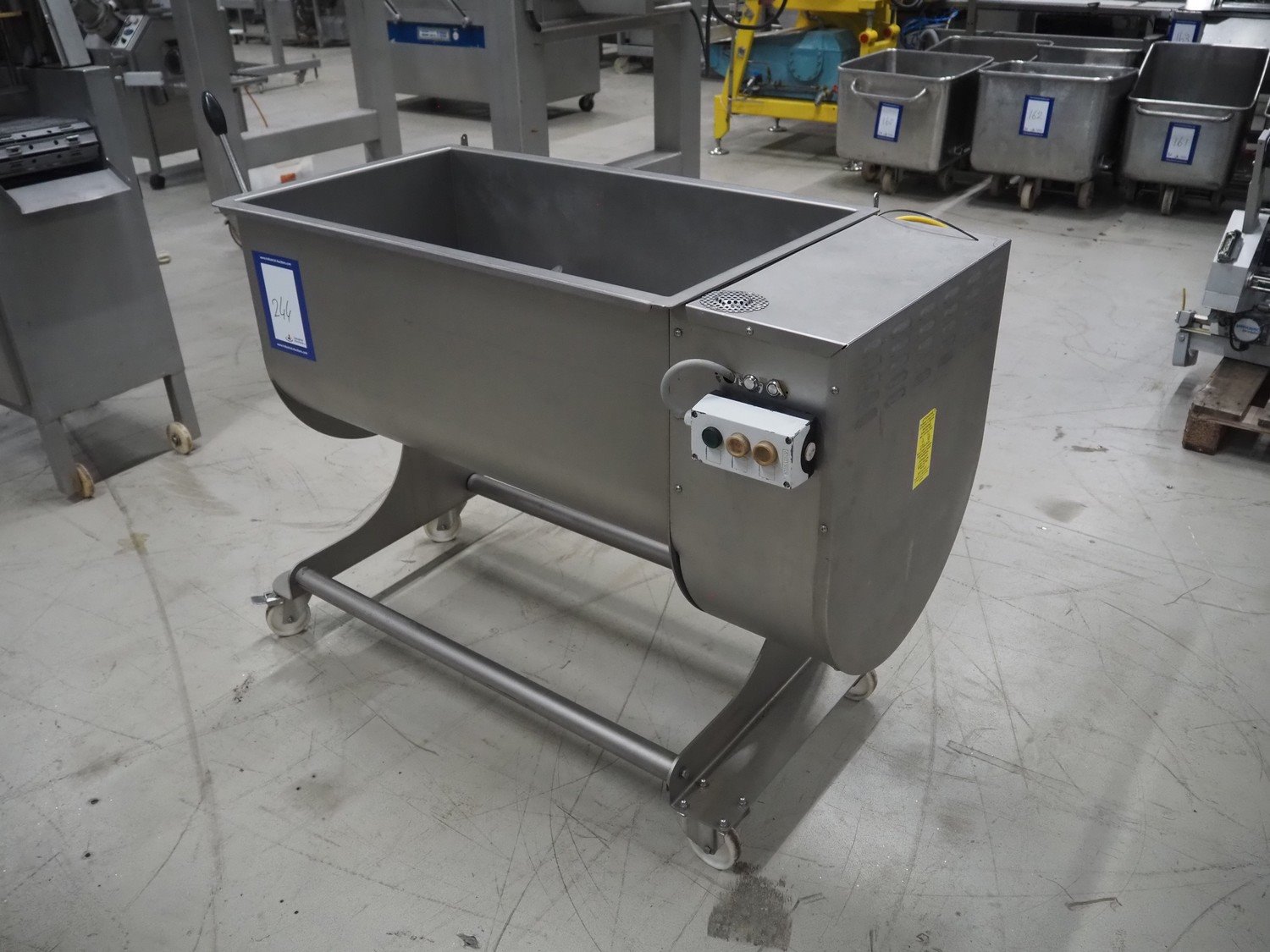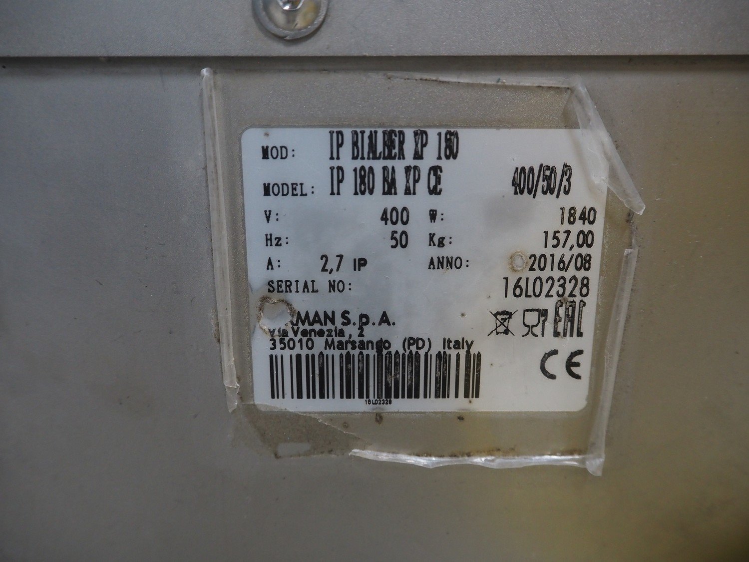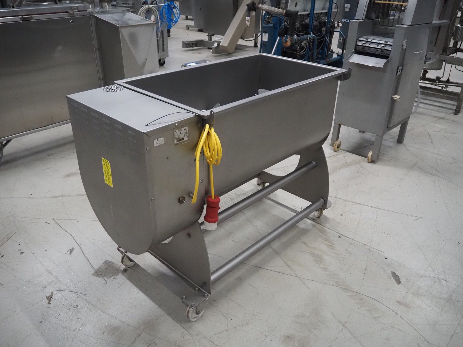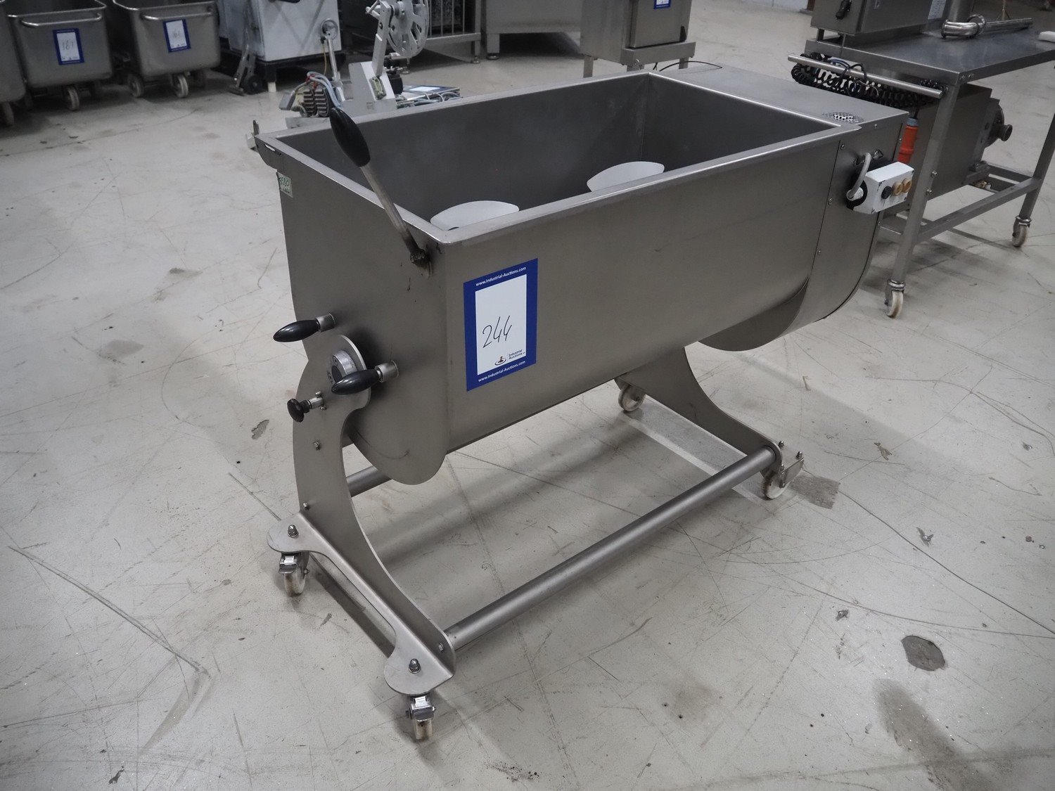 Sirman S.p.A. mobile double shaft paddle mixer, model: IP 180 BA XP CE, serial number: 16L02328, year of construction: 2016/08, 400 V, 3 Ph, 50 Hz, 2.7 A, 1840 W, weight: 157 kg, dimensions: 1300 mm x 740 mm x 1200 mm.