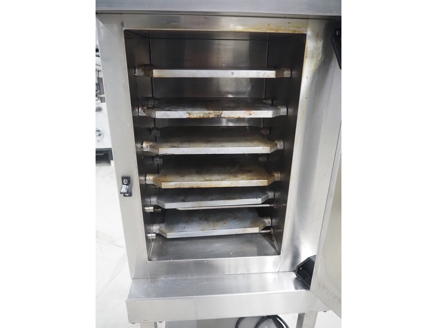 Electro Calorique regeneration cabinet, 6 floors, floor dimensions: 300 mm x 225 mm, total dimensions: 580 mm x 440 mm x 1330 mm. 1 floor is missing.