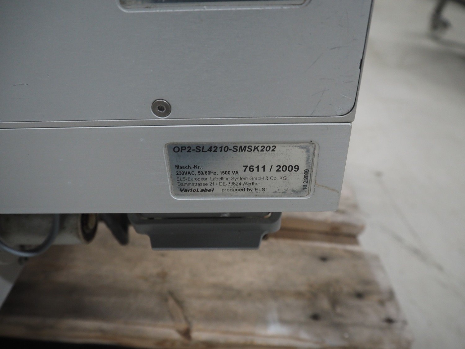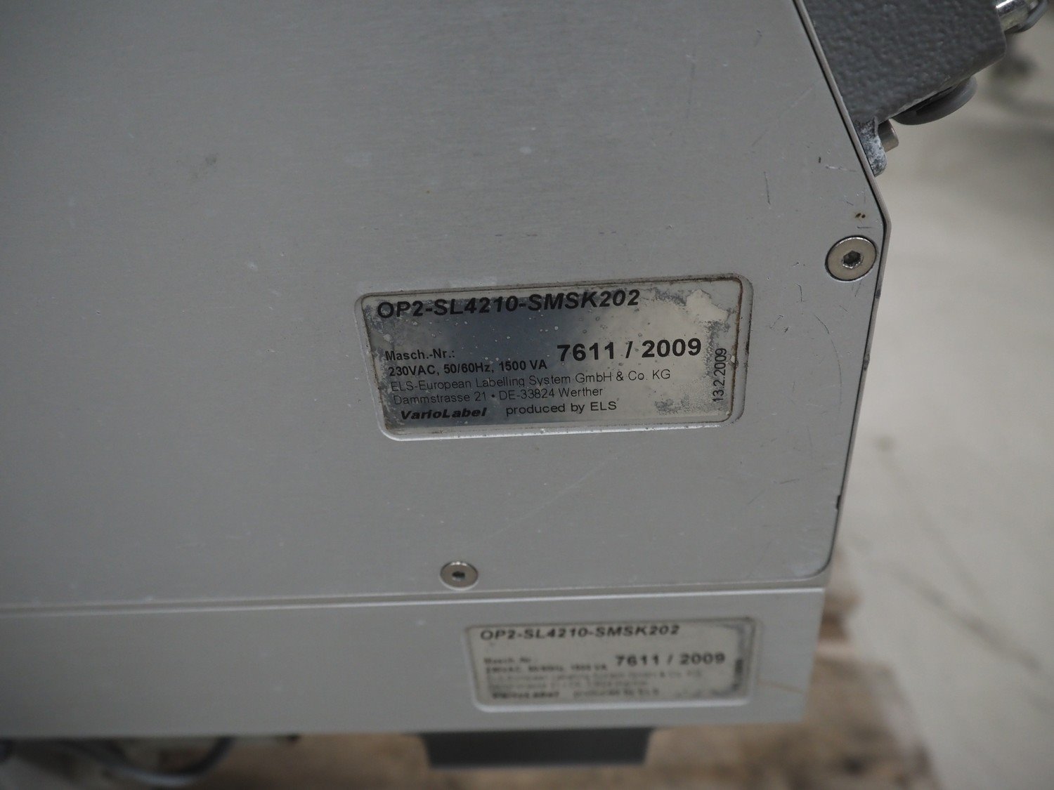 ELS labelling machine for Variovac thermoformer, OP2-SL4210-SMSK202, machine number: 7611/2009, 230 V, 50/60 Hz, dimensions: 1000 mm x 900 mm x 1400 mm.