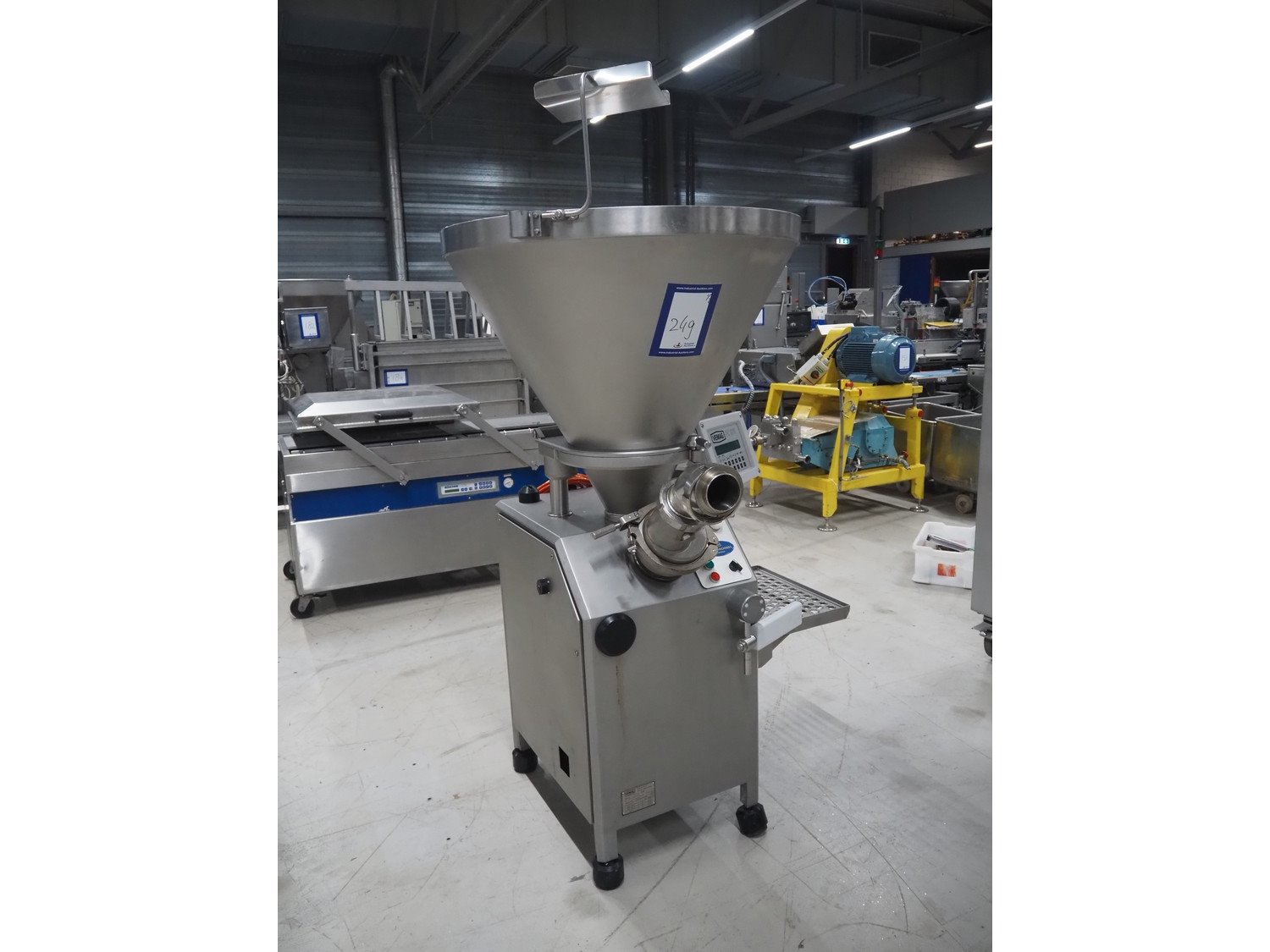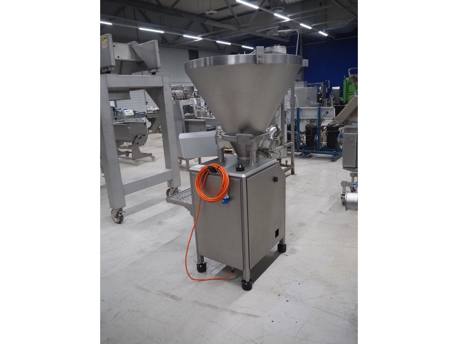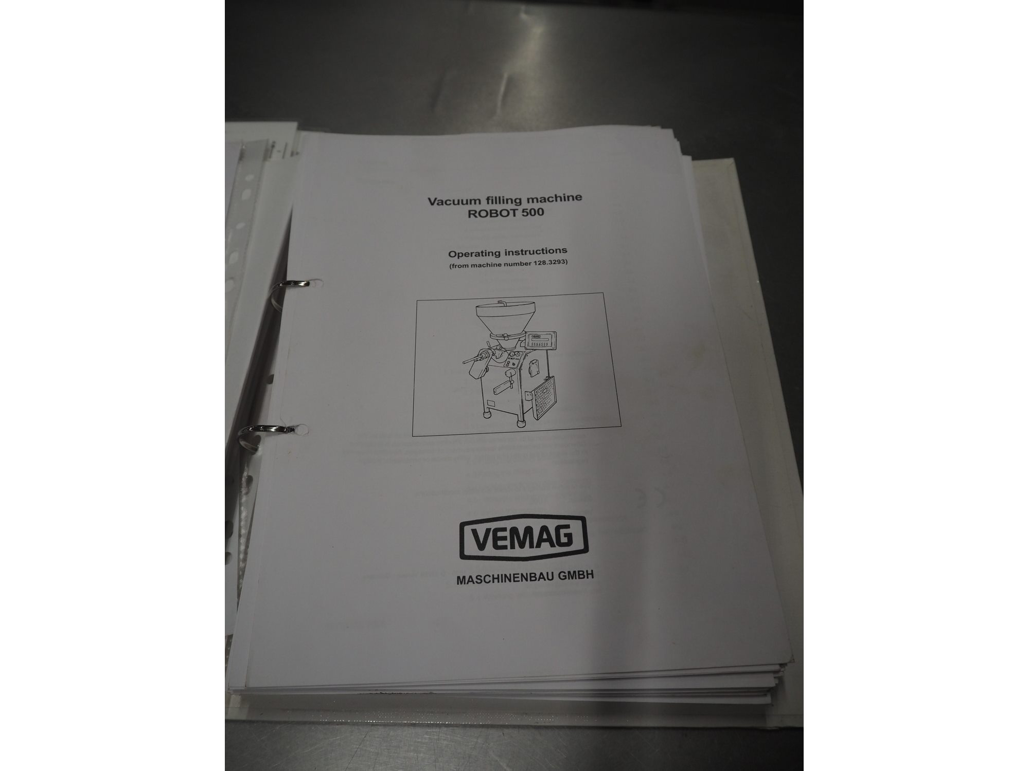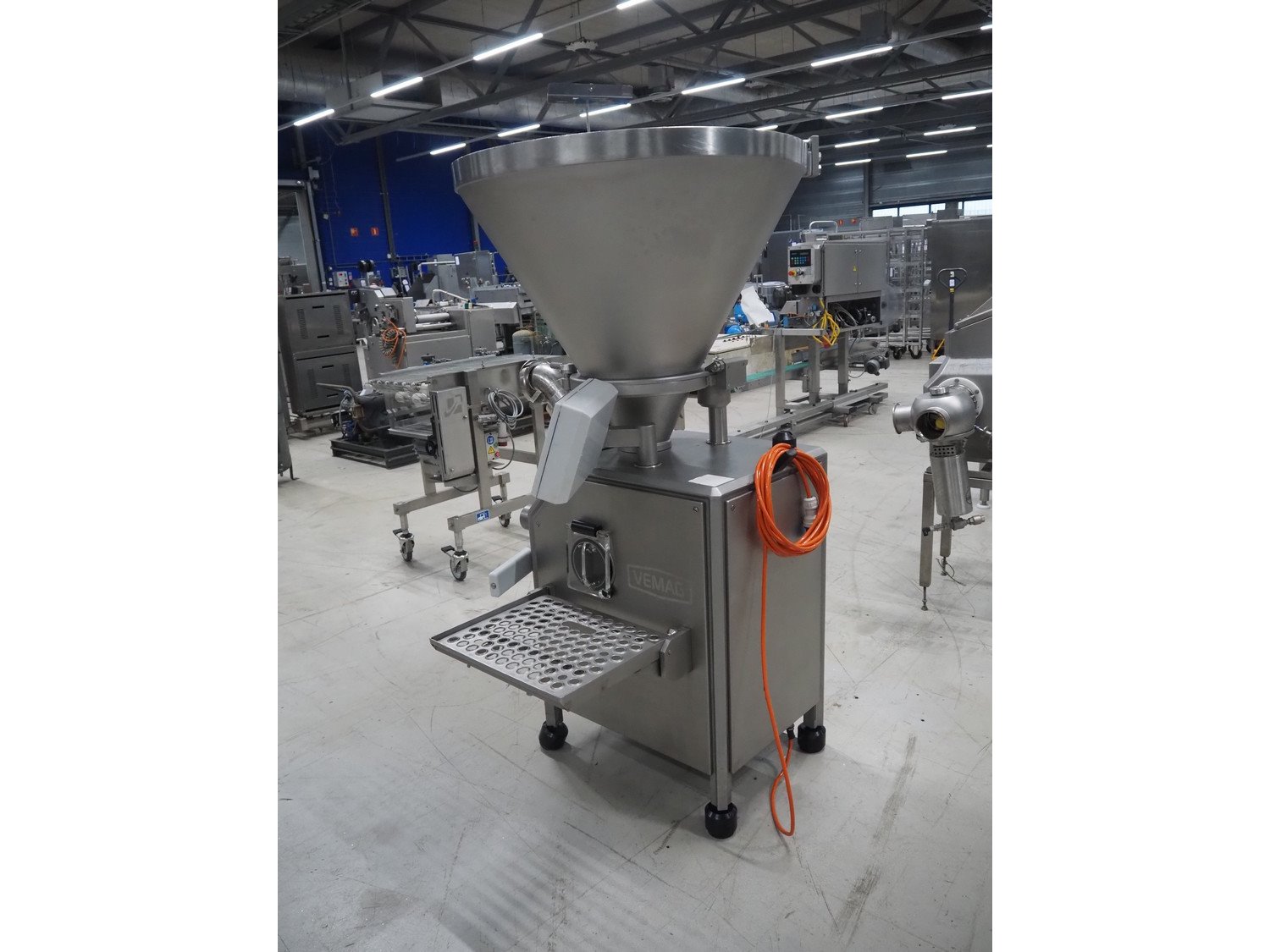 Vemag vacuum filling machine with grinding head, model: R 500, number: 128 3333, year of construction: 2005, 220-240/400-460 V, 3 Ph, 50/60 Hz, 17.8/20 A, dimensions: 1000 mm x 800 mm x 1830 mm. Including crate with parts.