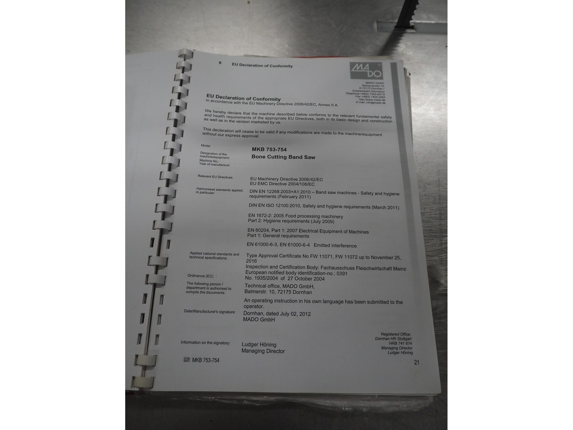 Mado bandsaw, model: Selekta 3, number: 653 32 916 0, dimensions: 900 mm x 900 mm x 2000 mm. Including extra saw blades.