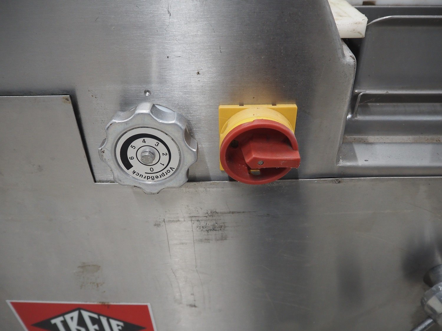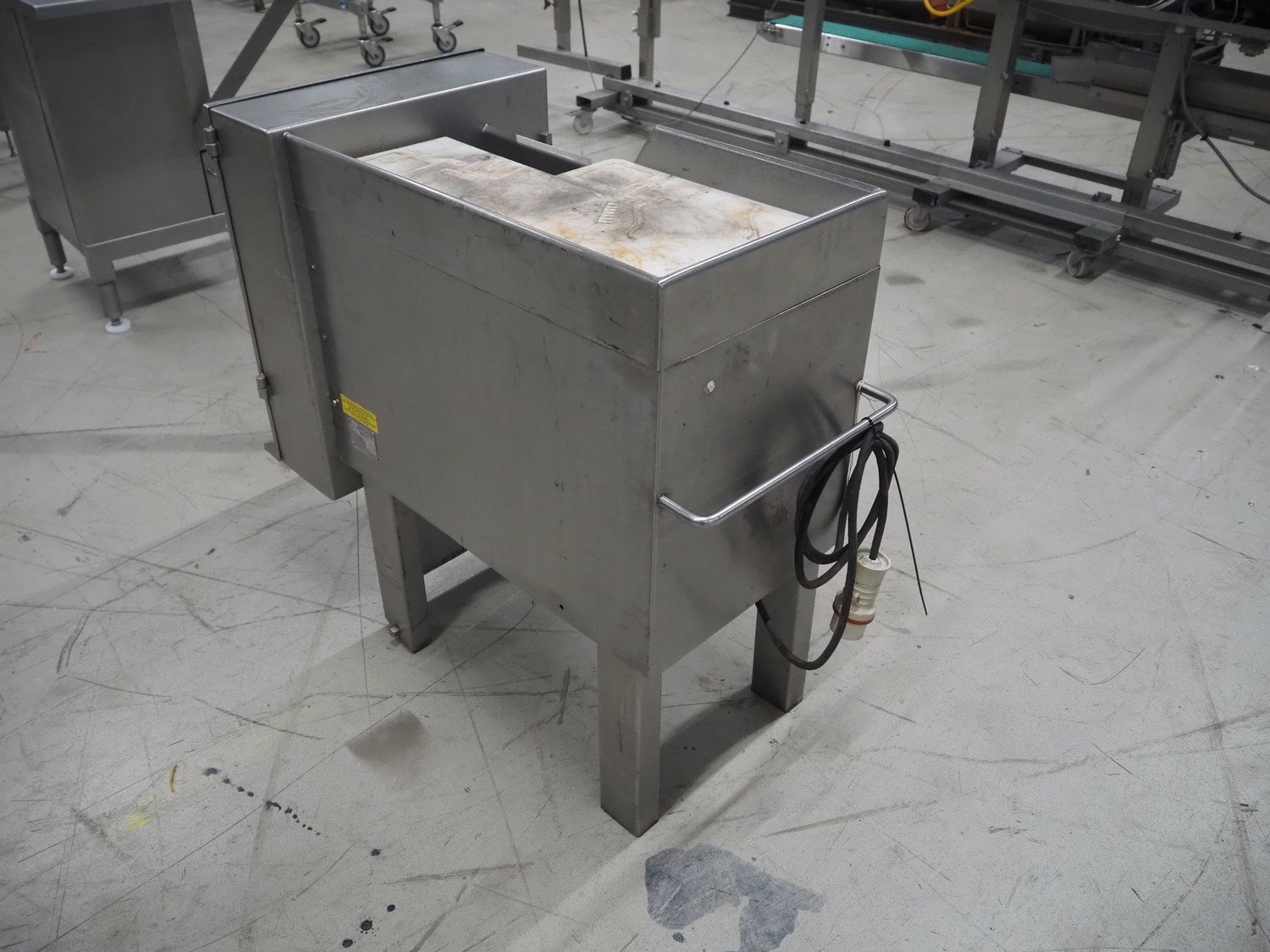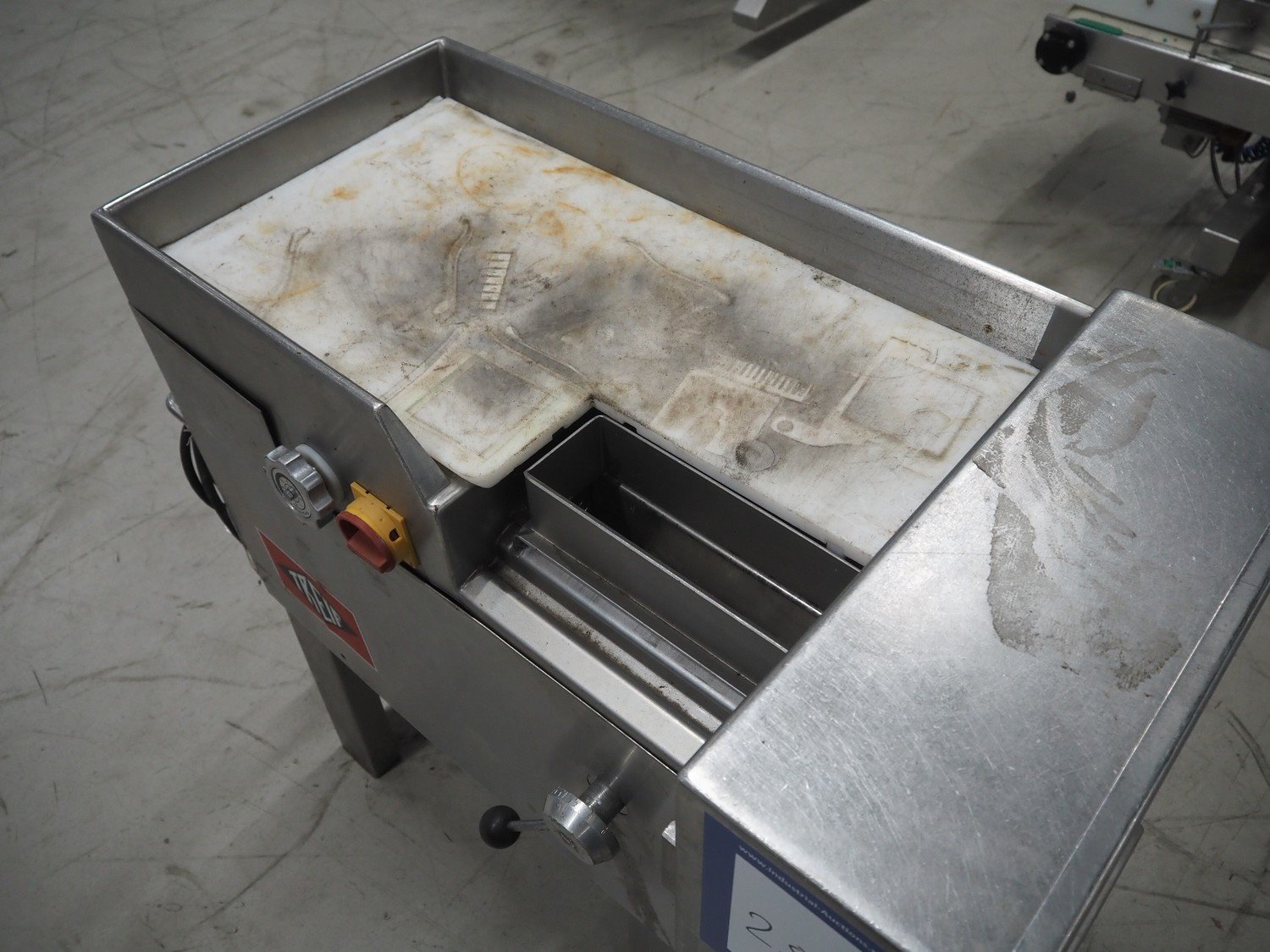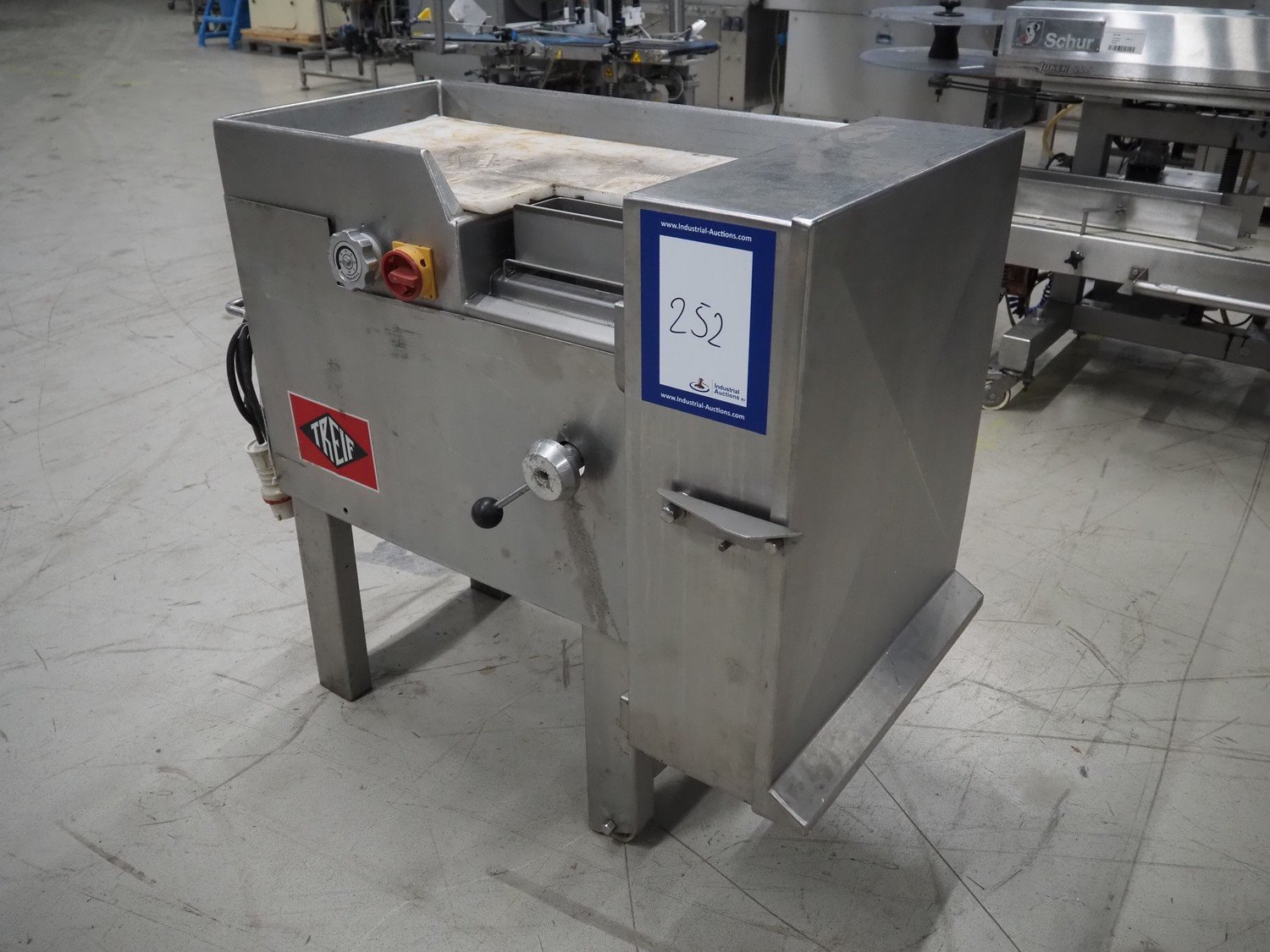 Treif mobile dicer, type: 1322, machine number: 132201.68021.0958, year of construction: 1993, 380/220 V, 3 Ph, 50 Hz, 3.5/10 A, chamber dimensions: 85 mm x 85 mm, total dimensions: 1070 mm x 620 mm x 1000 mm. Without grid sets.