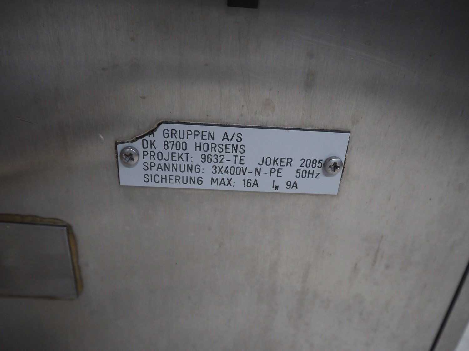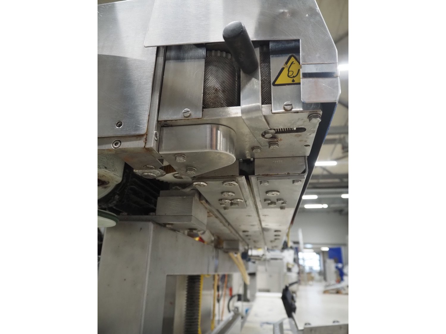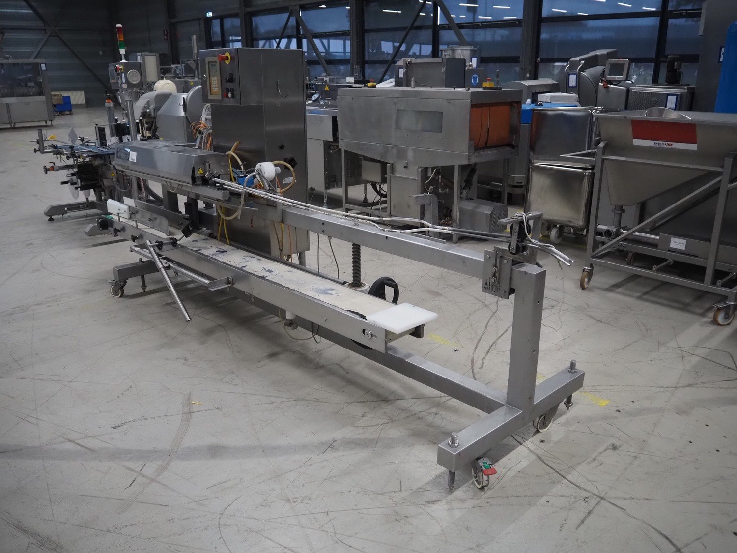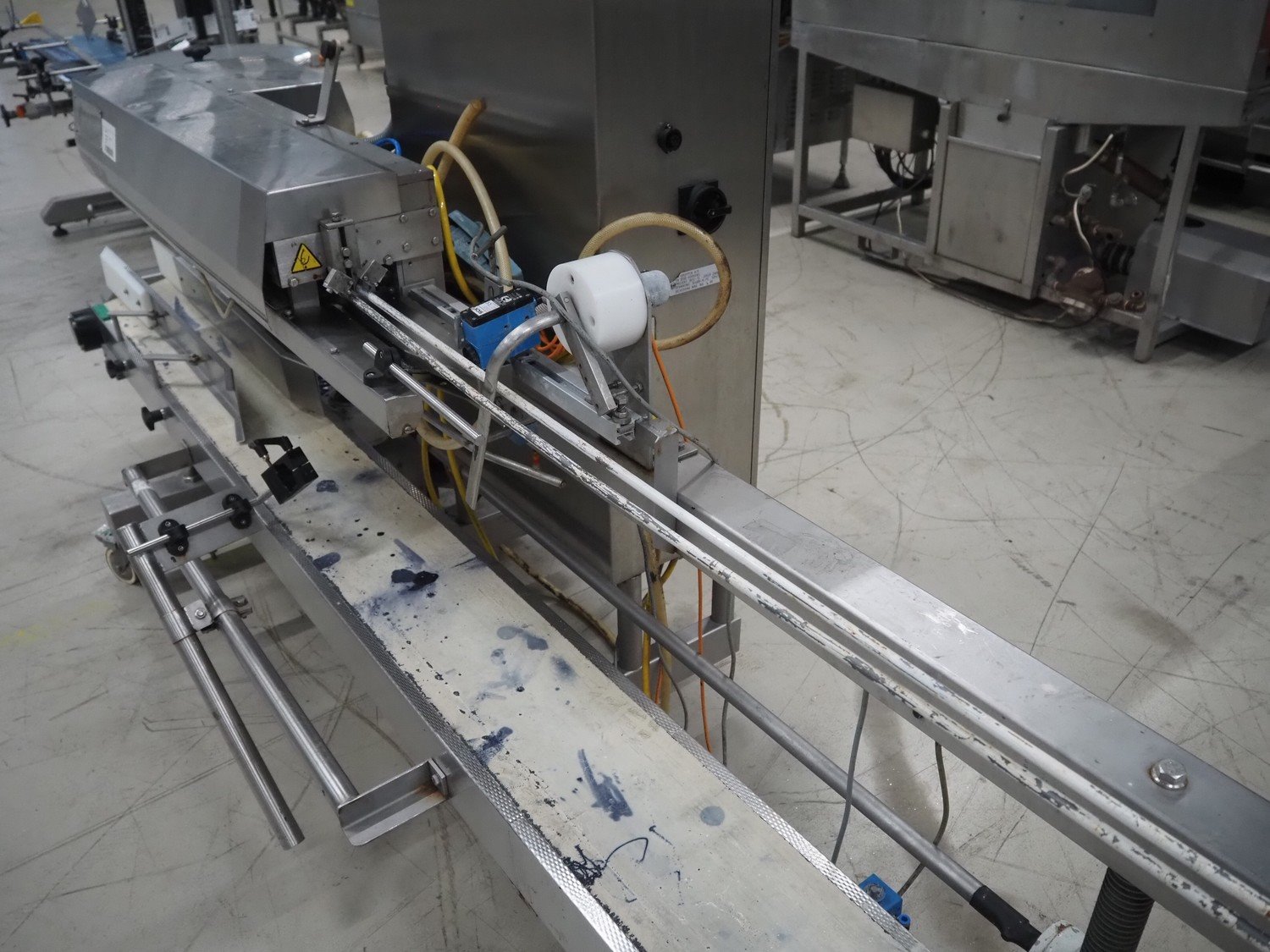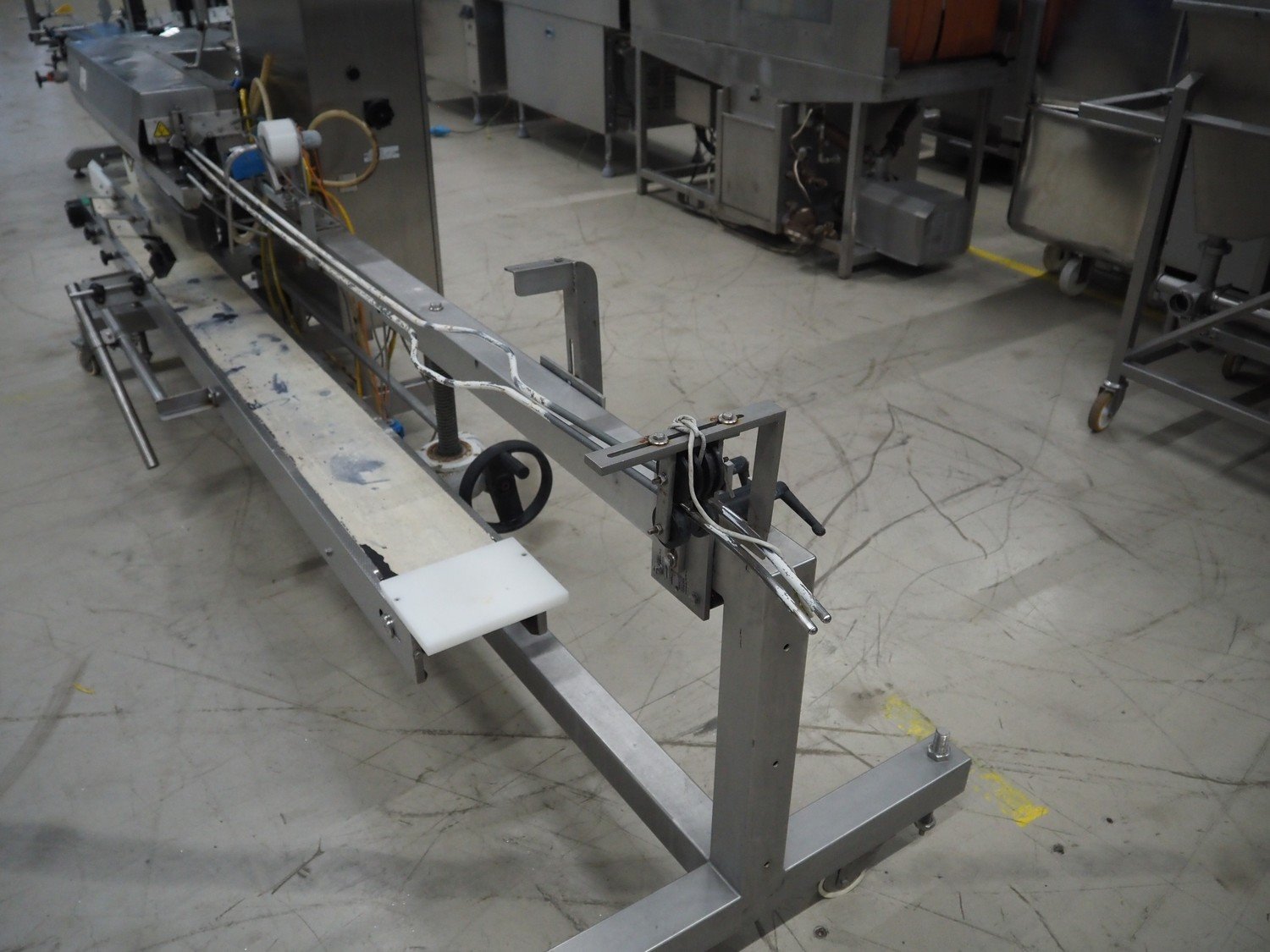 Schur mobile continuous bag sealer, type: Joker 225, 400 V, 3 Ph, 50 Hz, 16/9 A, plastic belt, belt width: 200 mm, total dimensions: 3700 mm x 1000 mm x 1600 mm.