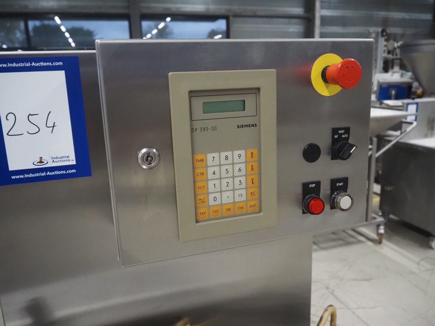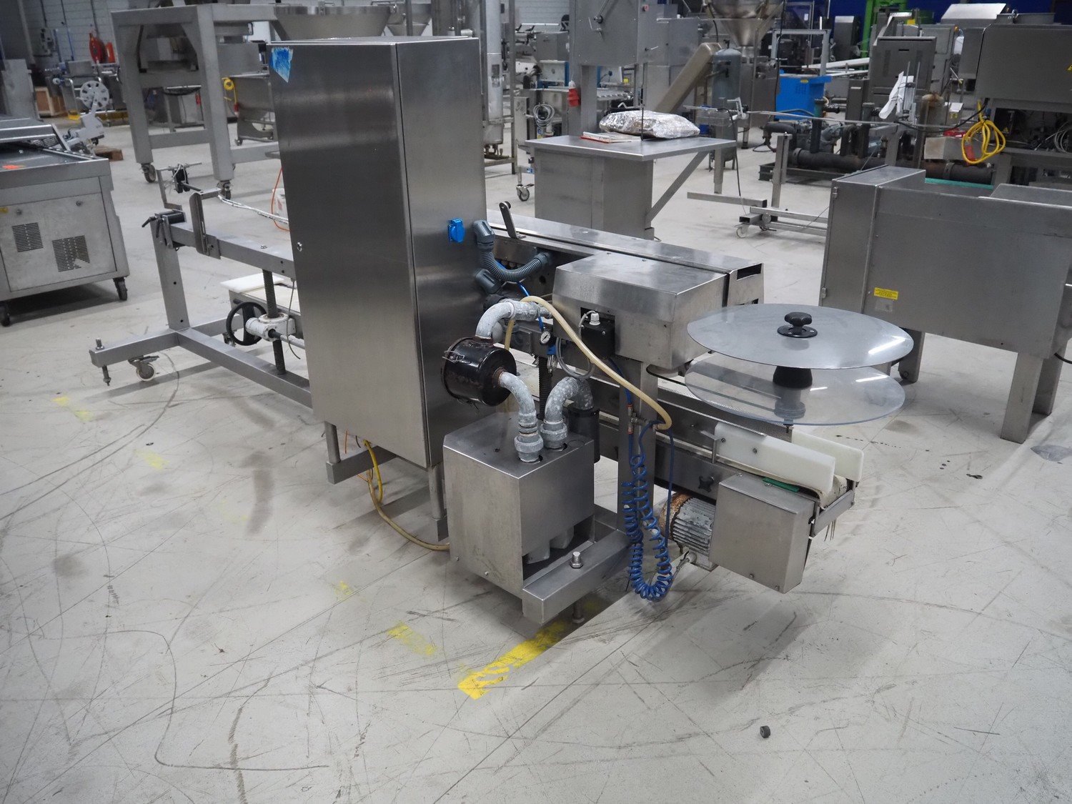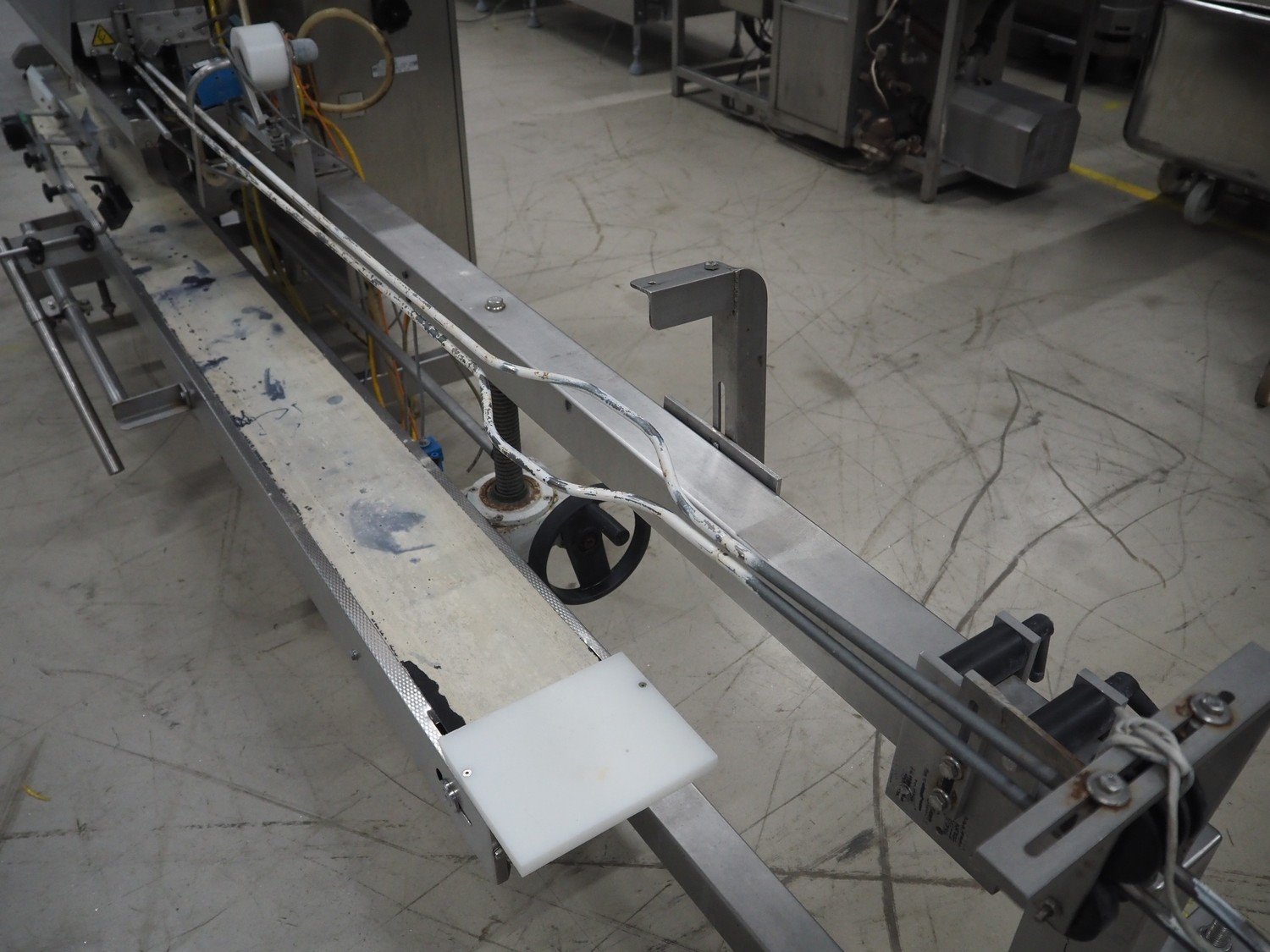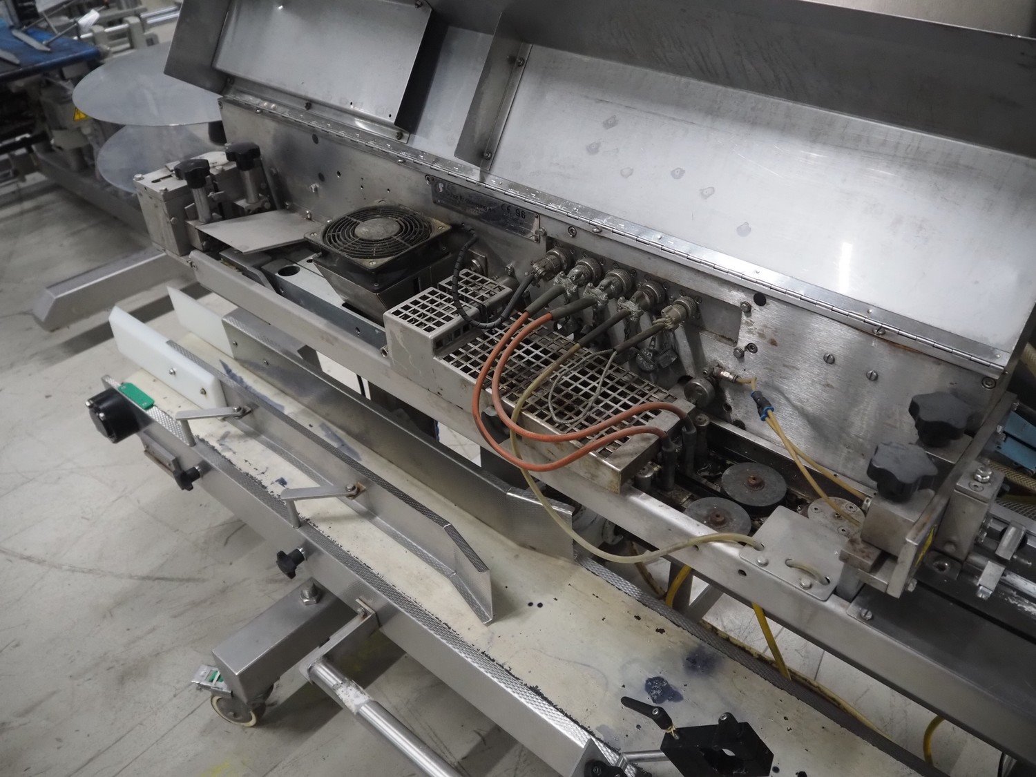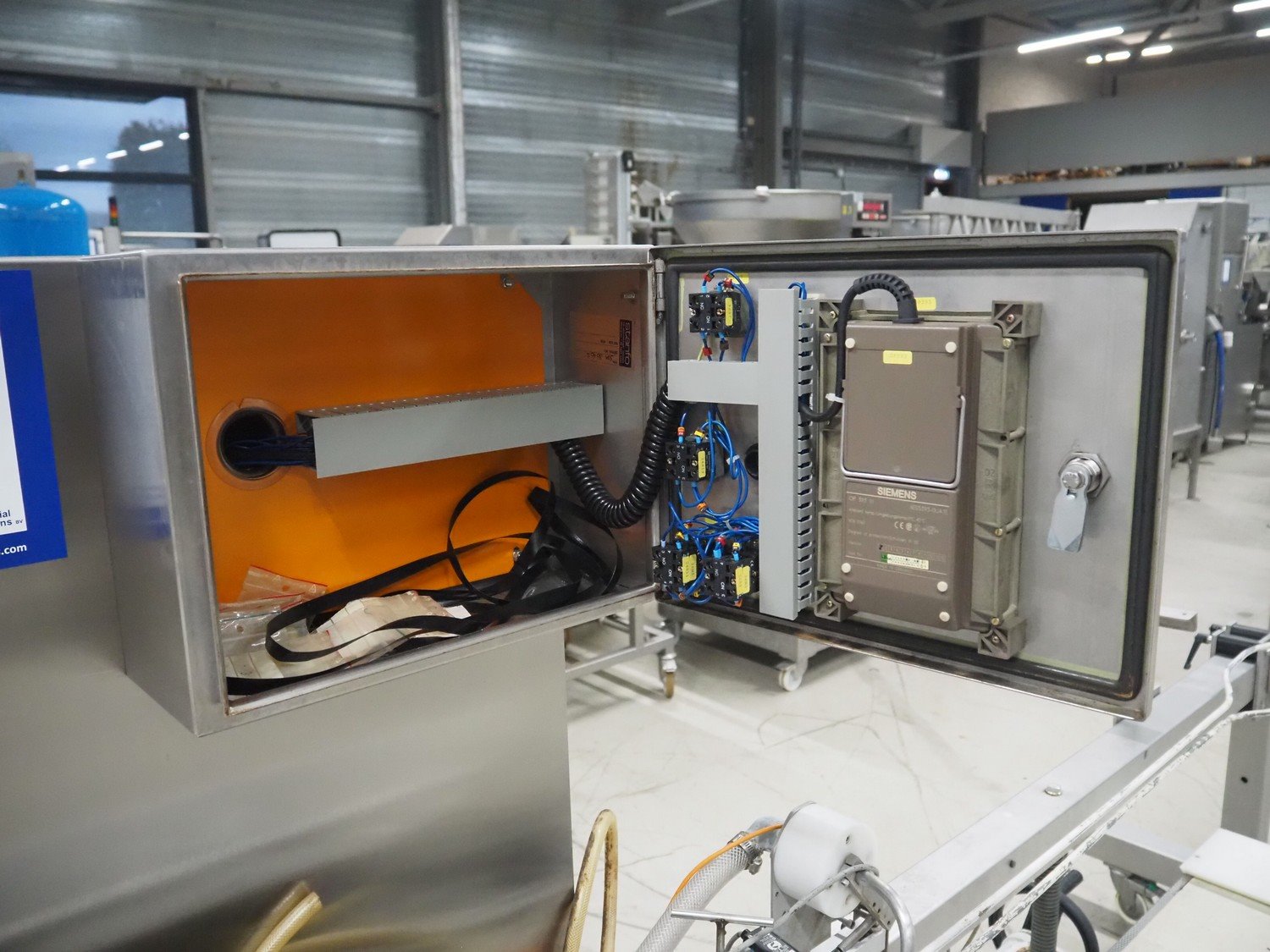 Schur mobile continuous bag sealer, type: Joker 225, 400 V, 3 Ph, 50 Hz, 16/9 A, plastic belt, belt width: 200 mm, total dimensions: 3700 mm x 1000 mm x 1600 mm.