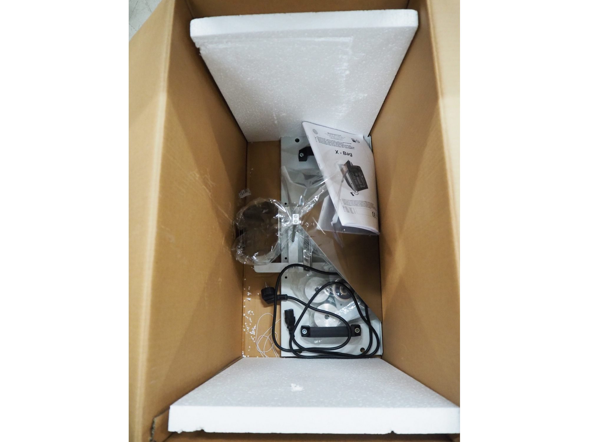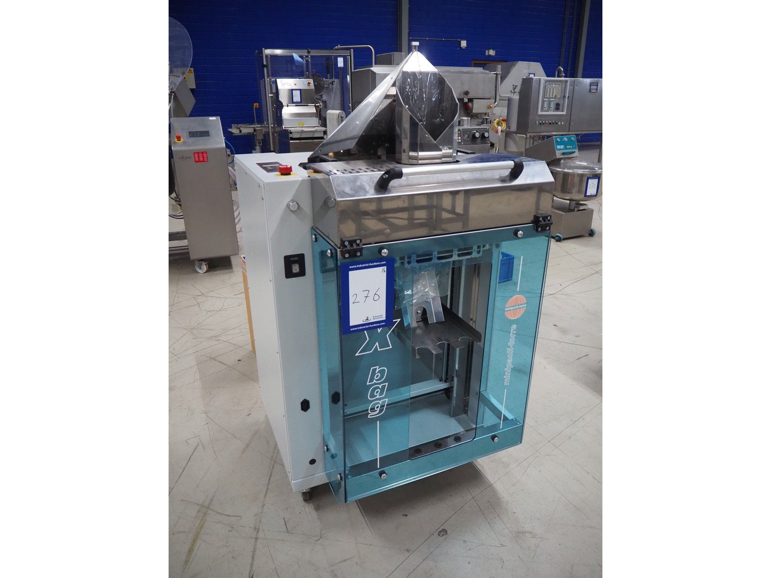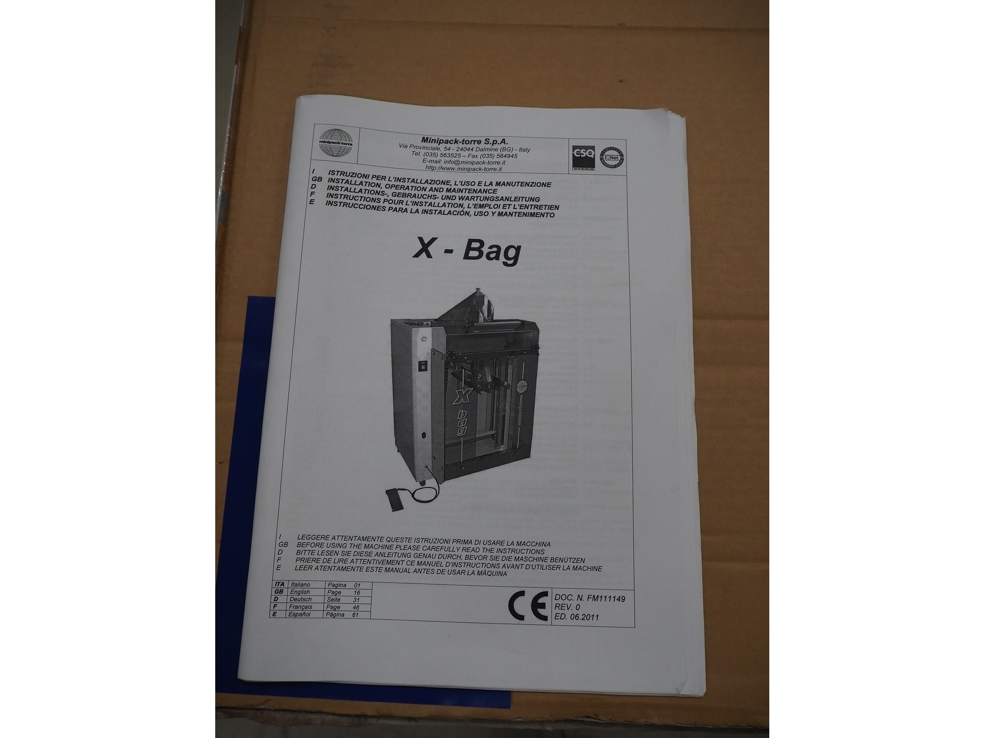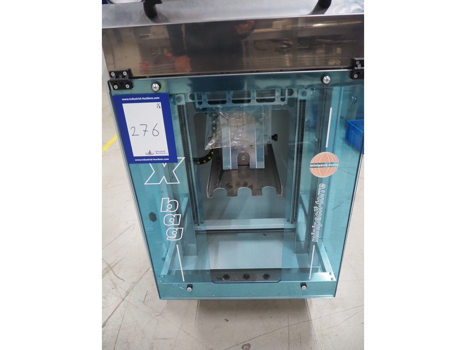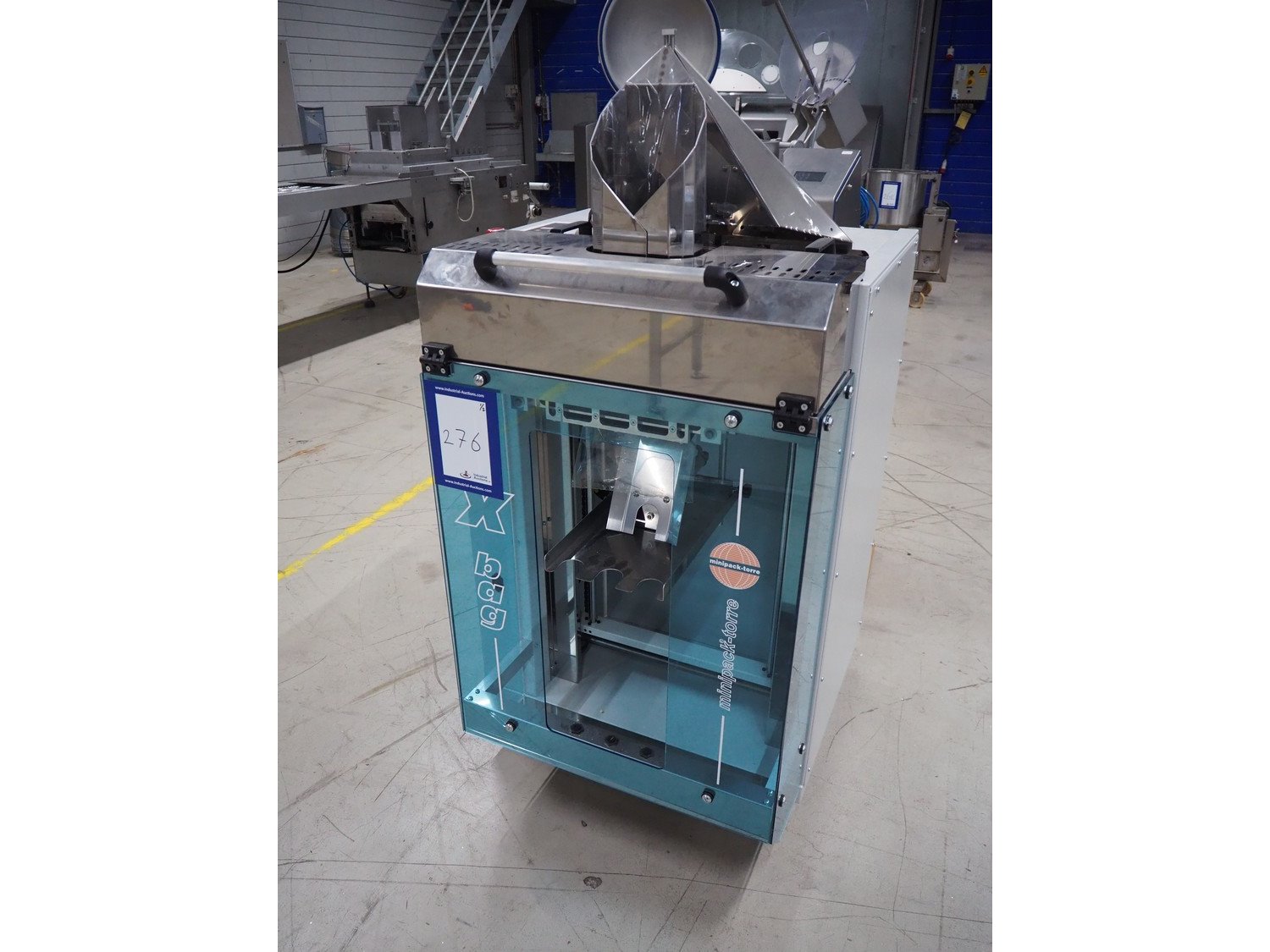 Minipack Torre mobile vertical bag form-, fill-, and seal machine, model: XBAG, serial number: 0115, year of construction: 2011, 230 V, 50 Hz, 2.2 A, 500 W, seal width: 250 mm, total dimensions: 850 mm x 800 mm x 1600 mm. With box with additional parts.