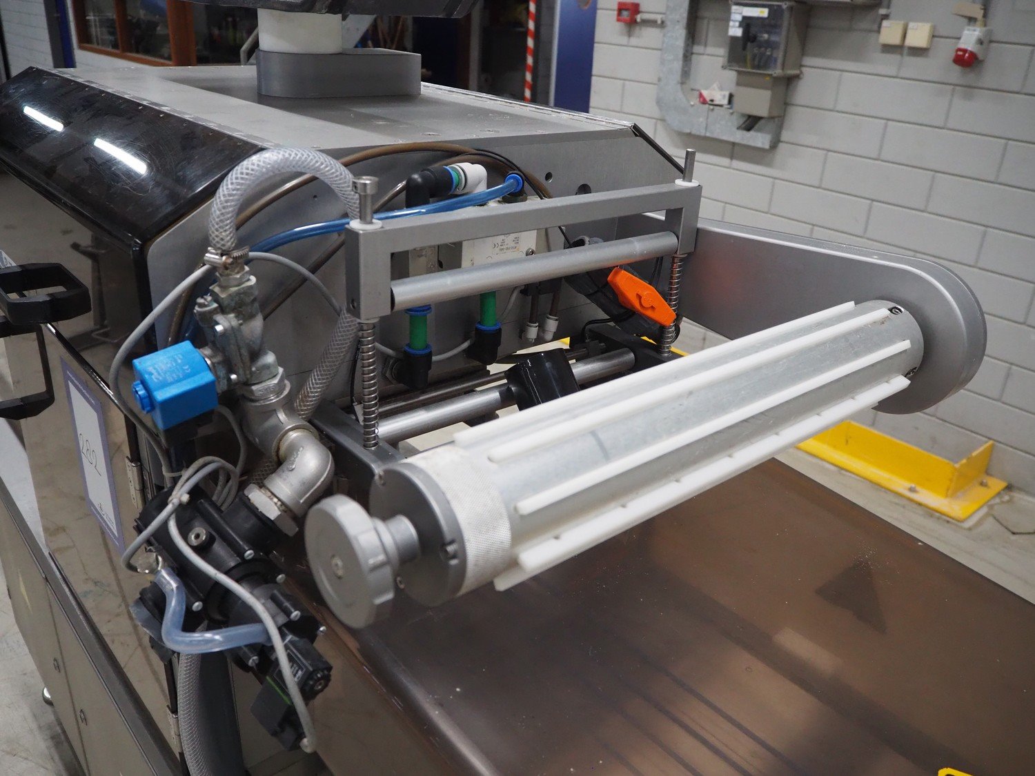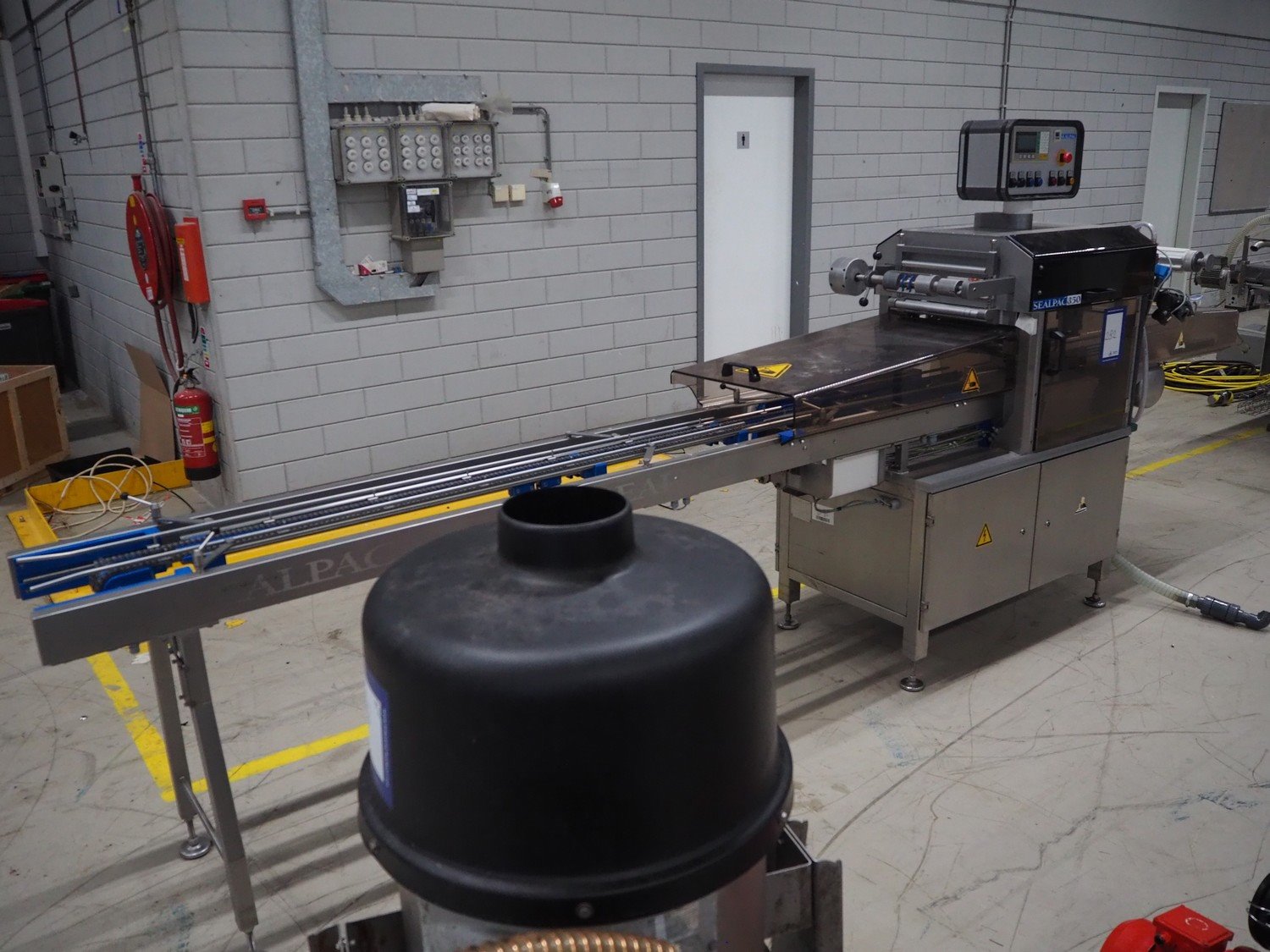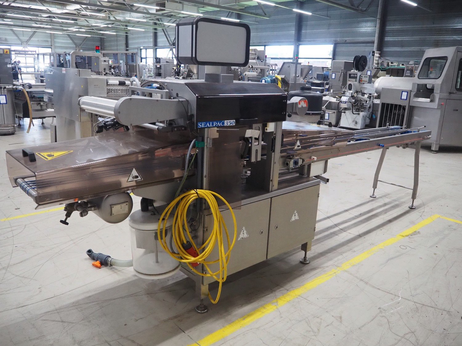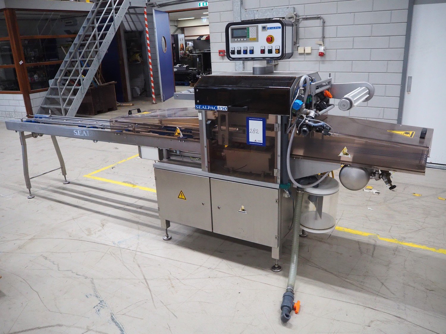 Sealpac traysealer, type: SEALPAC 350, serial number: TVG 01-90-01, year of construction: 1997, 400/230 V, 50-60 Hz, 1.5 kW, weight: 450 kg, dye: (2x) 215 mm x 130 mm, total dimensions: 4250 mm x 900 mm x 1800 mm. Technical condition unknown.