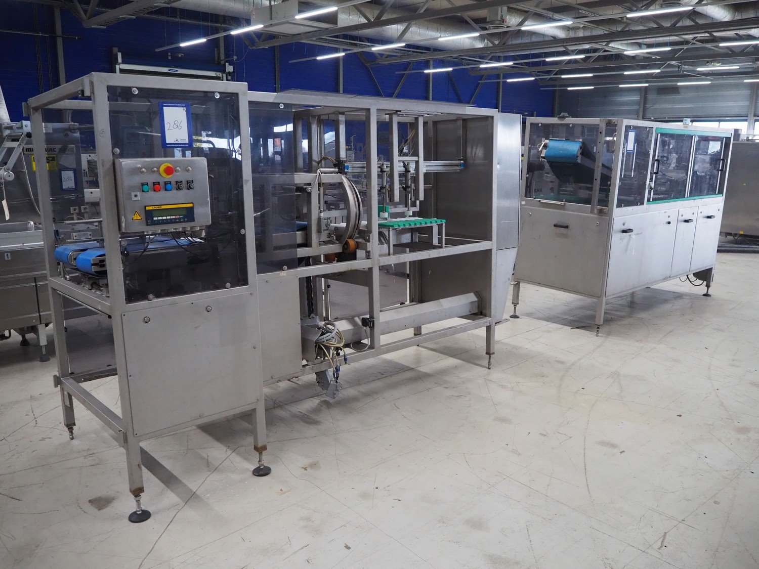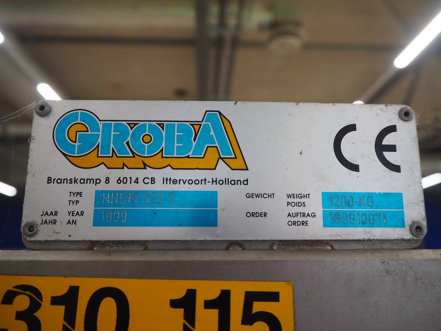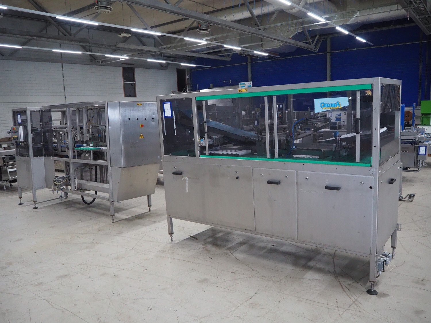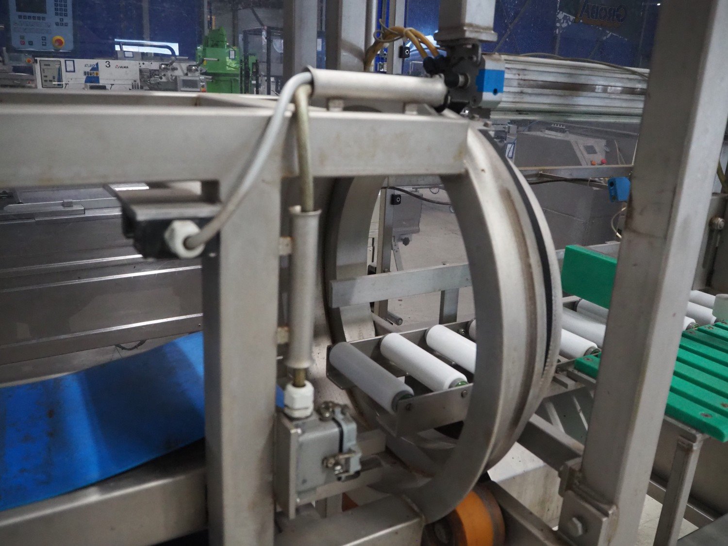 Groba horizontal cheese divider, type: HHDM 520-S, year of construction: 1999, belt width: 340 mm and 235 mm, roll width: 2 x 250 mm, consisting of 2 parts, dimensions: 3250 mm x 1100 mm x 2100 mm and 2800 mm x 1100 mm x 2080 mm.