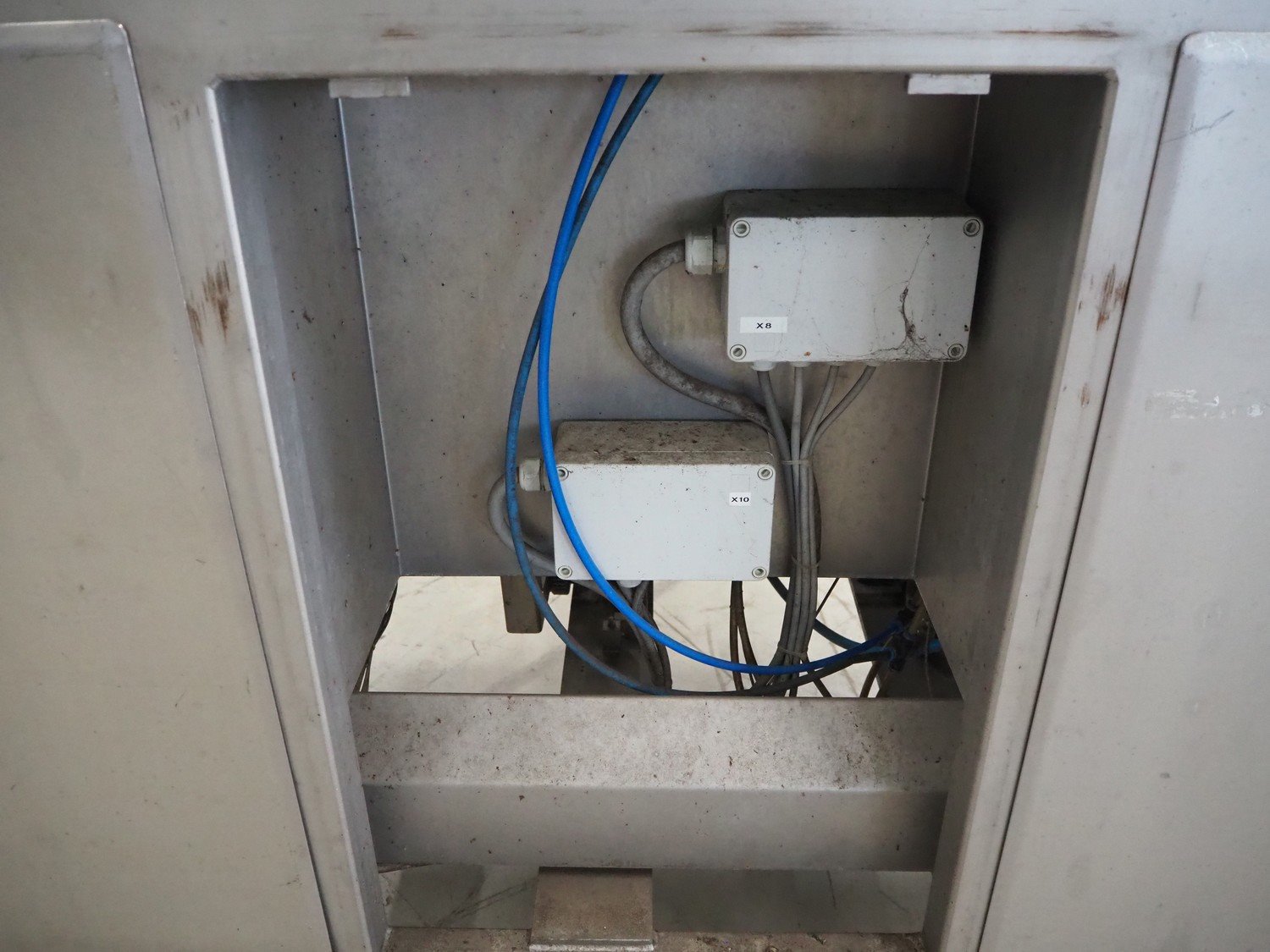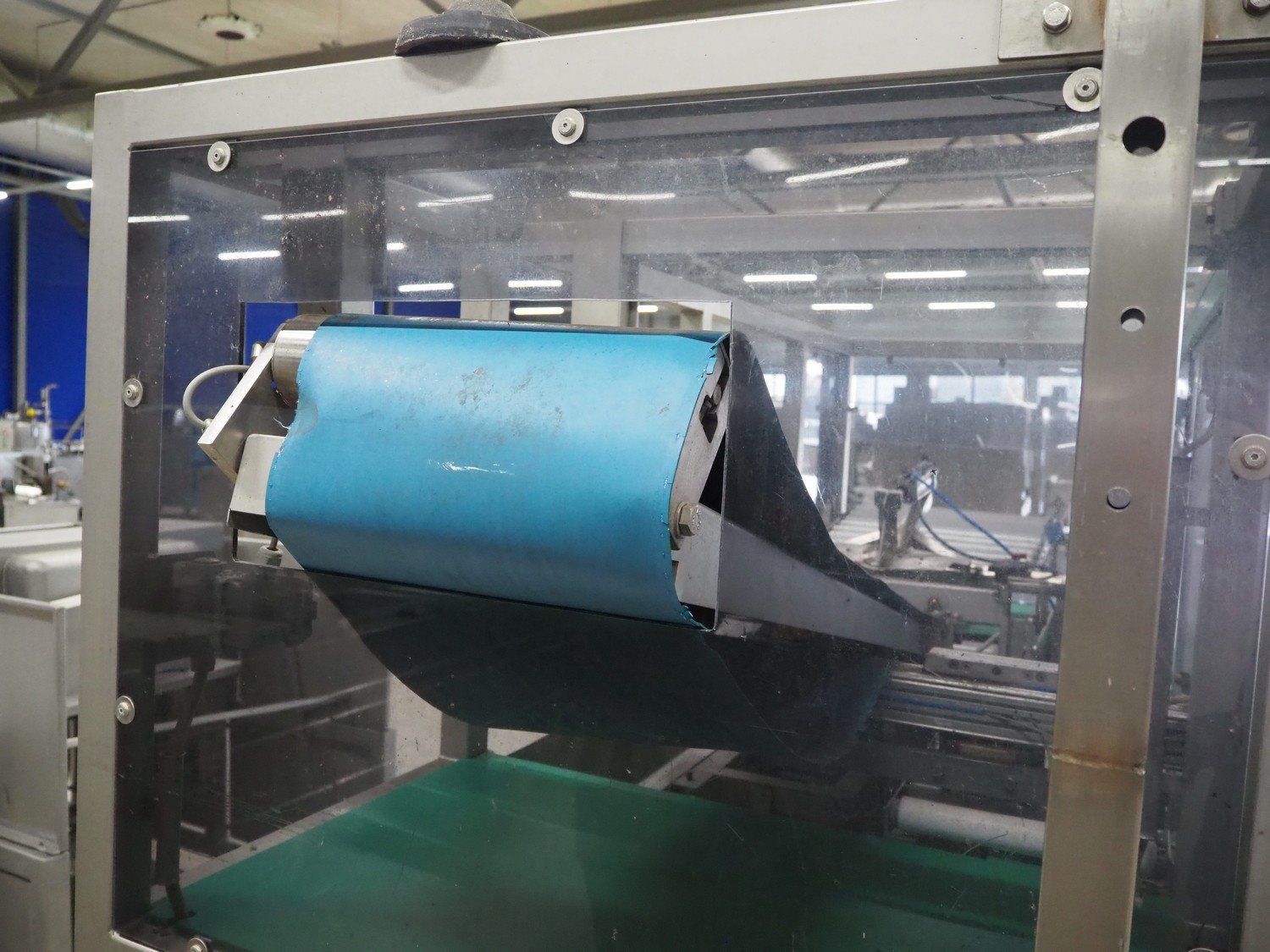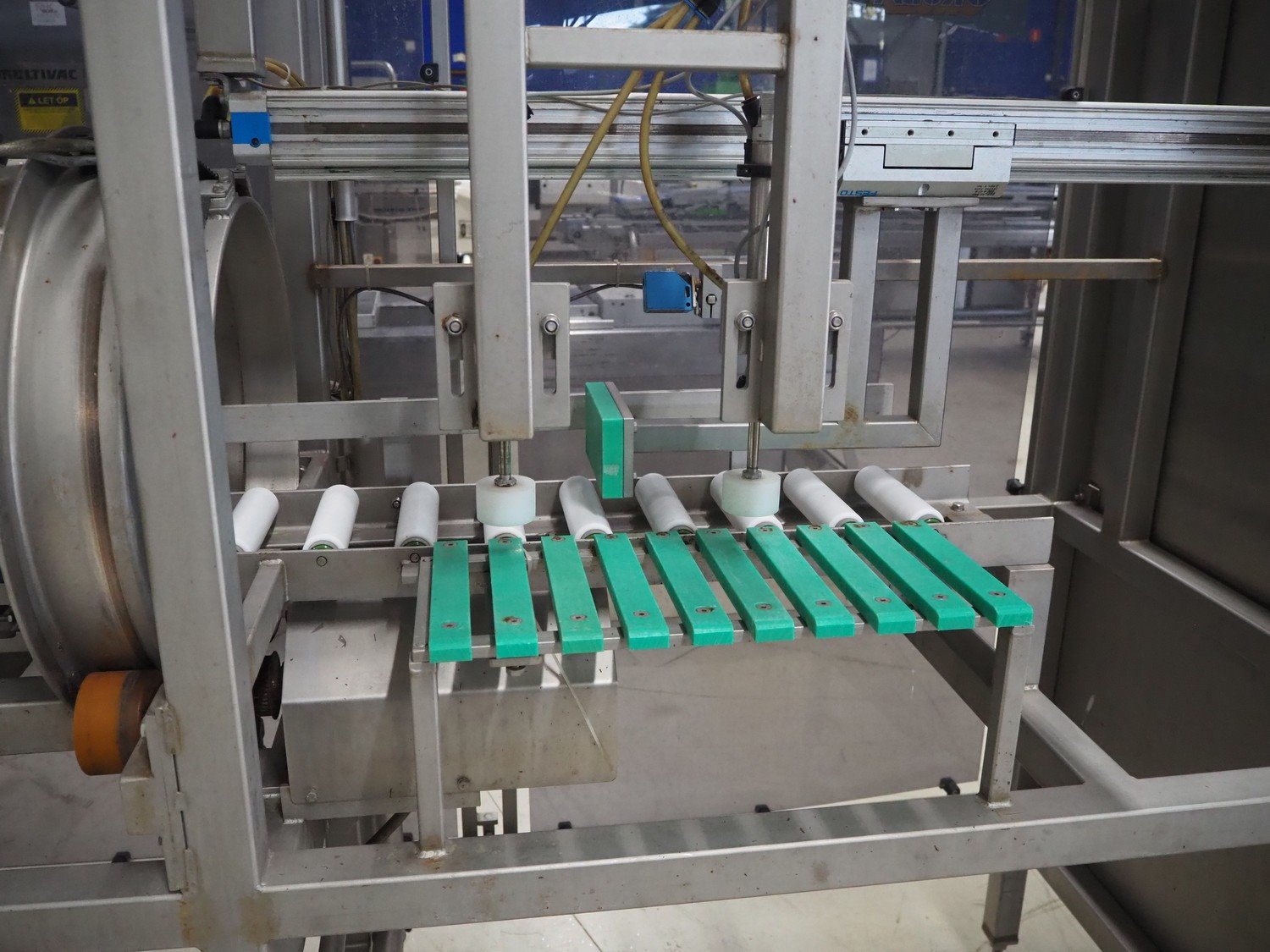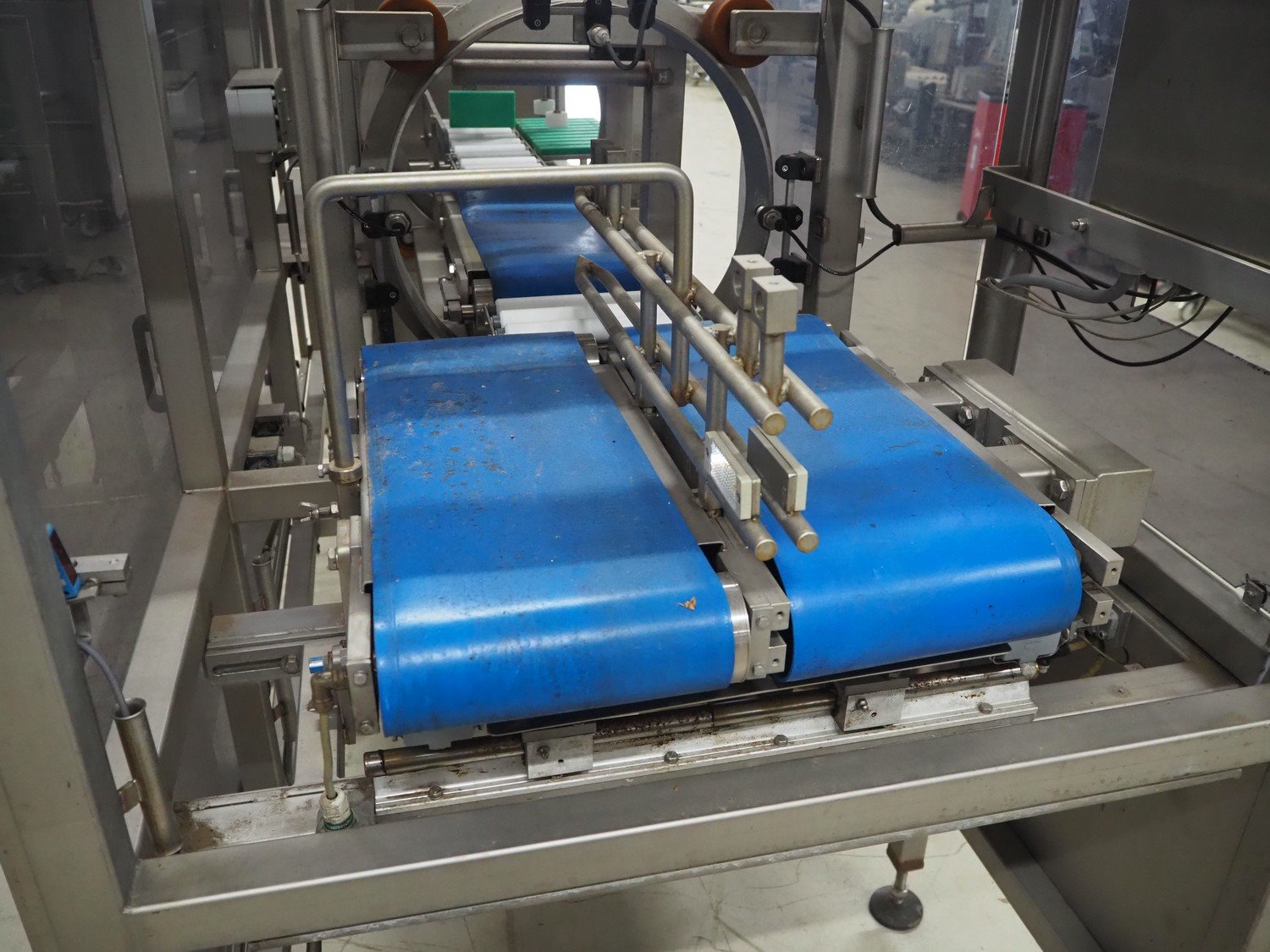 Groba horizontal cheese divider, type: HHDM 520-S, year of construction: 1999, belt width: 340 mm and 235 mm, roll width: 2 x 250 mm, consisting of 2 parts, dimensions: 3250 mm x 1100 mm x 2100 mm and 2800 mm x 1100 mm x 2080 mm.