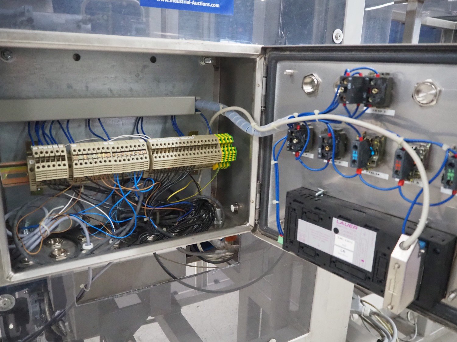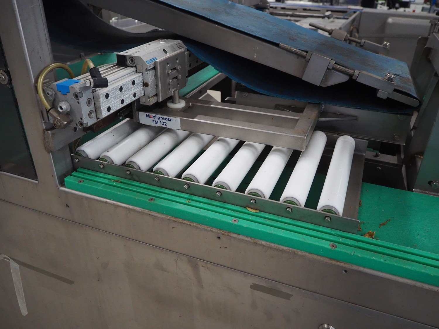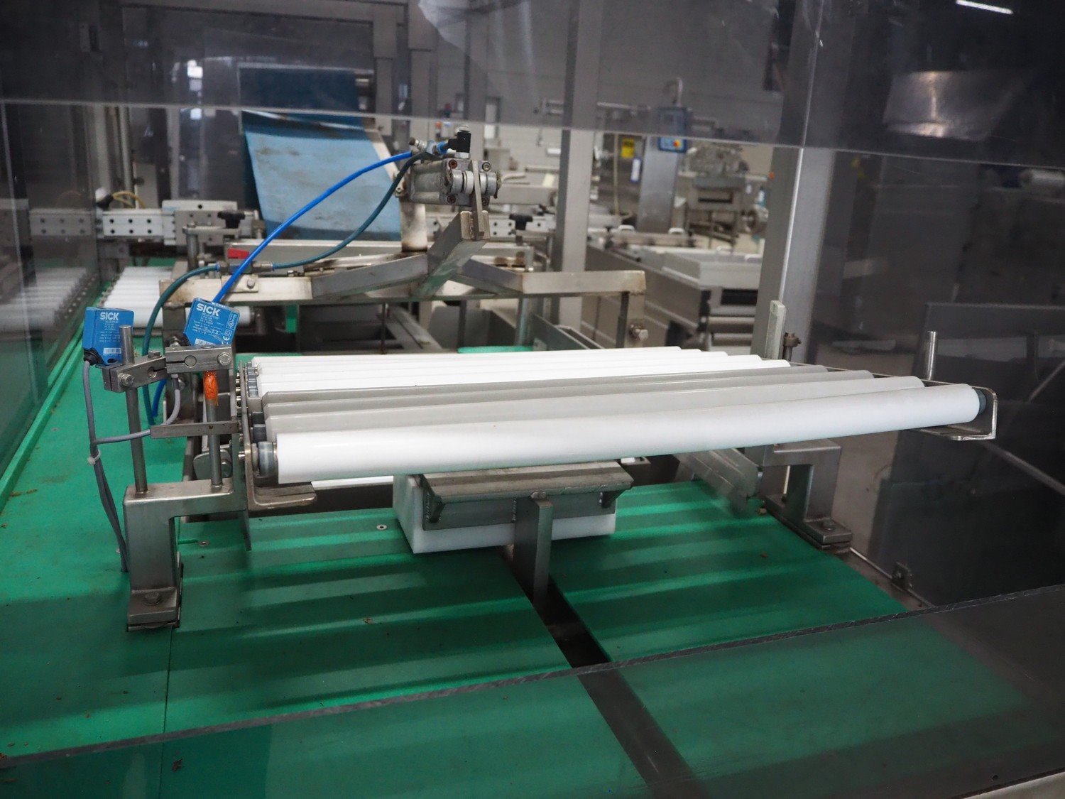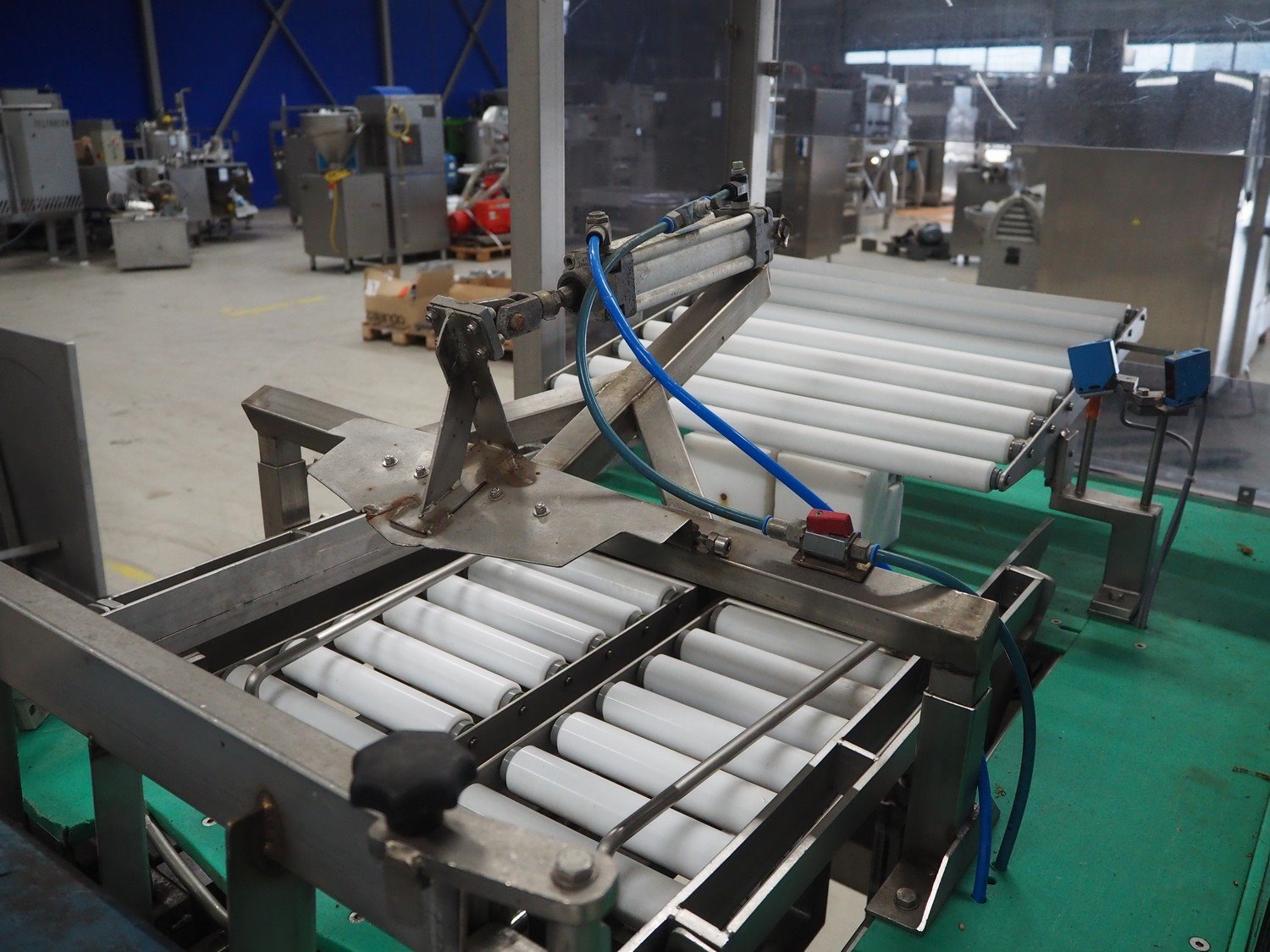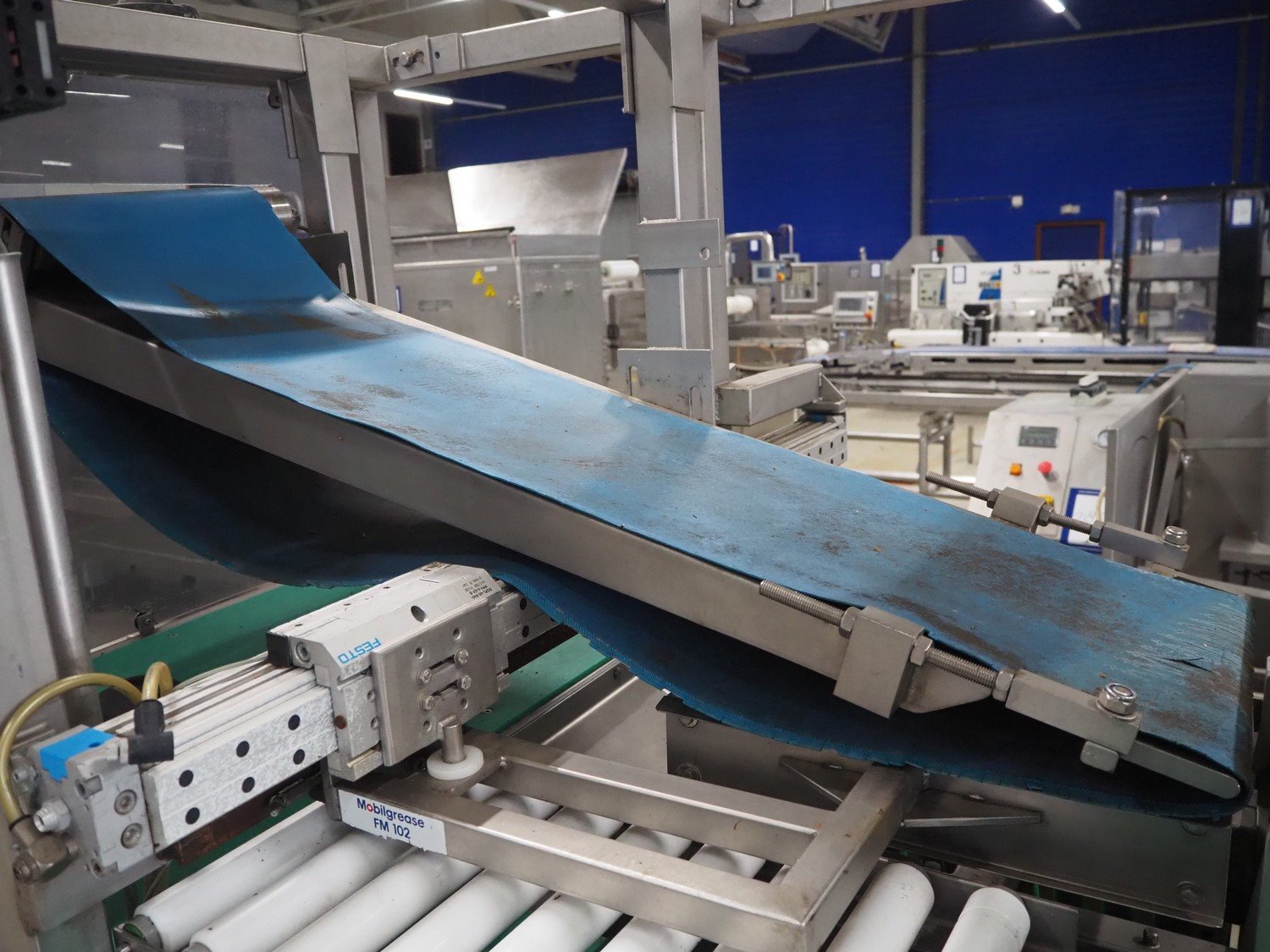 Groba horizontal cheese divider, type: HHDM 520-S, year of construction: 1999, belt width: 340 mm and 235 mm, roll width: 2 x 250 mm, consisting of 2 parts, dimensions: 3250 mm x 1100 mm x 2100 mm and 2800 mm x 1100 mm x 2080 mm.