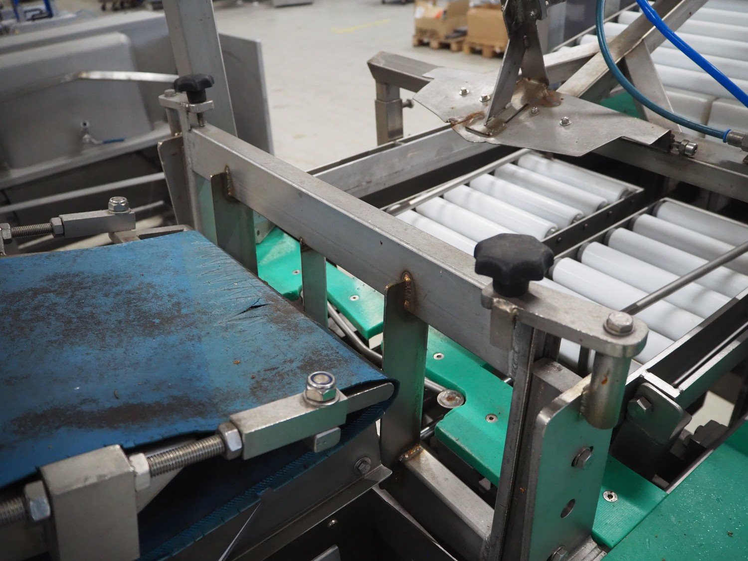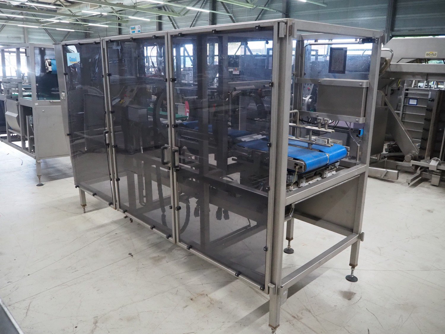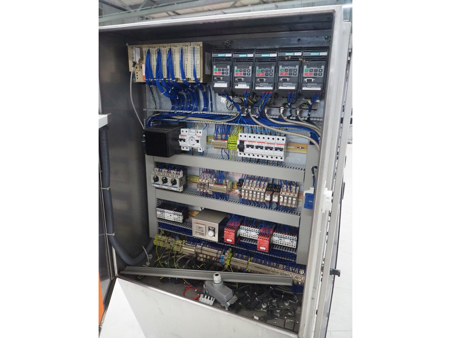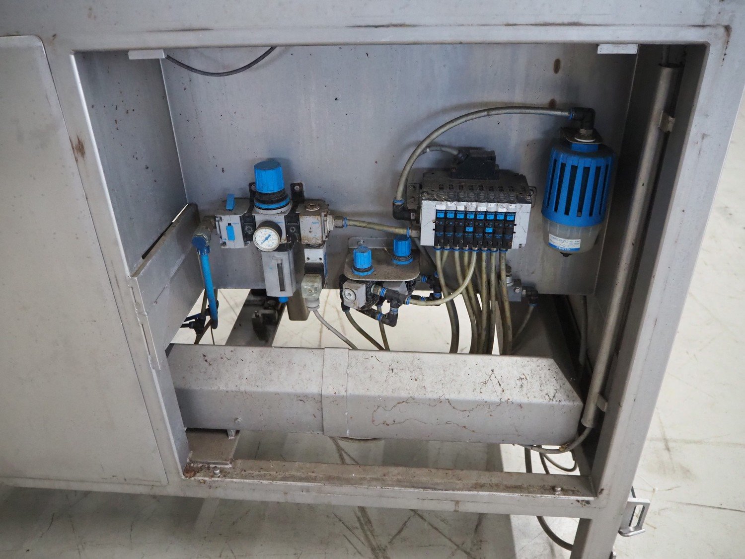 Groba horizontal cheese divider, type: HHDM 520-S, year of construction: 1999, belt width: 340 mm and 235 mm, roll width: 2 x 250 mm, consisting of 2 parts, dimensions: 3250 mm x 1100 mm x 2100 mm and 2800 mm x 1100 mm x 2080 mm.