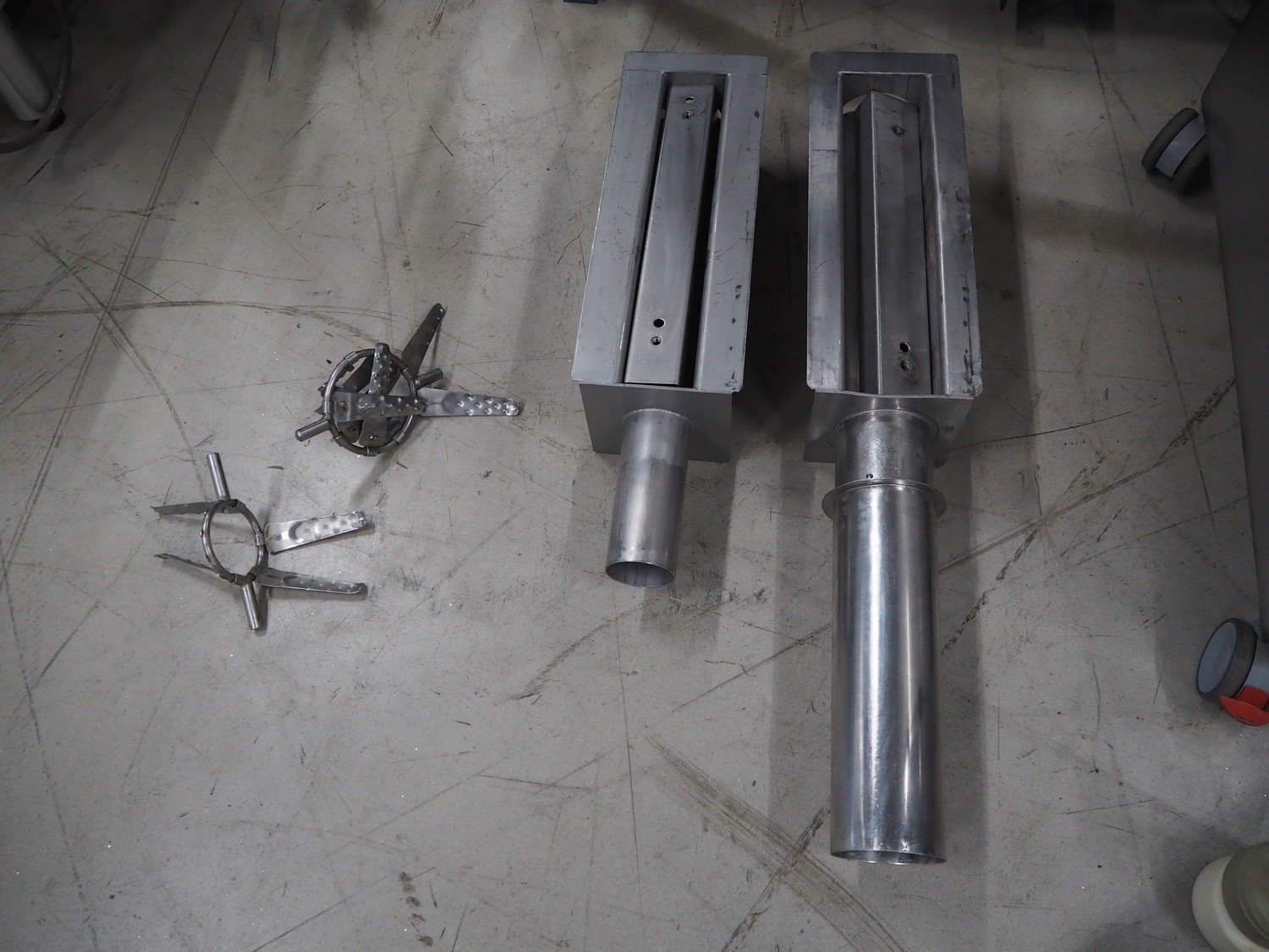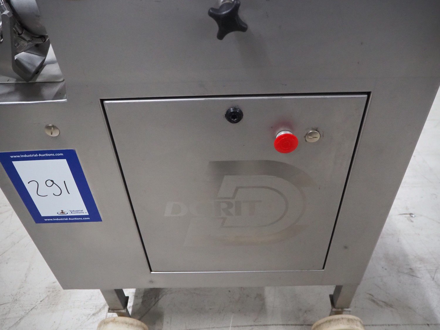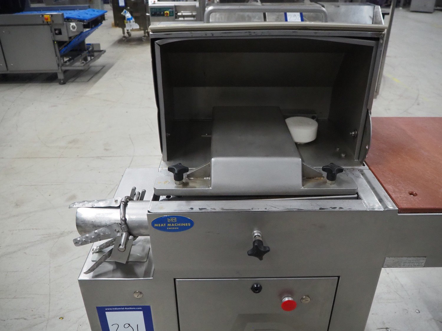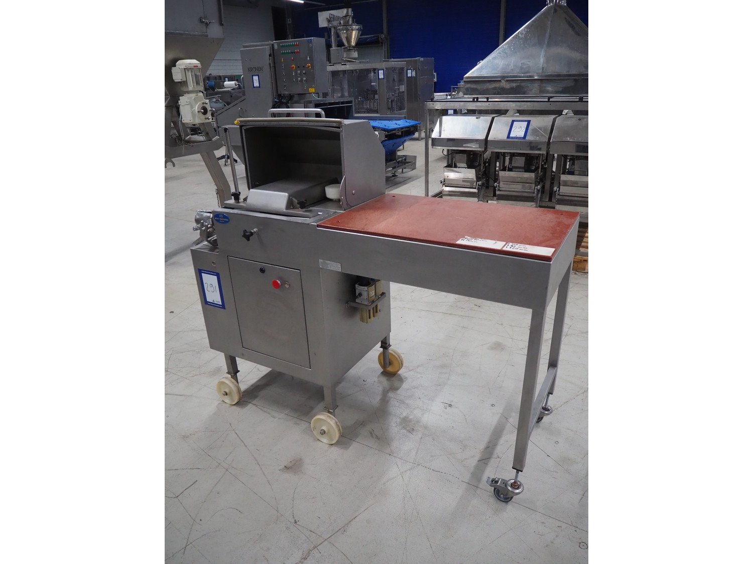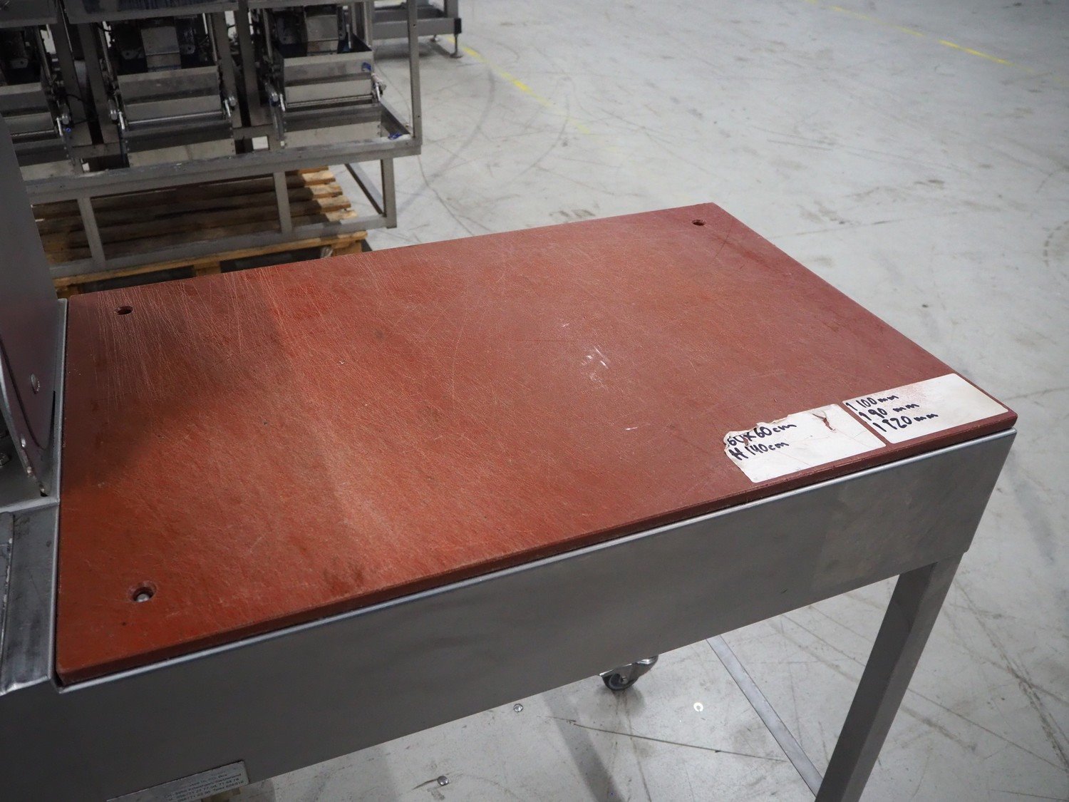 Dorit mobile meat press, type: Combi-press, clearance: Ø 100 mm x 495 mm, total dimensions: 1800 mm x 700 mm x 1420 mm. Including 2 extra outfeed pipes, dimensions outfeed pipes: (1x) 90 mm and (1x) 120 mm.