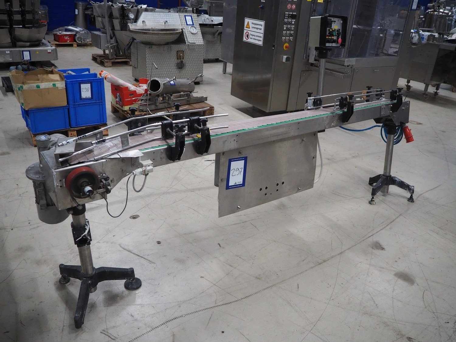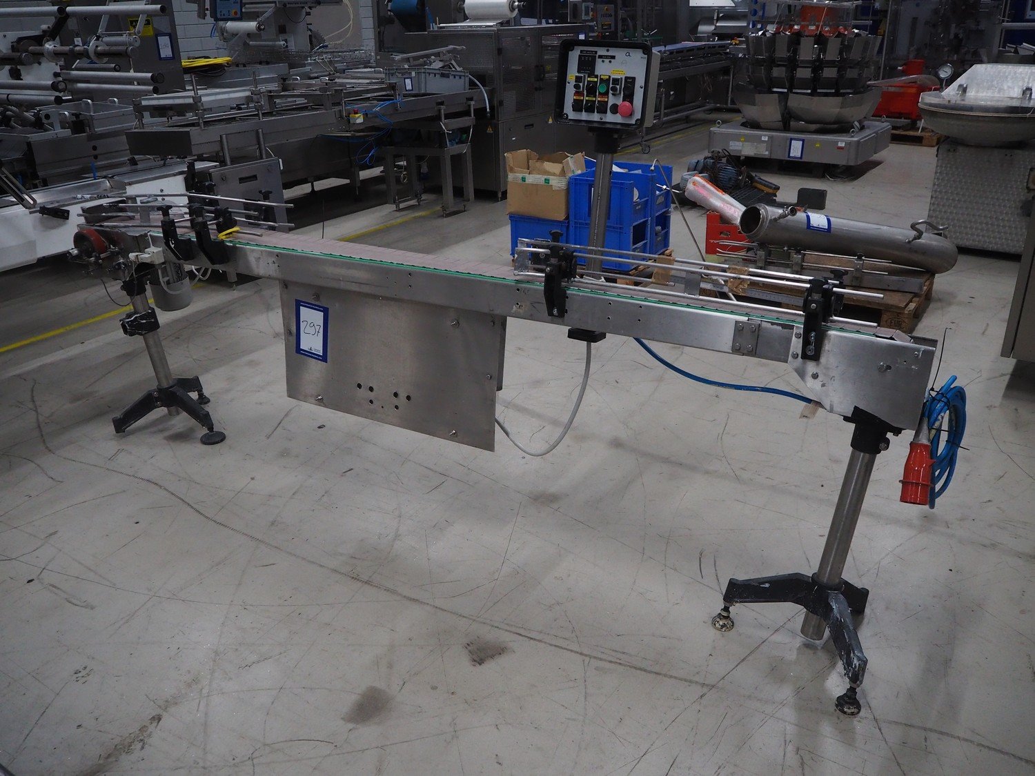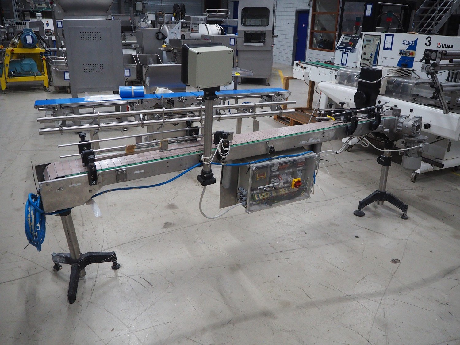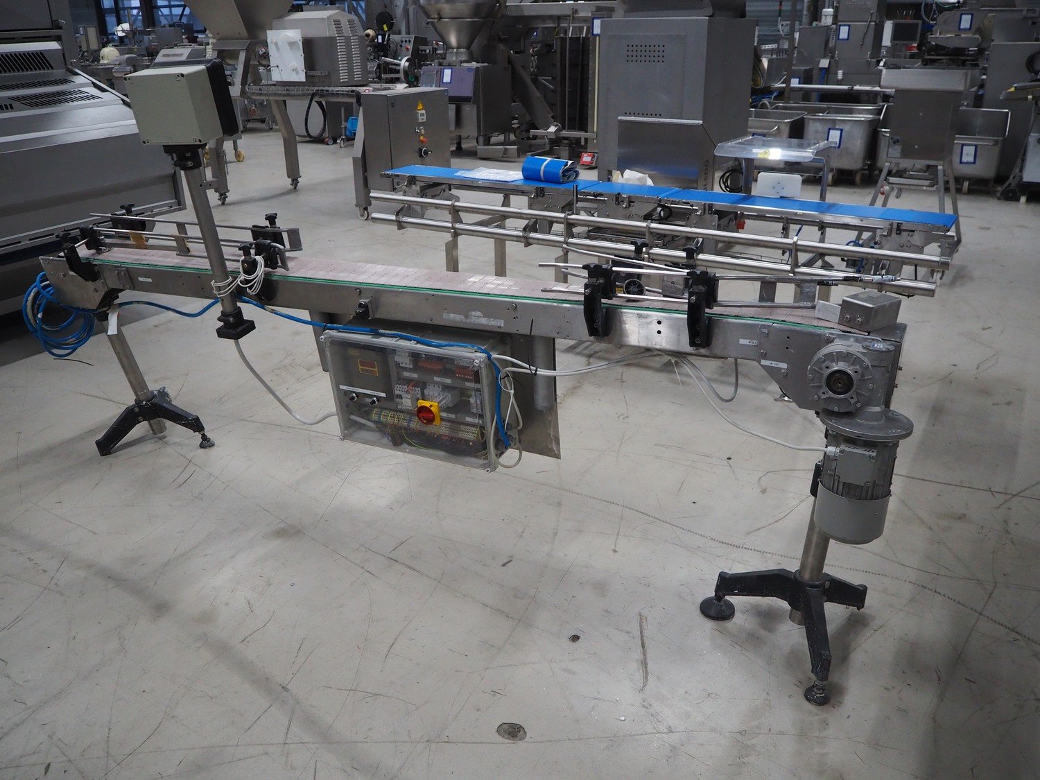 Allround Engineering B.V. transport belt for depositor, serial number: 22345, year of construction: 2022, s/s frame, plastic belt, belt width: 150 mm, total dimensions: 2950 mm x 550 mm x 1550 mm.