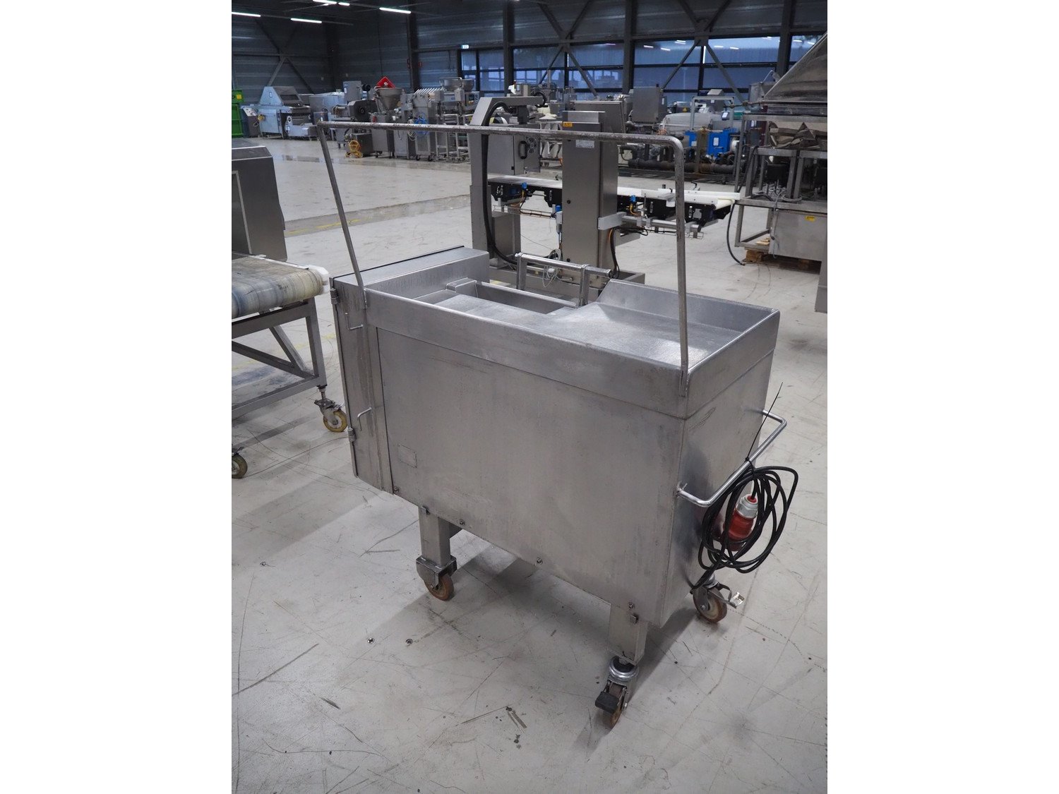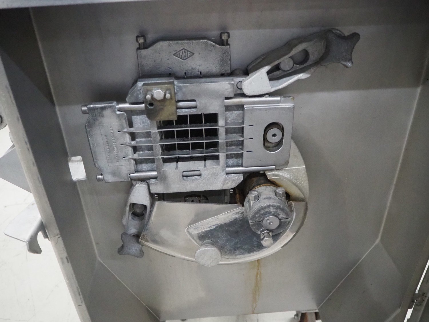 Treif Maschinenbau GmbH mobile dicer, type: 1051, machine number: 105103.67131.0515-1, year of construction: 1989, 380-220 V, 3 Ph, 50 Hz, 5.5 A, dimensions chamber: 85 mm x 85 mm, total dimensions: 1300 mm x 700 mm x 1500 mm.