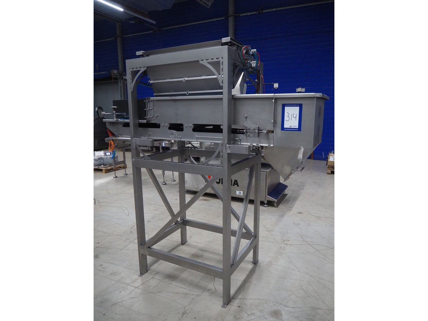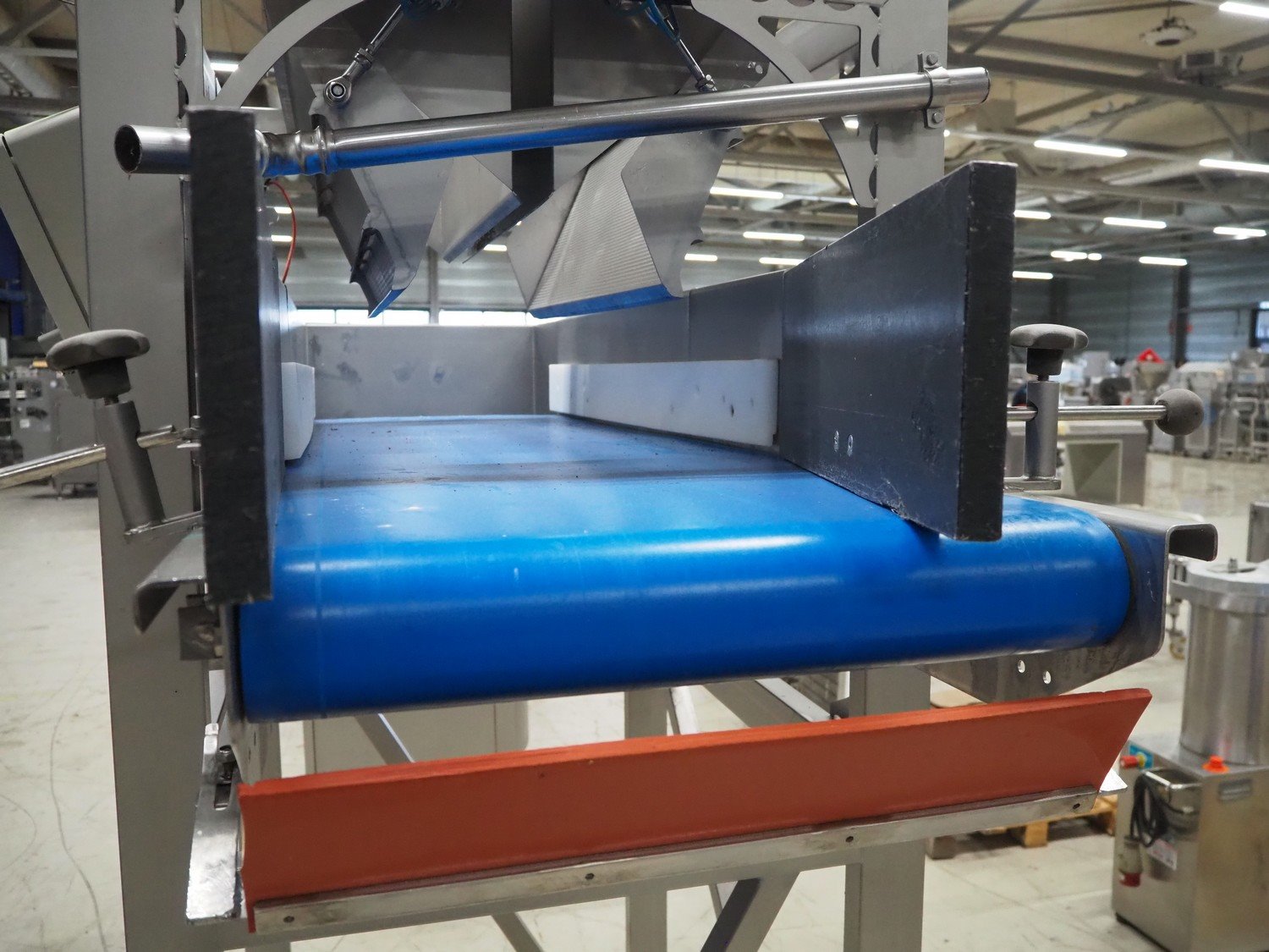 Marel part for batch weigher, s/s frame, plastic belt, belt width: 530 mm, total dimensions: 2120 mm x 950 mm x 2230 mm.