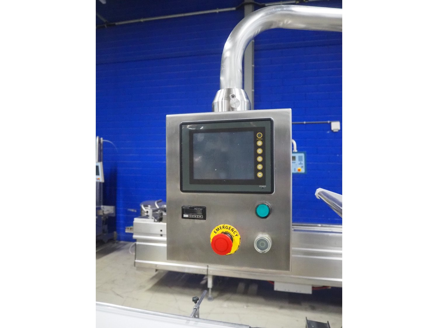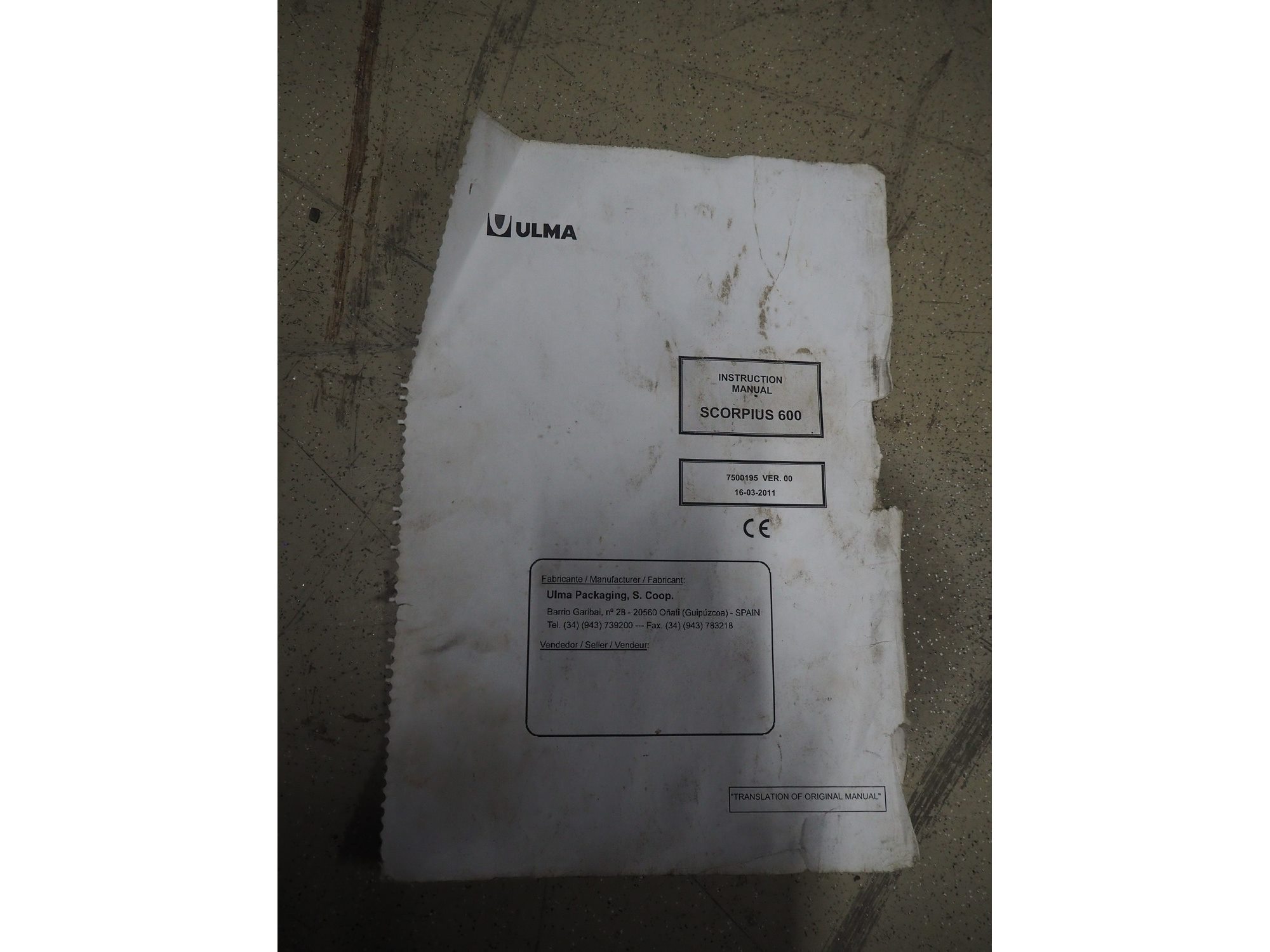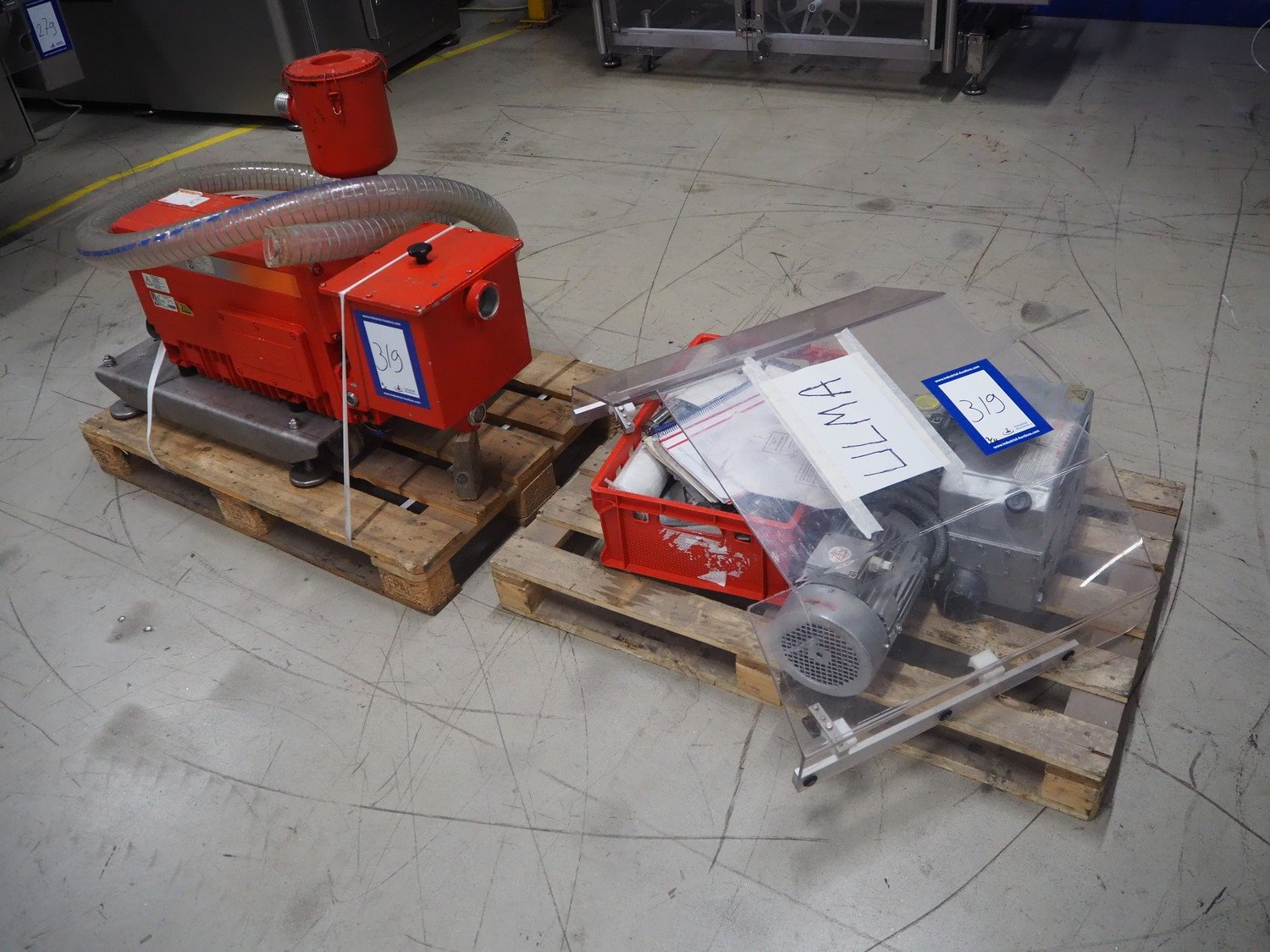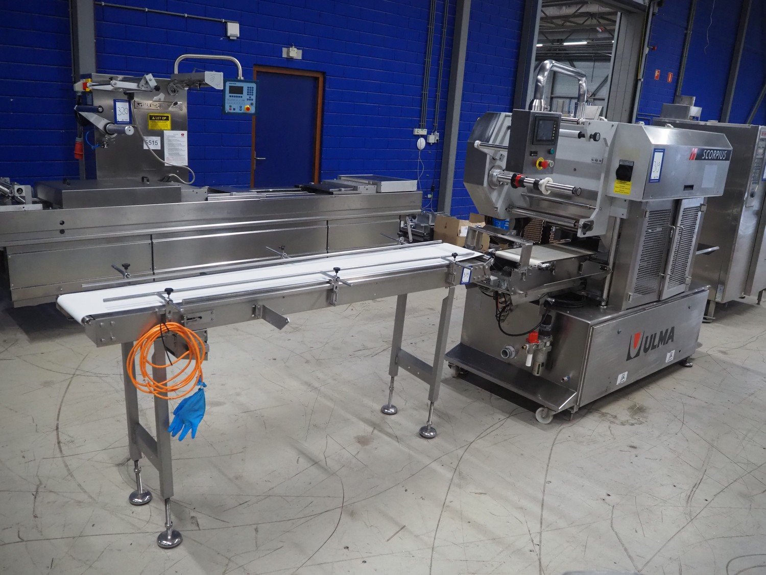 Ulma mobile traysealer, model: SCORPIUS 600, number: 7500195, year of construction: 2011, 400 V, 50 Hz, dye: (4x) 120 mm x 170 mm, plastic belts, belt width: (2x) 310 mm, total dimensions: 2500 mm x 1200 mm x 2050 mm. Including pallet with parts and Busch vacuum pump, type: RA 0100 B and RA 0302 D 5S1 CUZZ, number: 178966 and C1033000032, capacity: 100 m³ and 300 per hour and infeed belt, s/s frame, plastic belt, belt width: 300 mm, total dimensions: 2150 mm x 800 mm x 1100 mm.