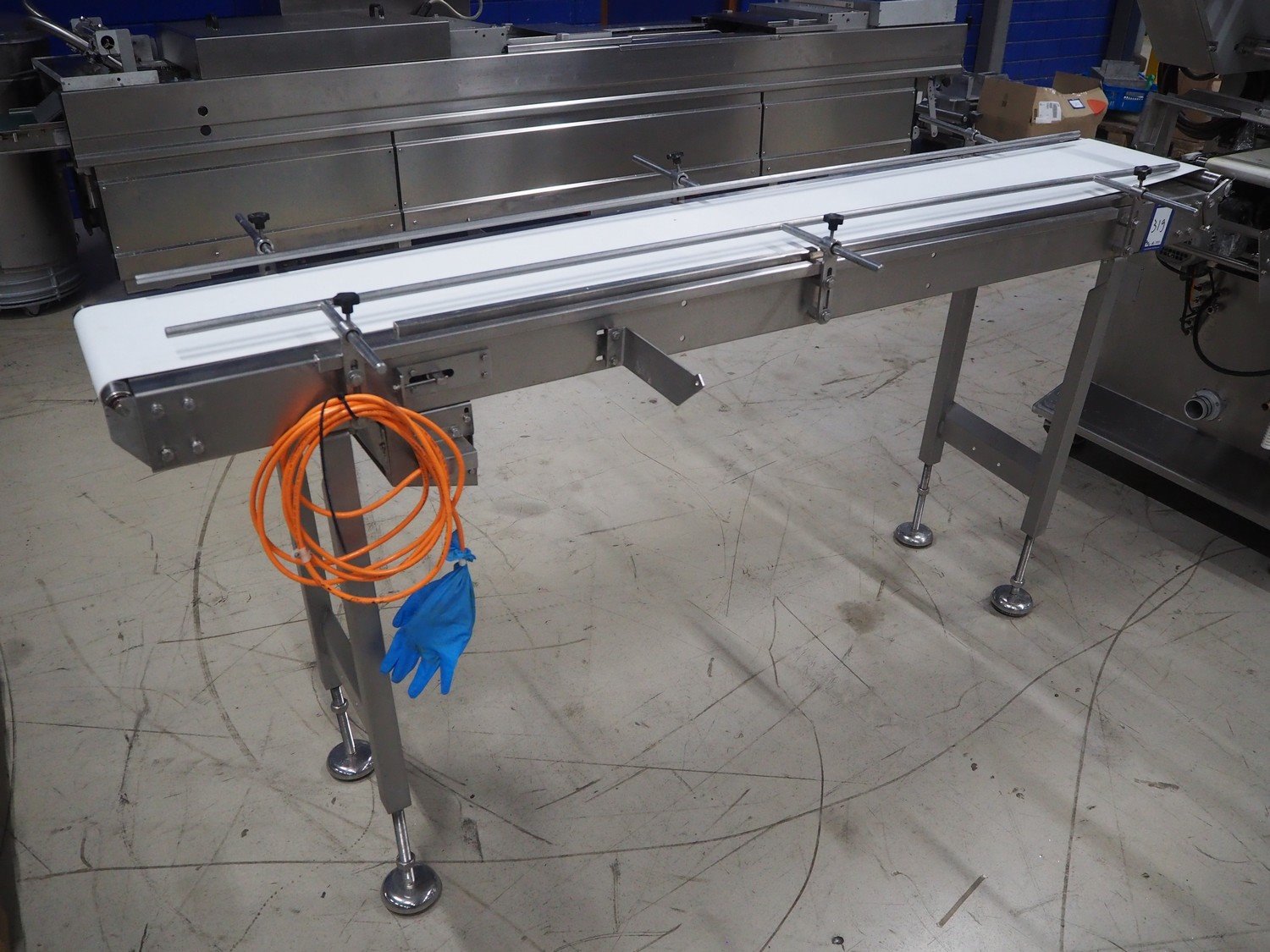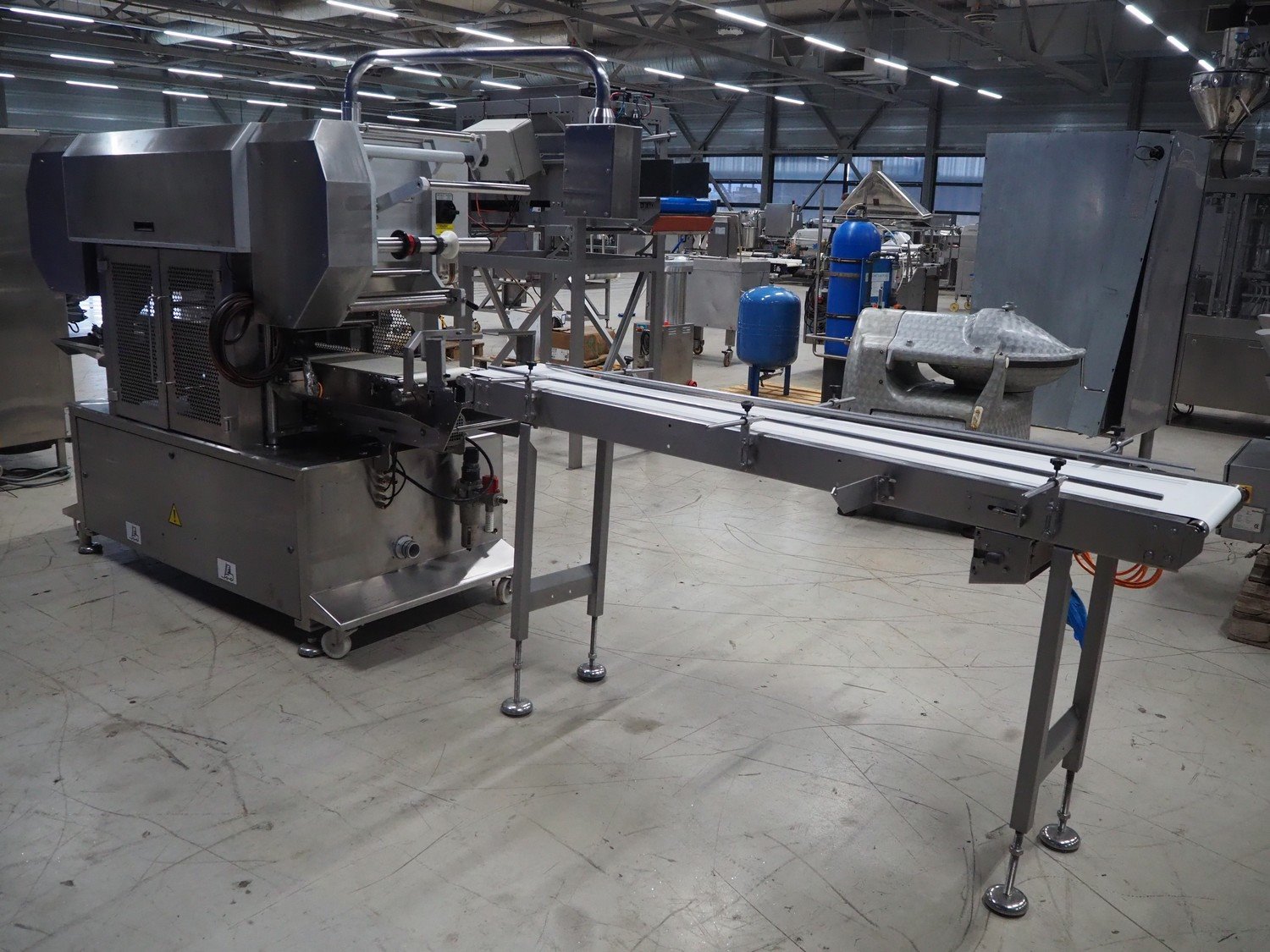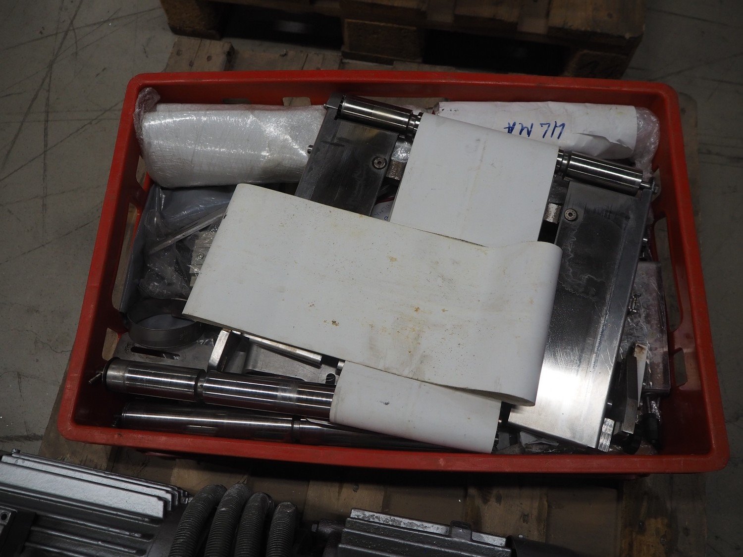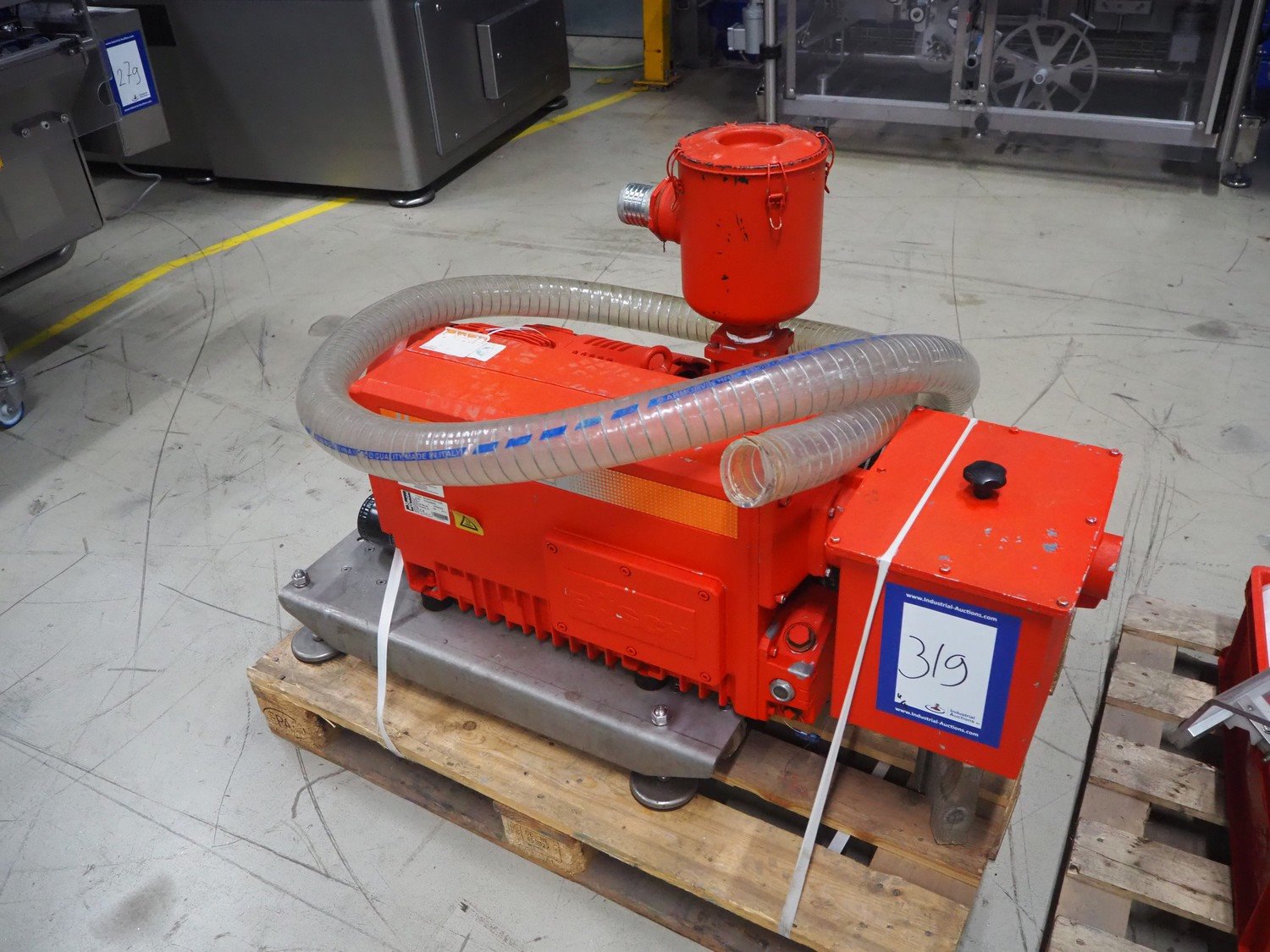 Ulma mobile traysealer, model: SCORPIUS 600, number: 7500195, year of construction: 2011, 400 V, 50 Hz, dye: (4x) 120 mm x 170 mm, plastic belts, belt width: (2x) 310 mm, total dimensions: 2500 mm x 1200 mm x 2050 mm. Including pallet with parts and Busch vacuum pump, type: RA 0100 B and RA 0302 D 5S1 CUZZ, number: 178966 and C1033000032, capacity: 100 m³ and 300 per hour and infeed belt, s/s frame, plastic belt, belt width: 300 mm, total dimensions: 2150 mm x 800 mm x 1100 mm.