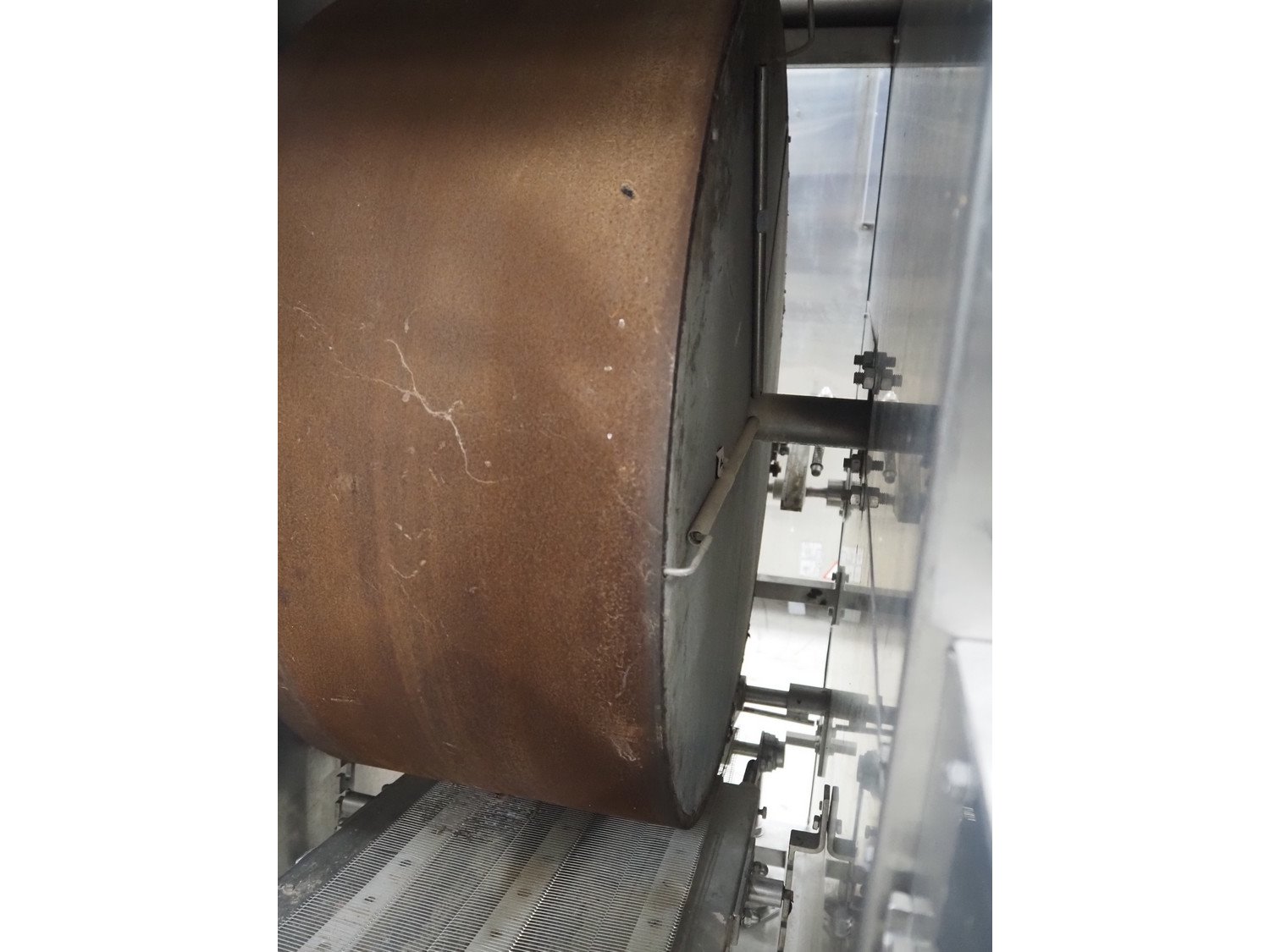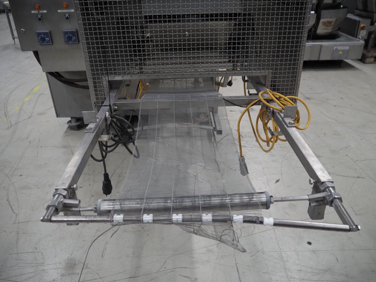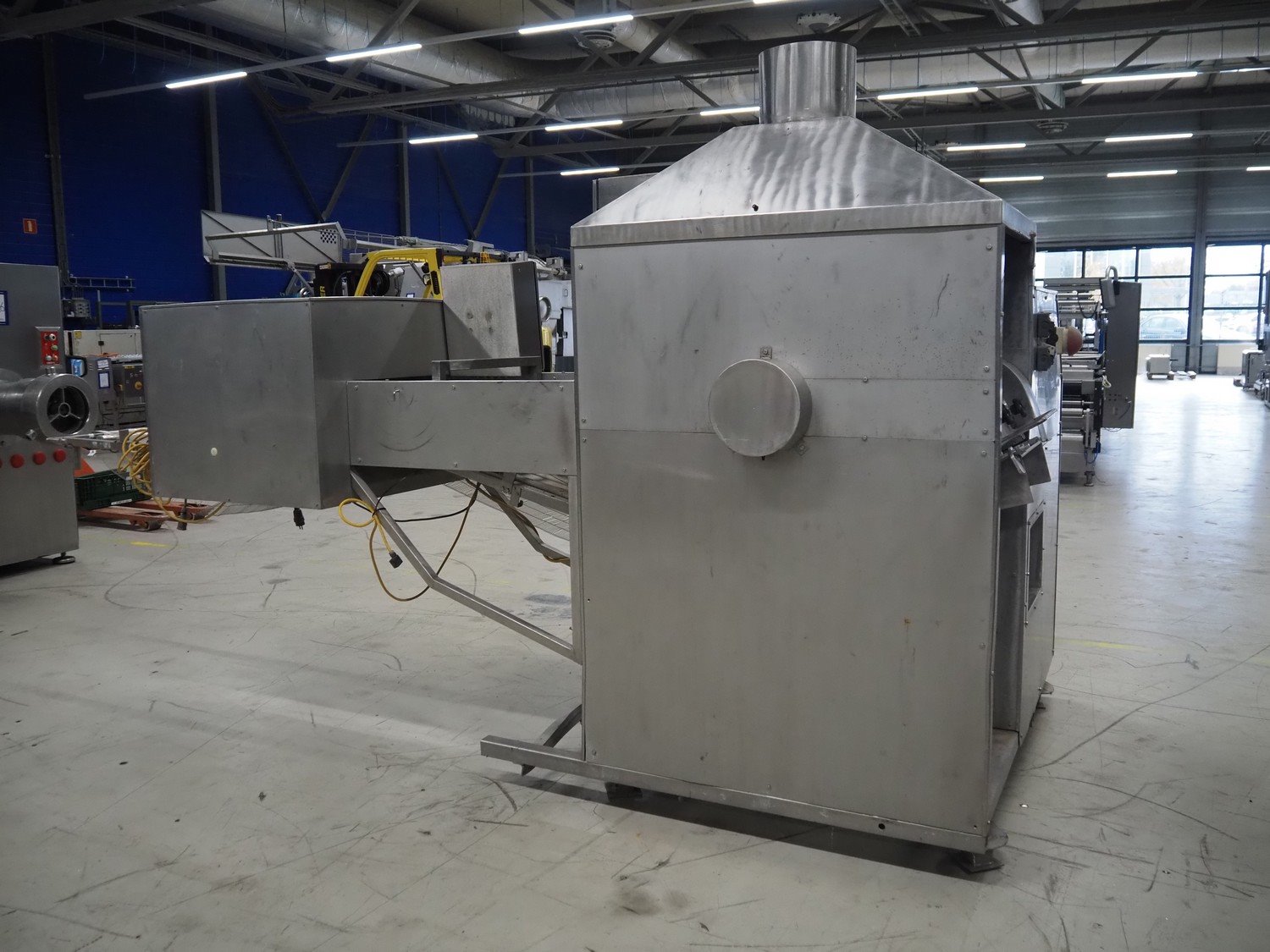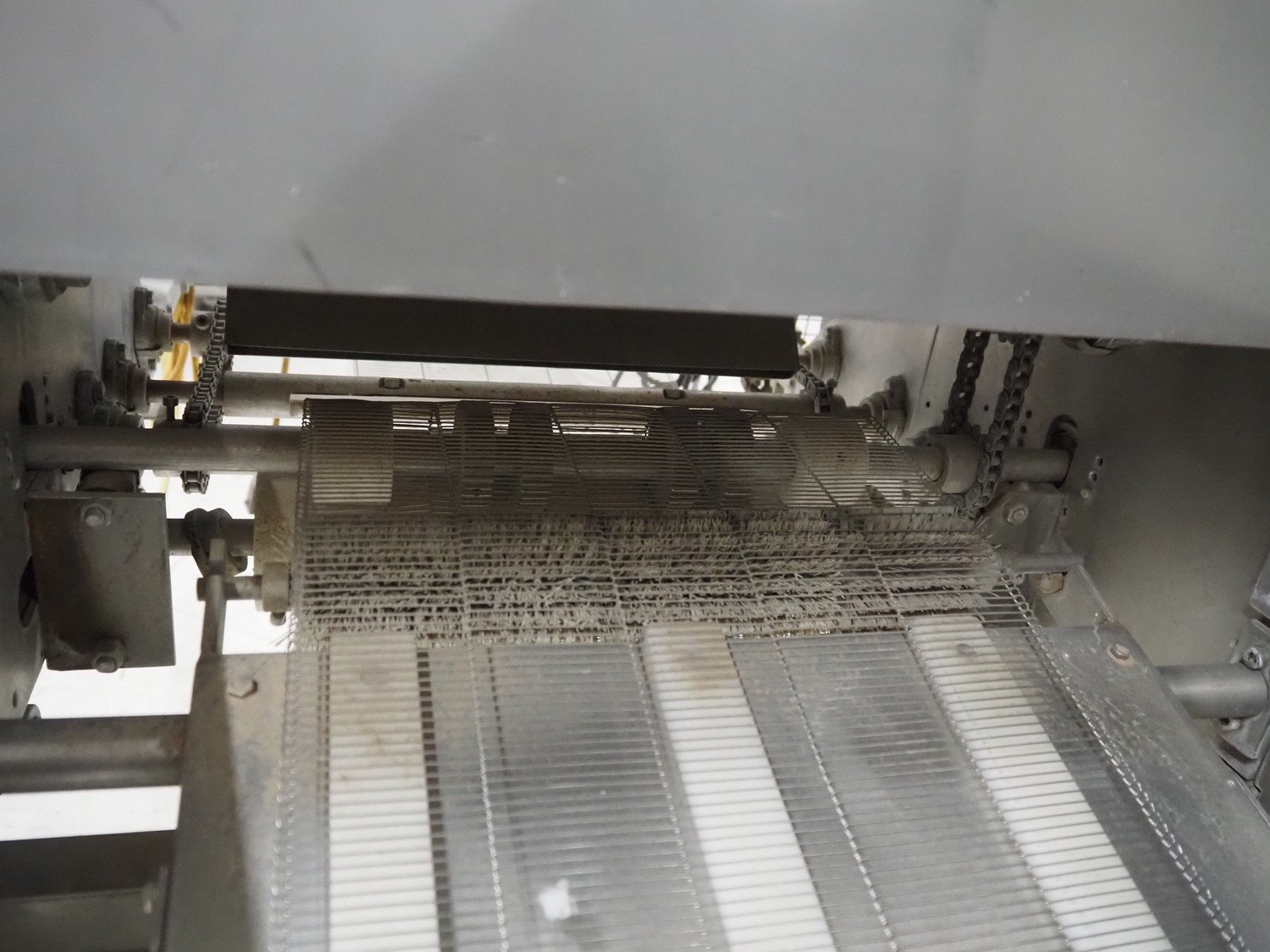 S.A. Balpe blintz machine, s/s mesh belt, belt width: 300 mm, diameter roller: 800 mm, total dimensions: 3500 mm x 1800 mm x 2300 mm. With additional parts.