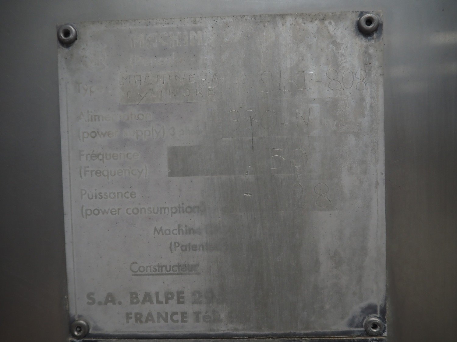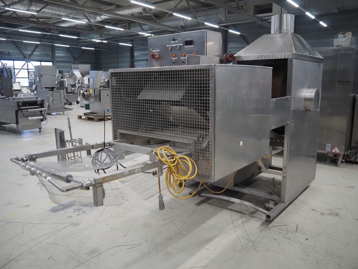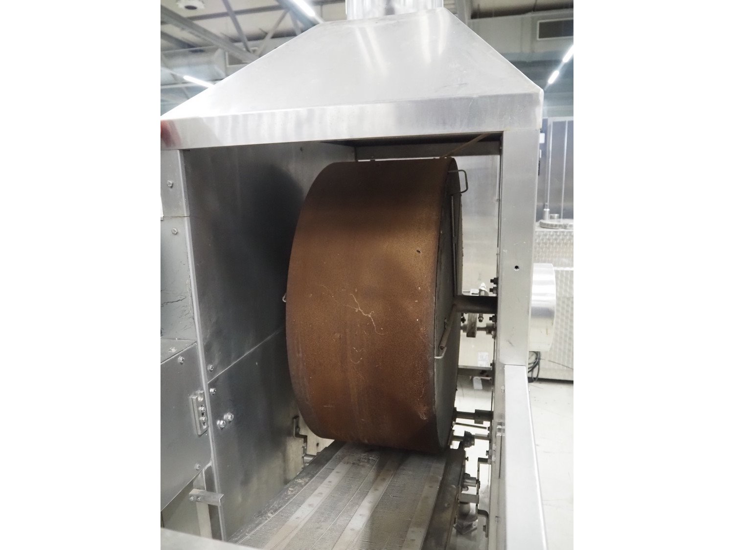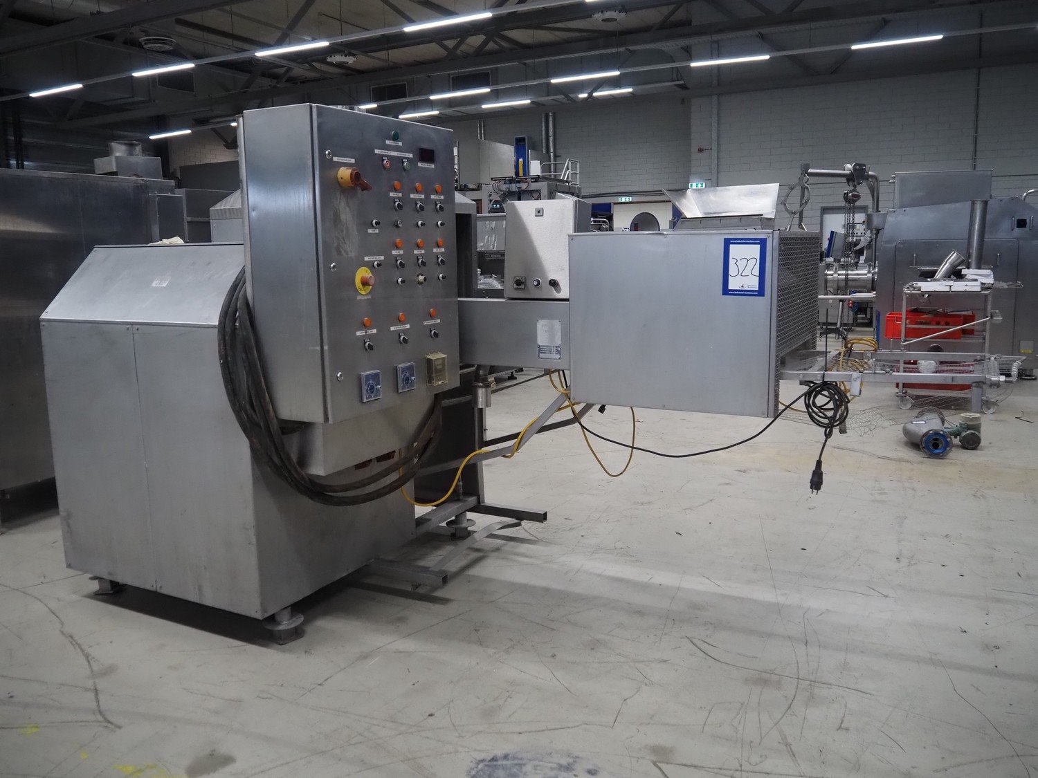 S.A. Balpe blintz machine, s/s mesh belt, belt width: 300 mm, diameter roller: 800 mm, total dimensions: 3500 mm x 1800 mm x 2300 mm. With additional parts.