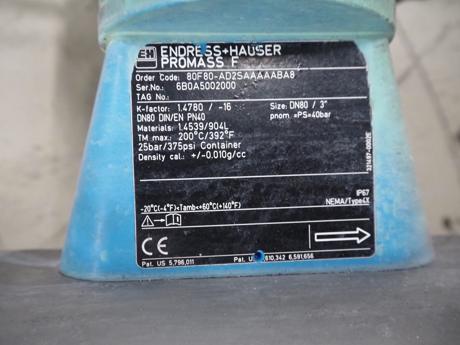 Endress+Hauser mass flow meter, type: PROMASS F, serial number: 6B0A5002000, DN80.