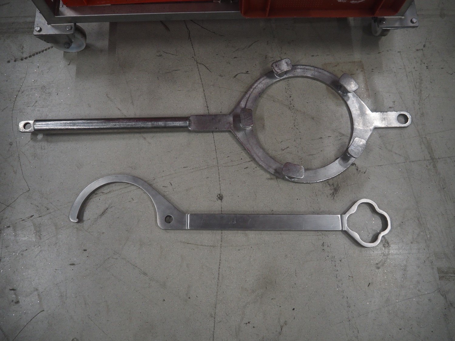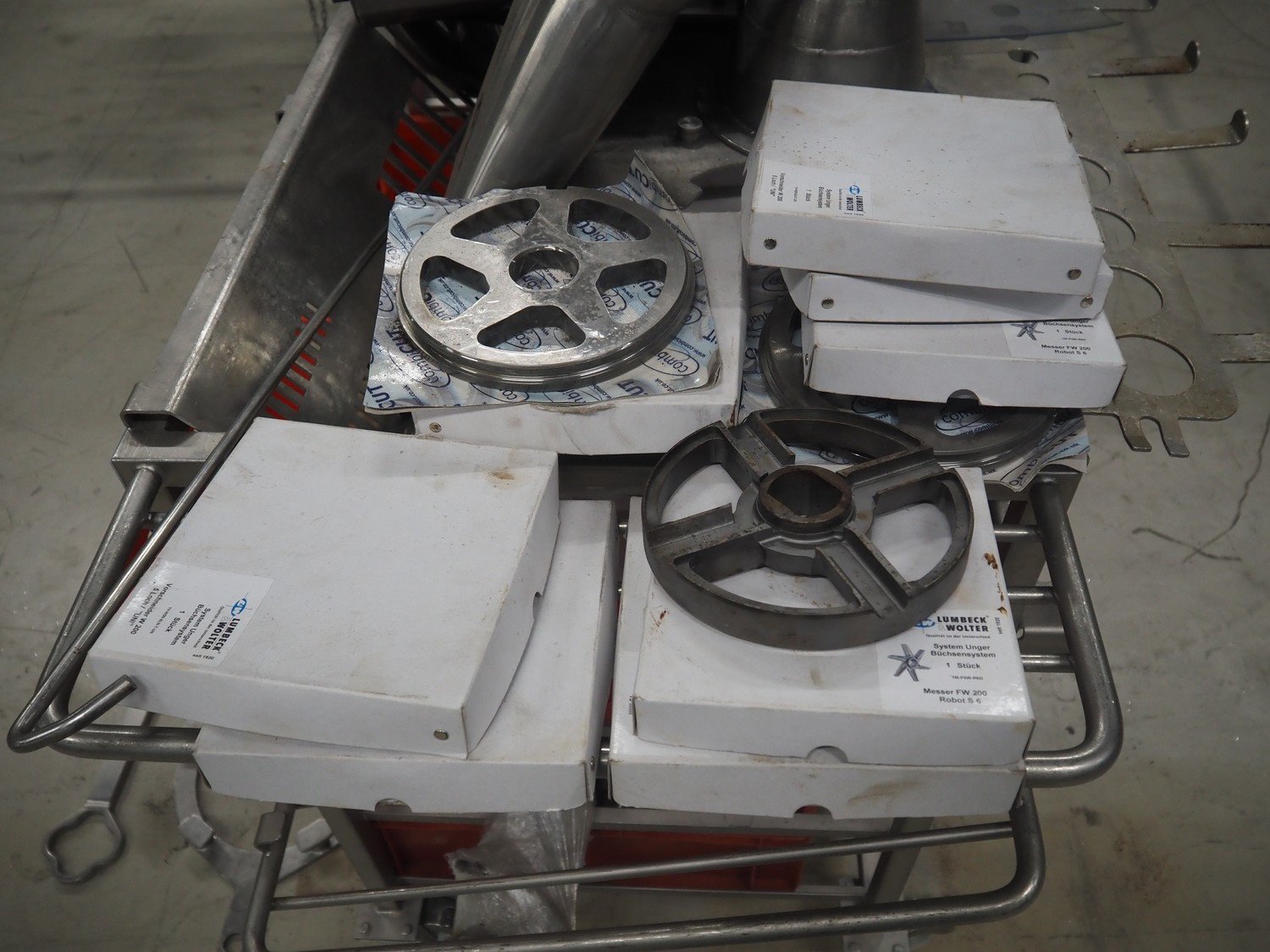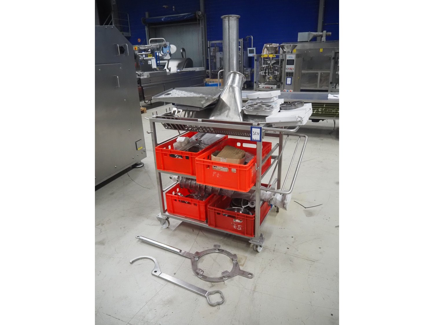 PSS Svidnik a.s. grinder, type: SG 200, serial number: 04, year of construction: 2013, 30.5 kW, weight: 1600 kg, plate diameter: 200 mm, total dimensions: 2700 mm x 1300 mm x 2350 mm. Including s/s trolley with parts, dimensions: 1250 mm x 1000 mm x 1050 mm.