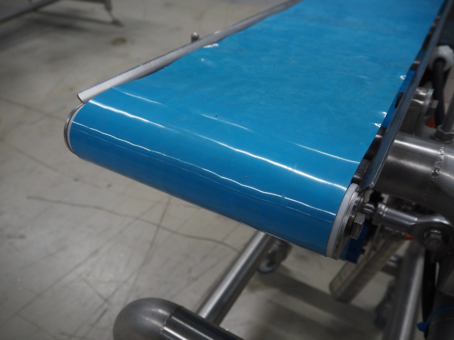 Mobile transport belt, s/s frame, plastic belt, belt width: 240 mm, total dimensions: 1480 mm x 430 mm x 880 mm.