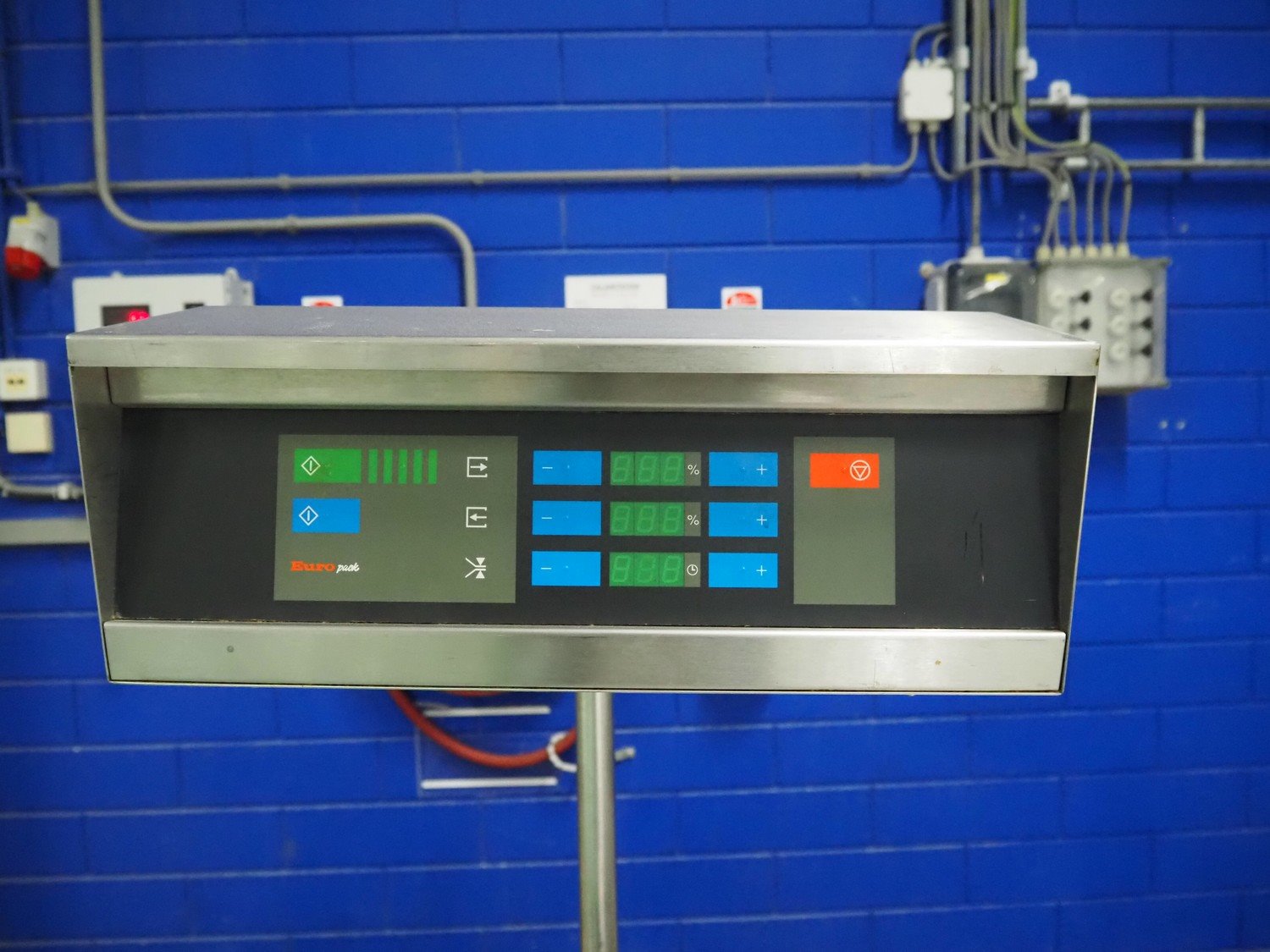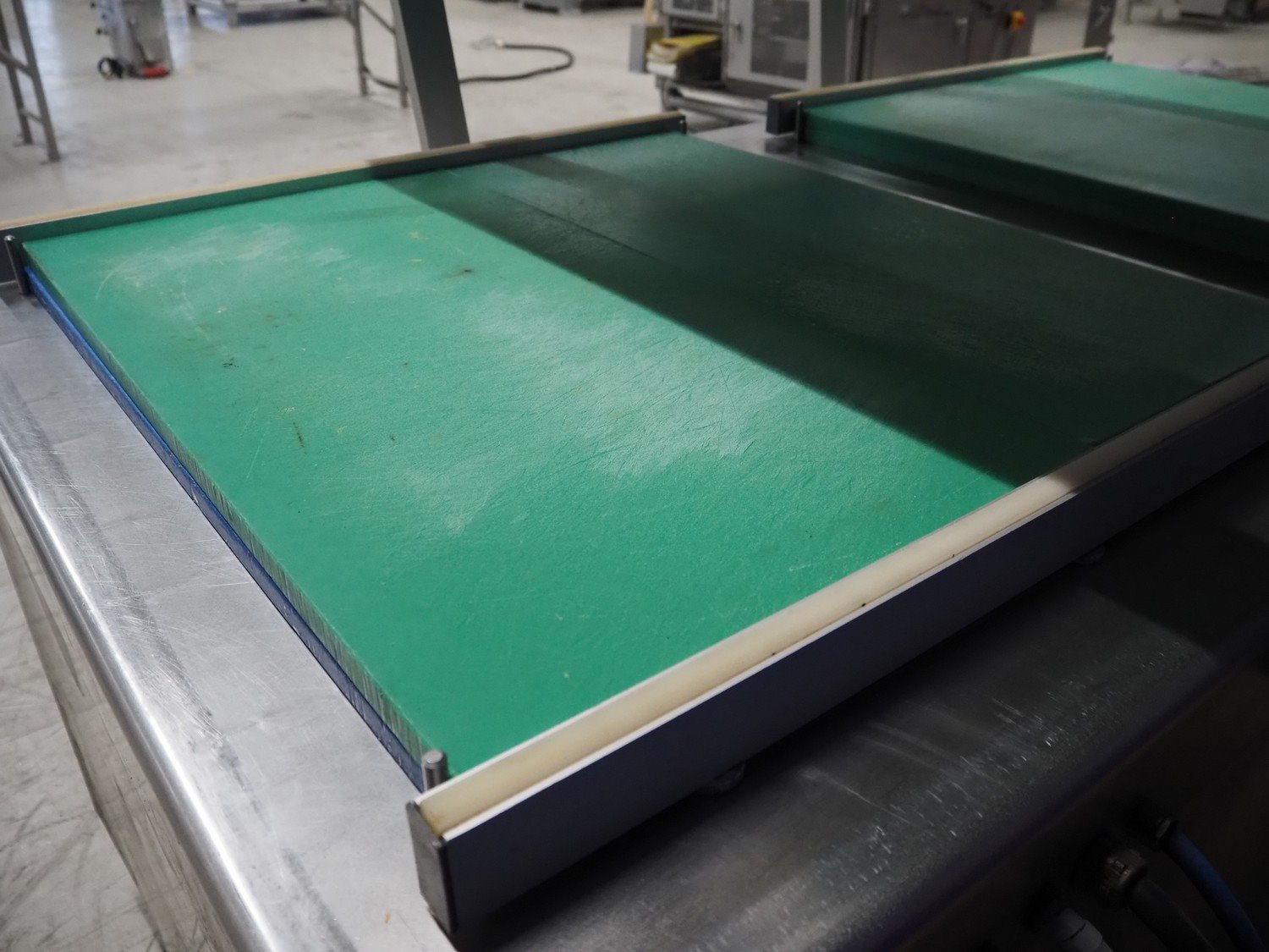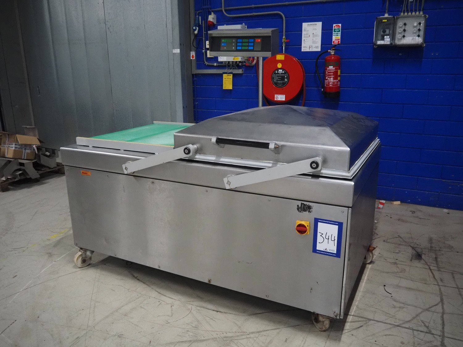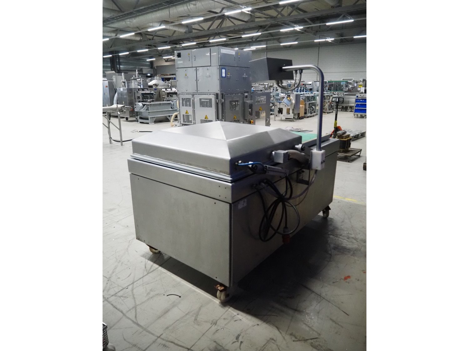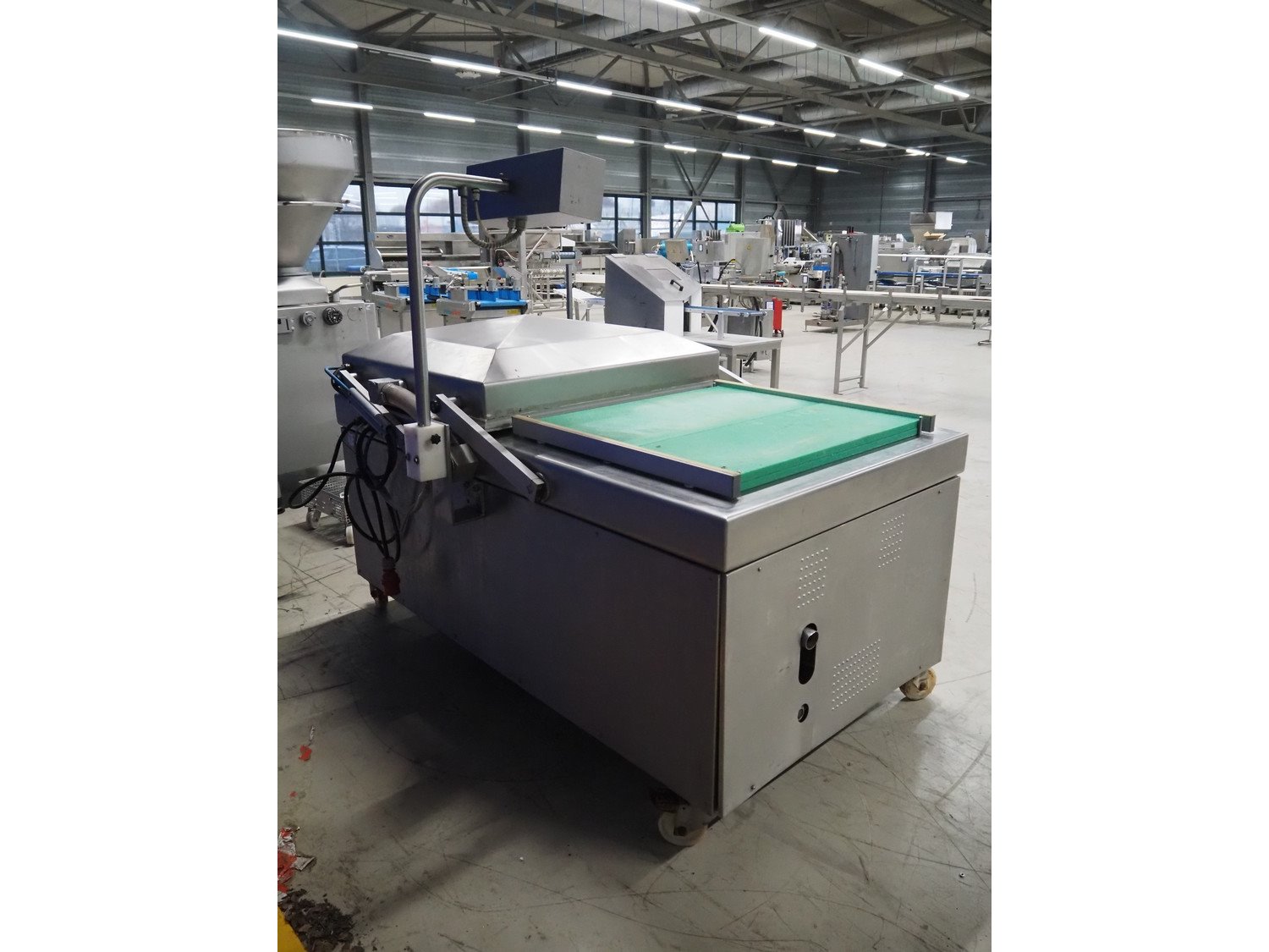 Europack B.V. mobile double chamber vacuum machine, type: DAS-2000, number: 609282206002, 400 V, 3 Ph, 50 Hz, 22.0 A, 9.0 kW, seal width: (2x) 850 mm, dimensions chamber: (2x) 850 mm x 800 mm, total dimensions: 2020 mm x 1180 mm x 1760 mm.