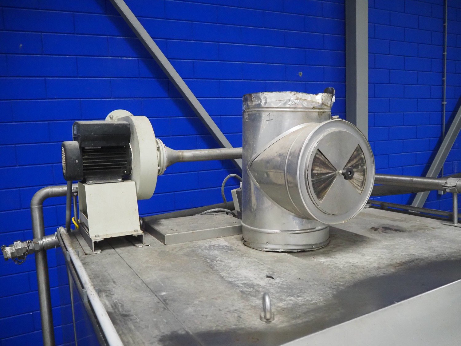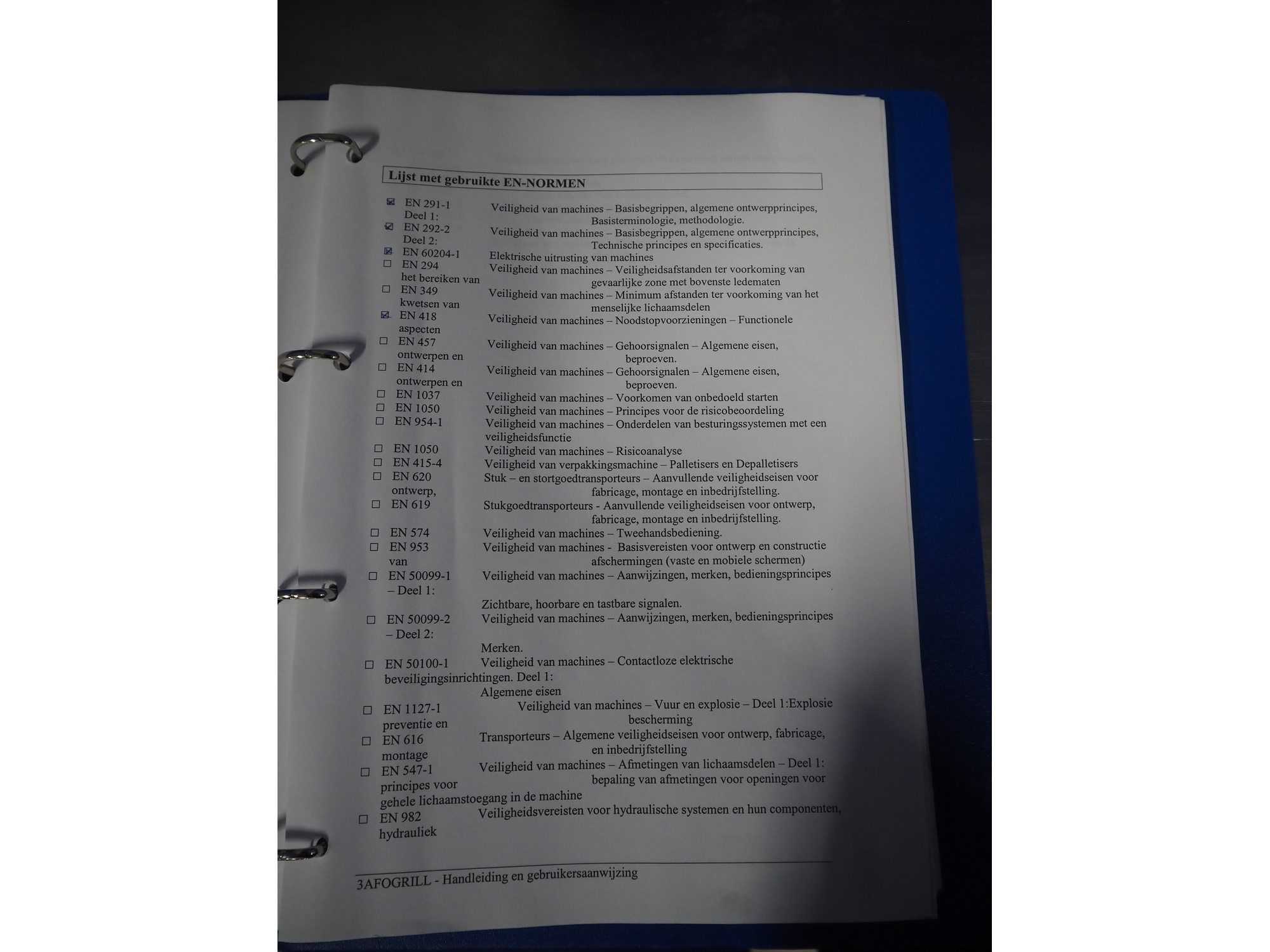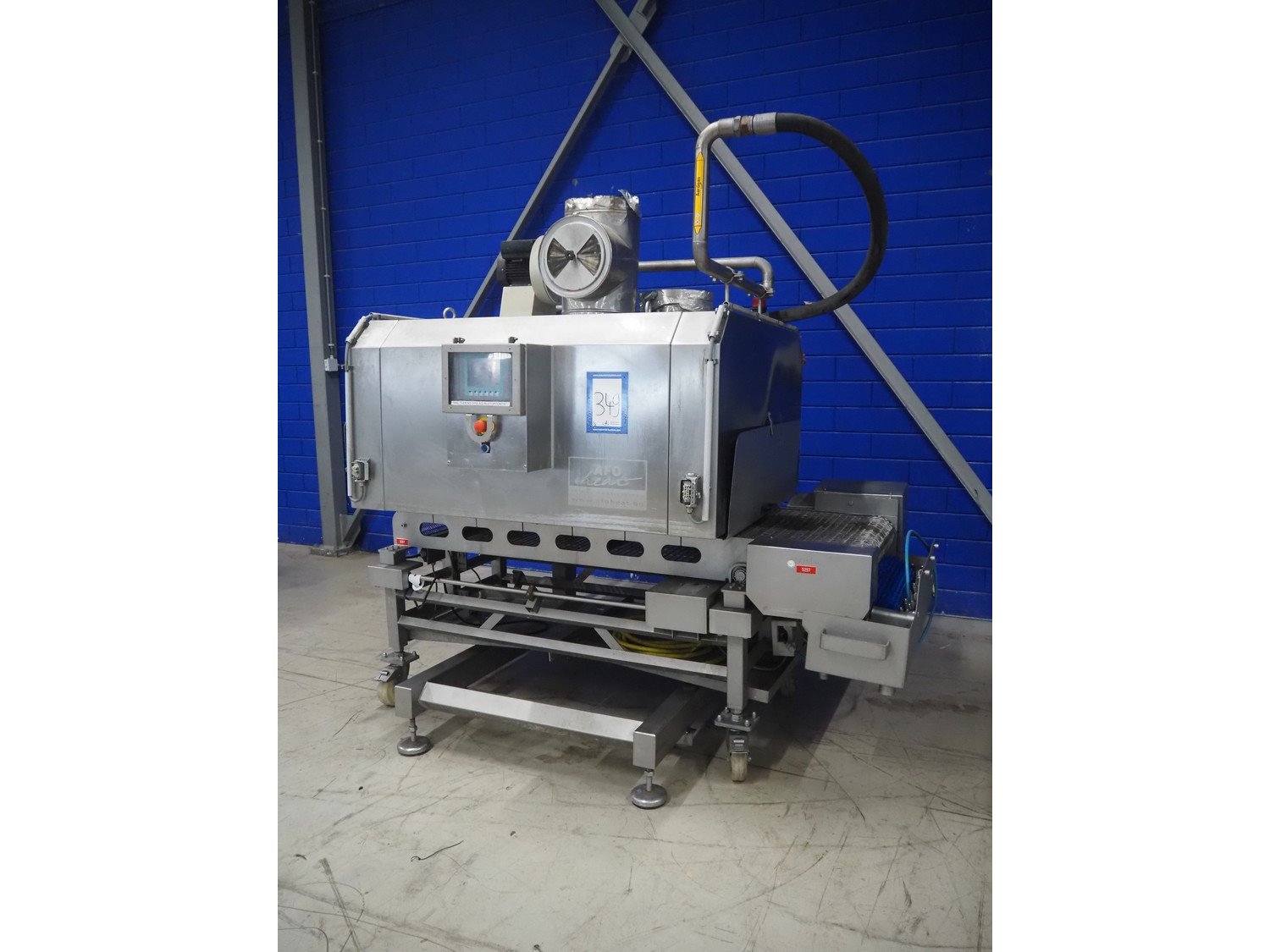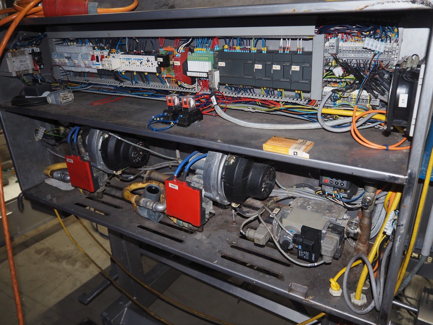 AFO Heat grill, type: AFOGRILL, serial number: F 022, year of construction: 2006, 400 V, 3 Ph, (2x) 72 kW, weight: 950 kg, s/s mesh belt, belt width: 630 mm, clearance: 700 mm x 220 mm, total dimensions: 2350 mm x 1800 mm x 2210 mm.