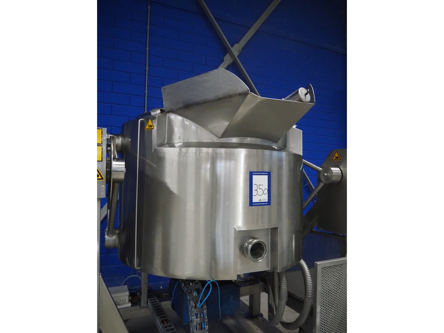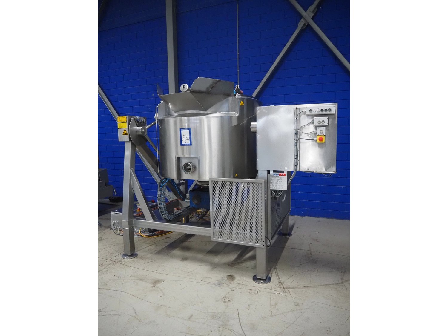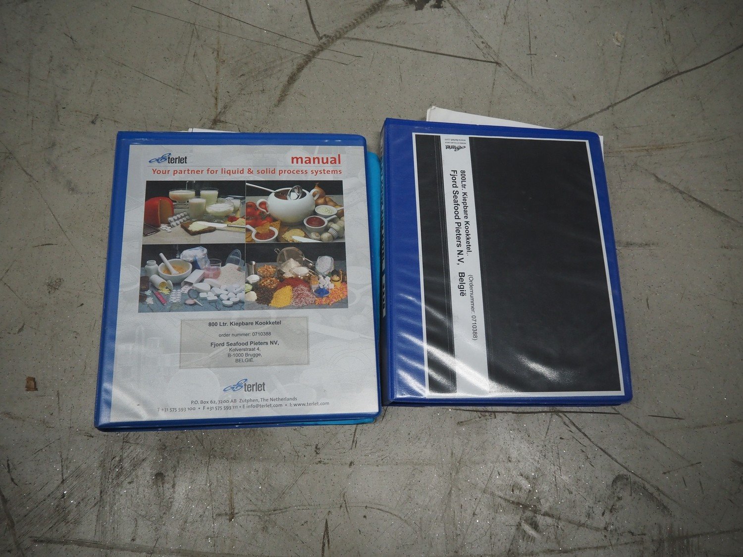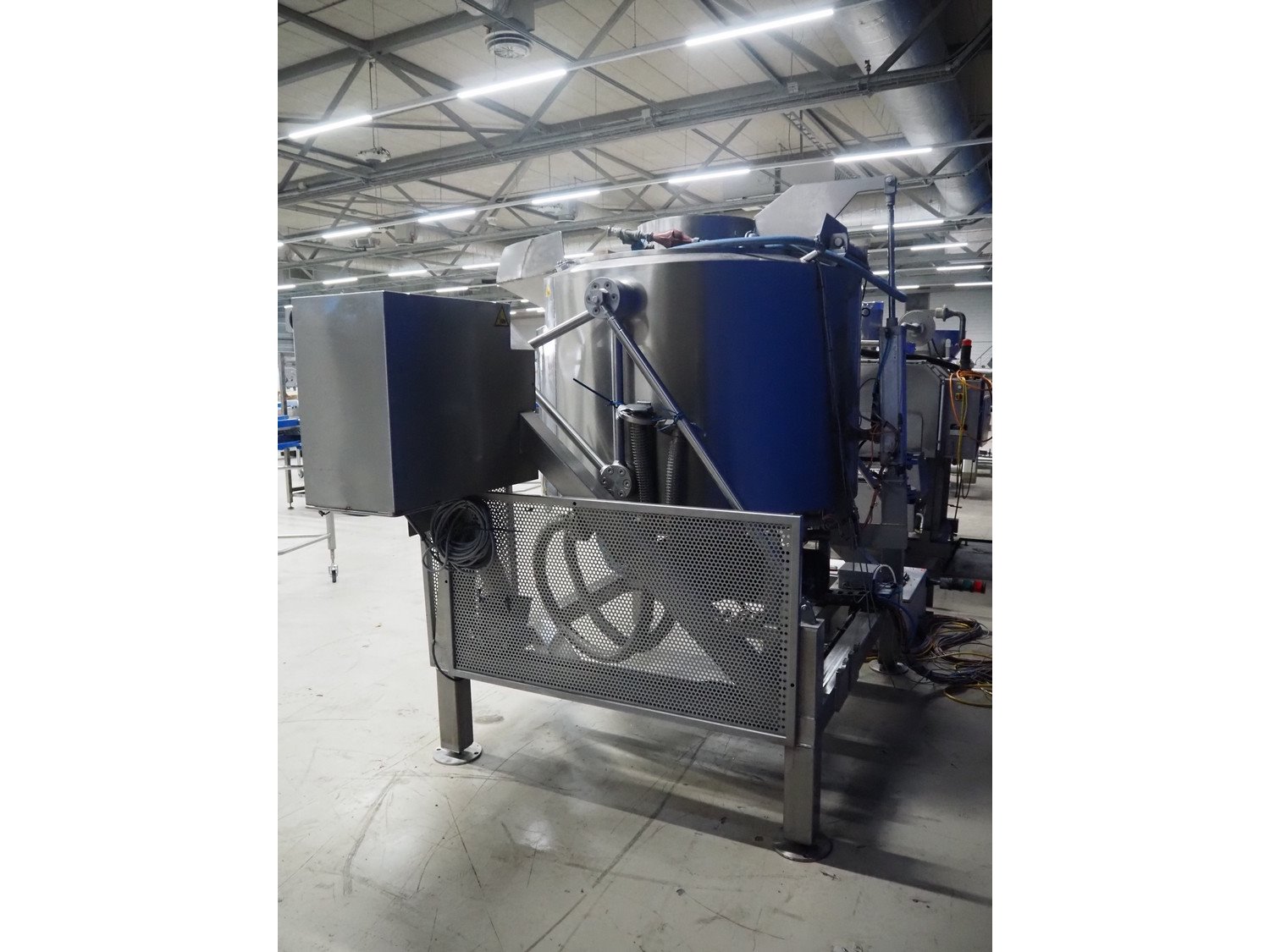 Terlet double jacketed cooking vessel with agitator, project number: 0710388, year of construction: 2007, 400 V, 50 Hz, 4 kW, weight: 1400 kg, product volume: 800 liter, inner vessel: 905 liter, dimensions: 1750 mm x 2530 mm x 2150 mm.