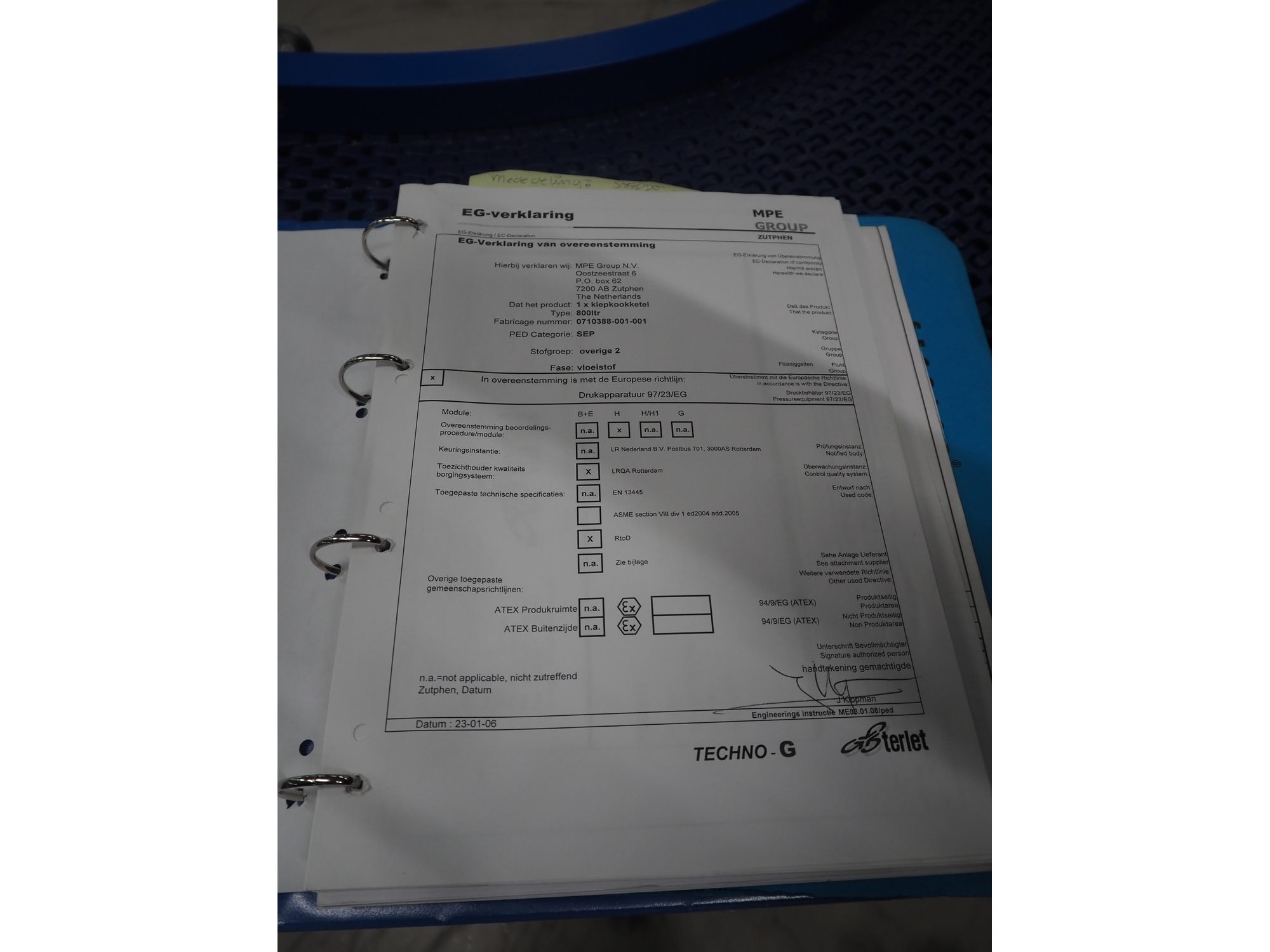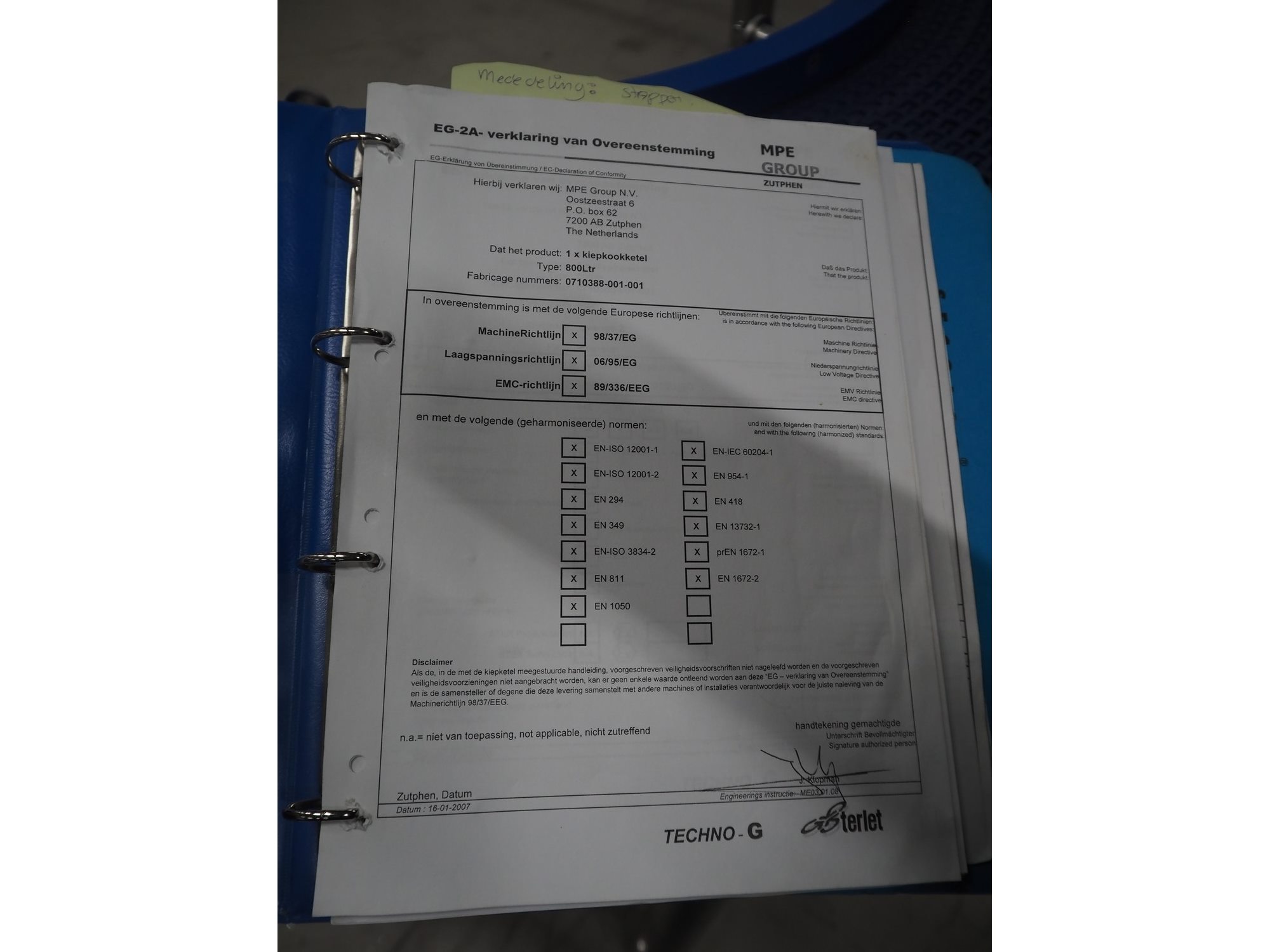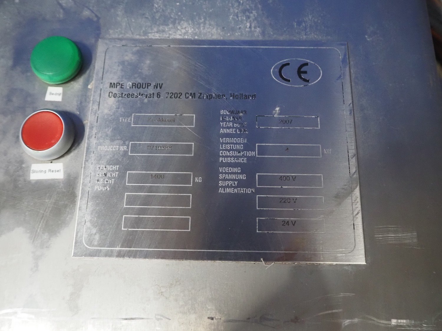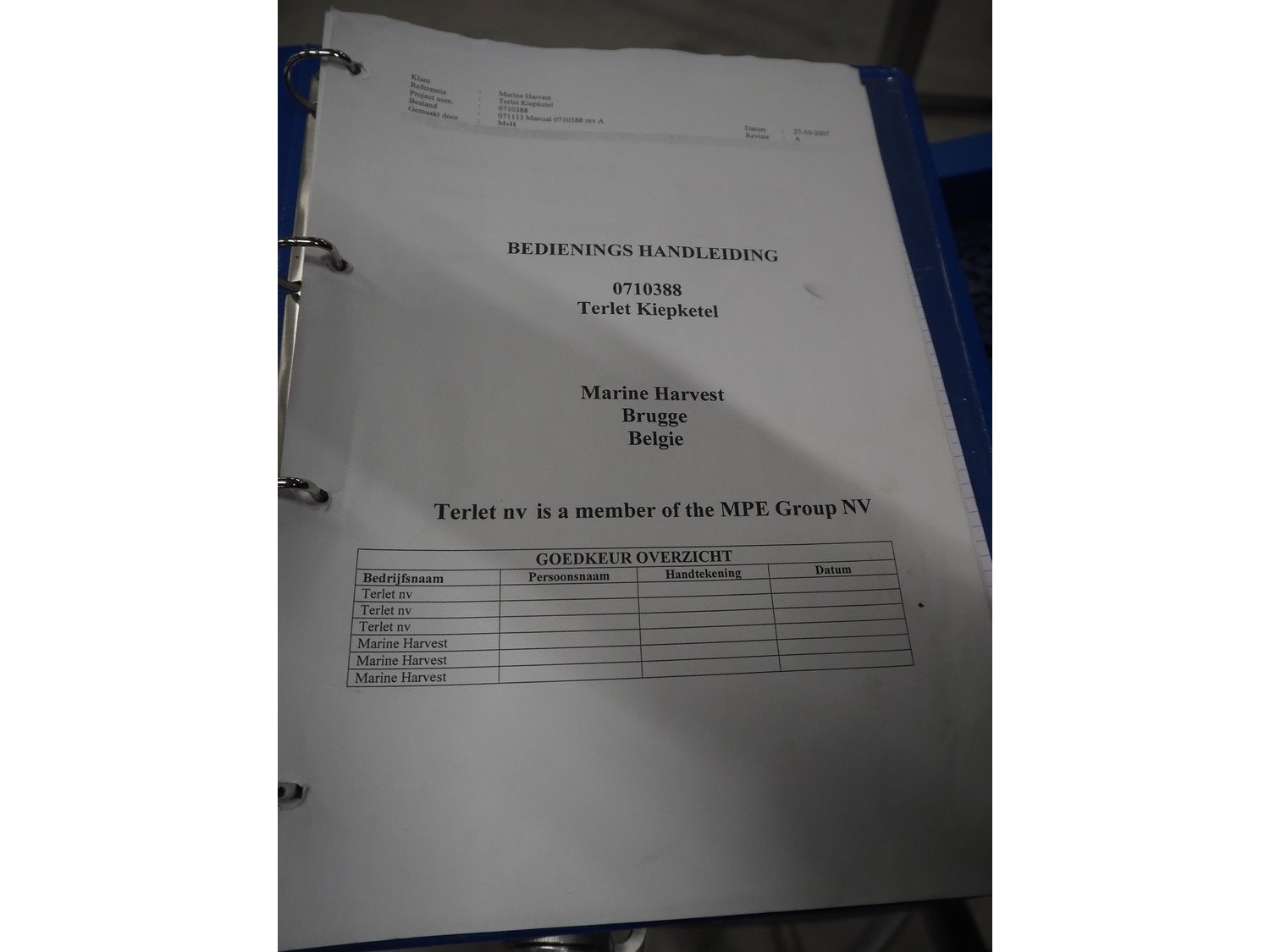 Terlet double jacketed cooking vessel with agitator, project number: 0710388, year of construction: 2007, 400 V, 50 Hz, 4 kW, weight: 1400 kg, product volume: 800 liter, inner vessel: 905 liter, dimensions: 1750 mm x 2530 mm x 2150 mm.