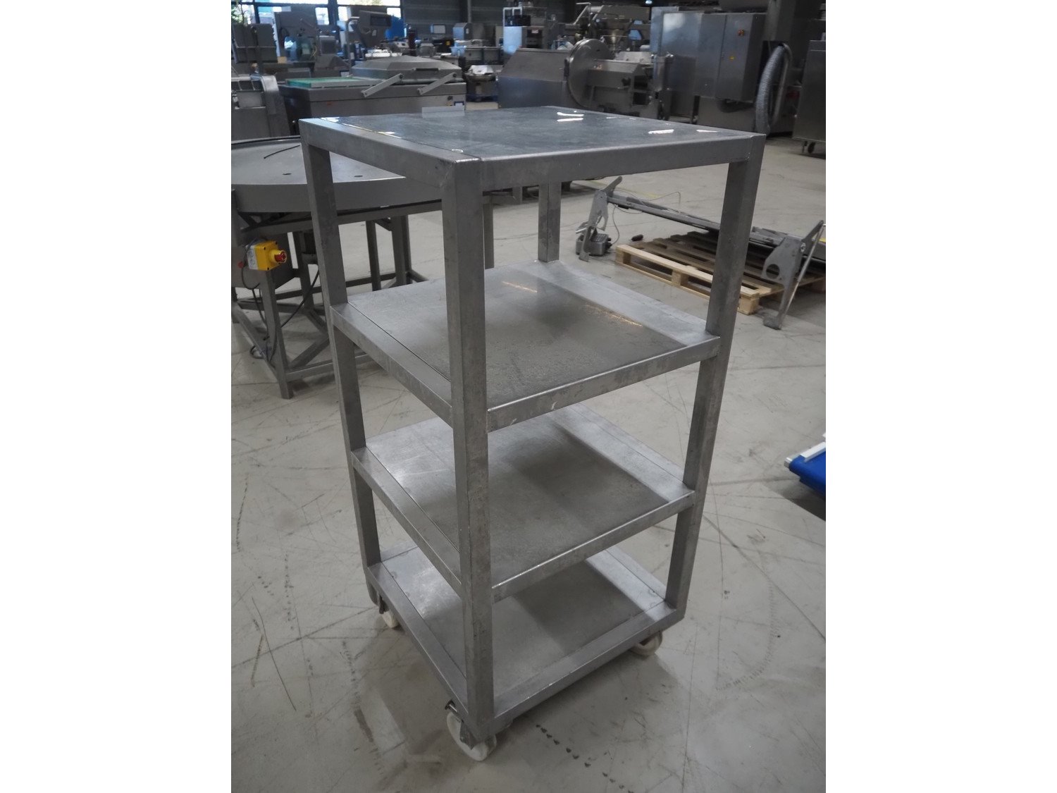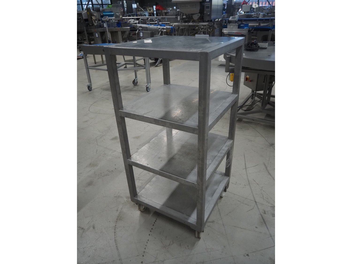 S/s trolley, 4 floors, dimensions: 600 mm x 600 mm x 1290 mm.