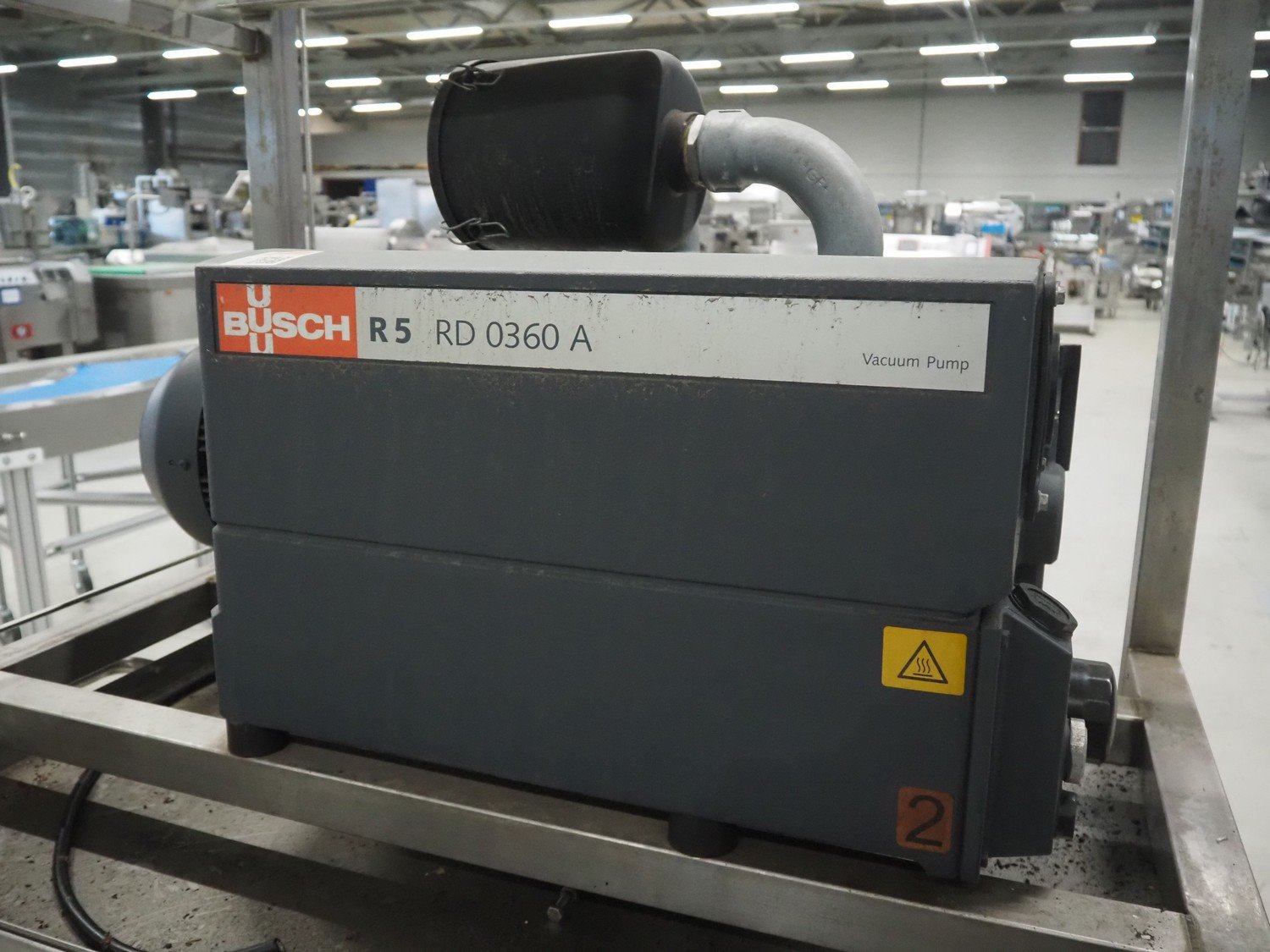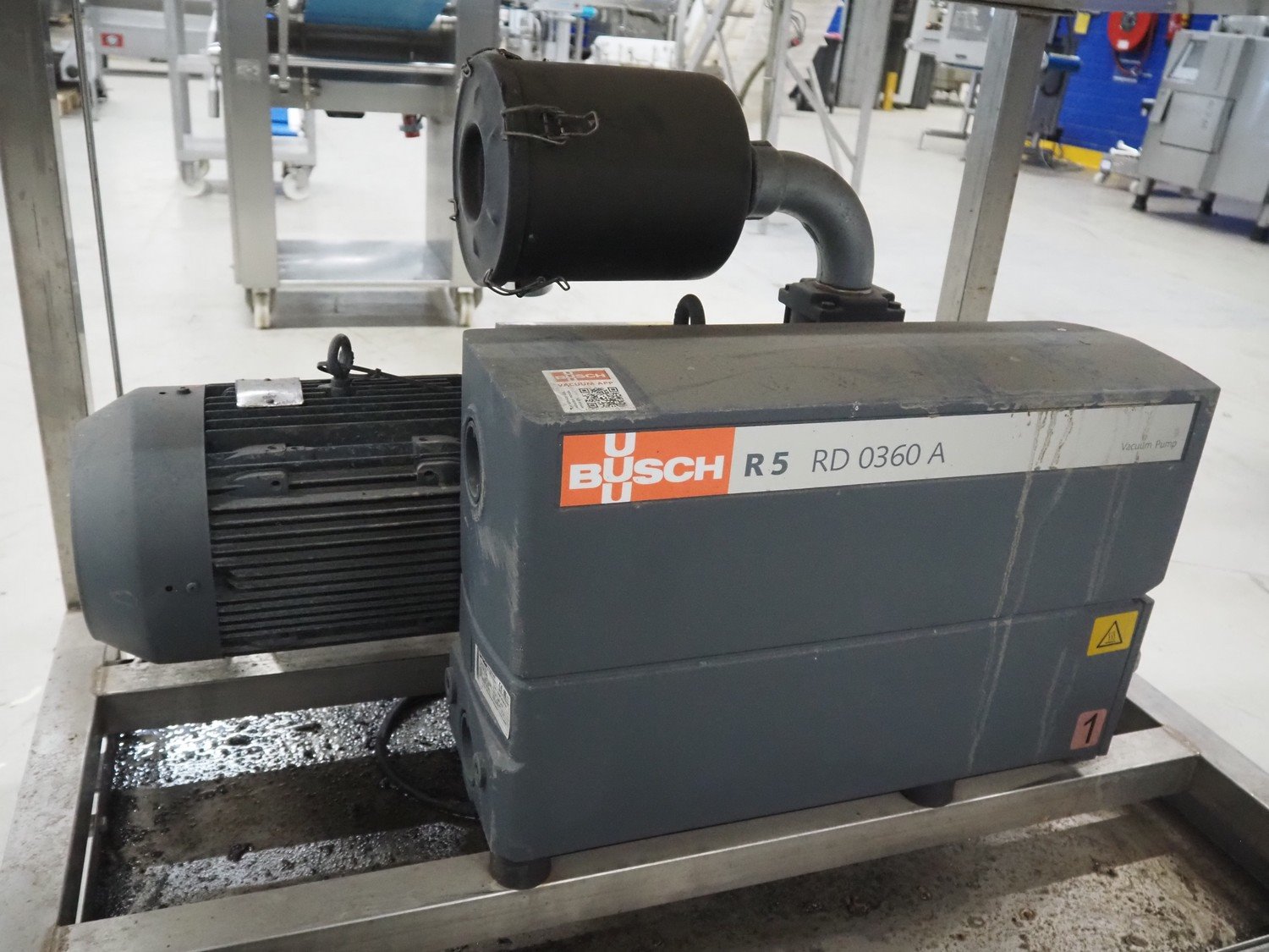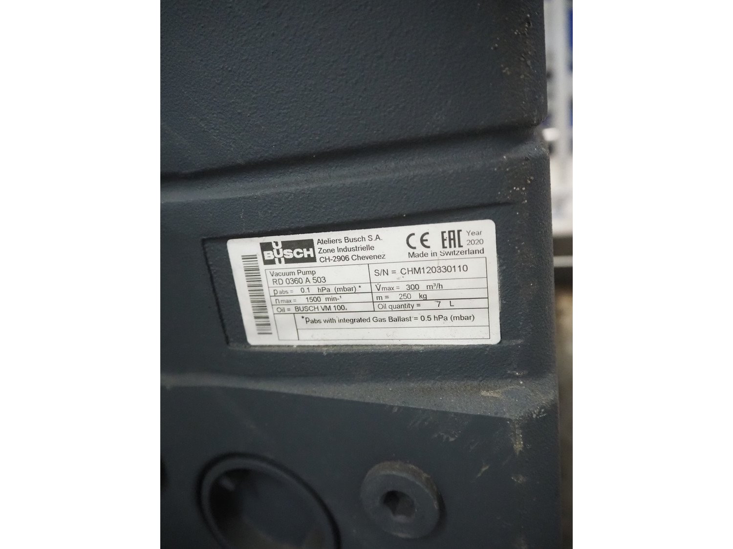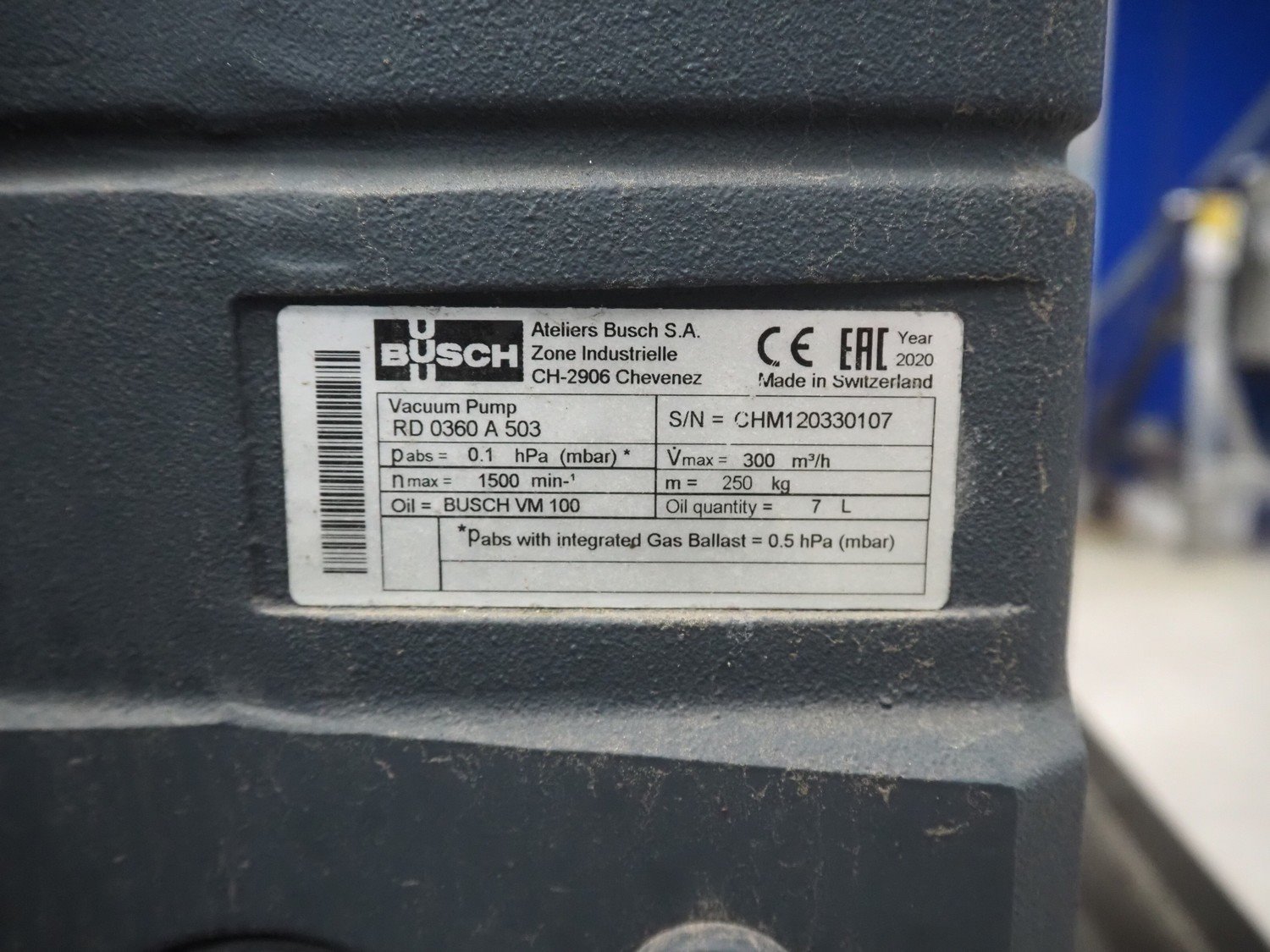 S/s rack with 2 Busch vacuum pumps, type: (2x) RD 0360 A 503, serial number: CHM120330107 / CHM120330110, year of construction: 2020, capacity: (2x) 300 m³ per hour, total dimensions: 1150 mm x 800 mm x 1850 mm.