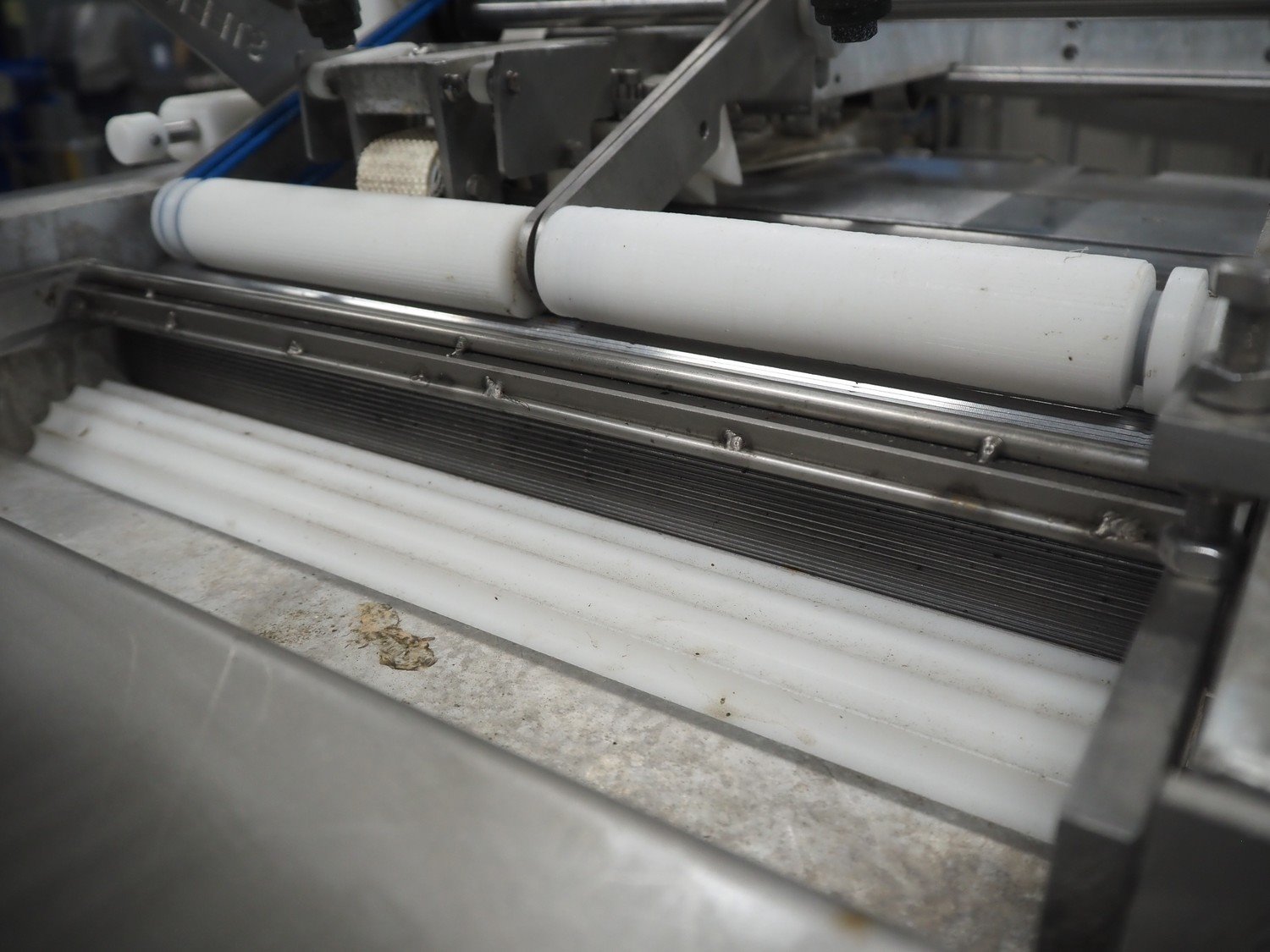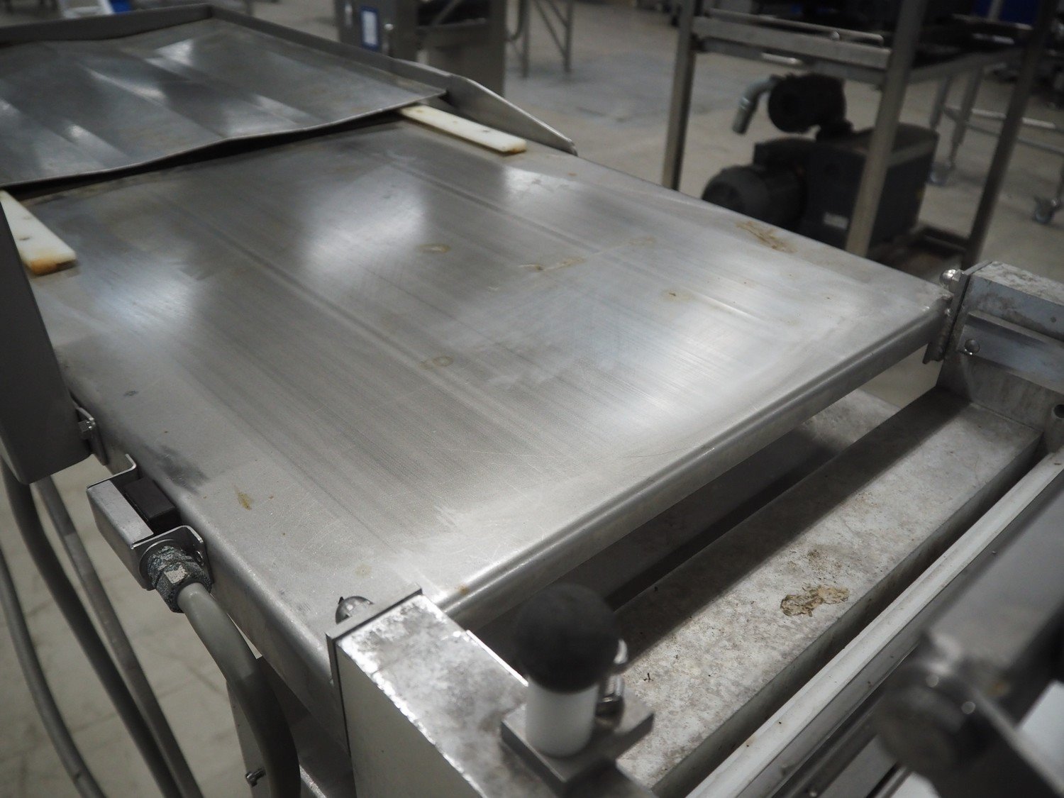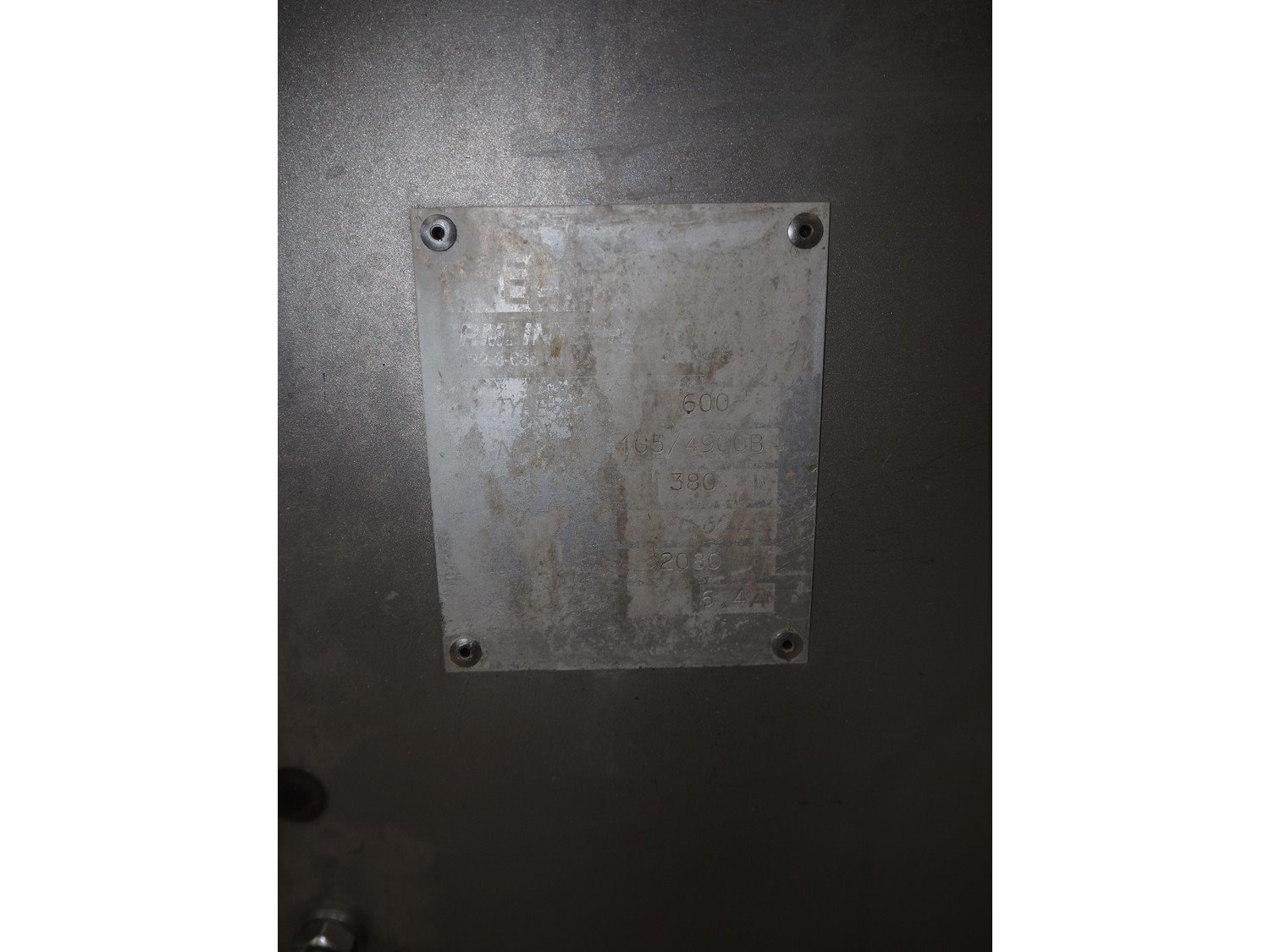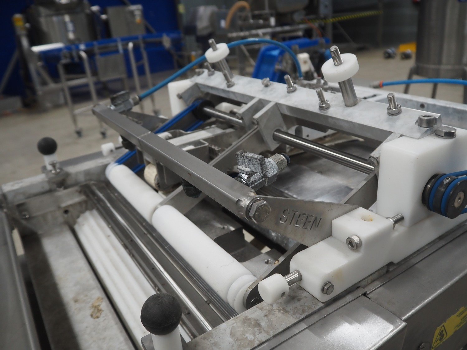 Steen fish skinning machine, type: 600, number: 1G5/4900B, 380 V, 6.4 A, belt width: 440 mm, plastic roll width: 460 mm, total dimensions: 2010 mm x 660 mm x 1410 mm.