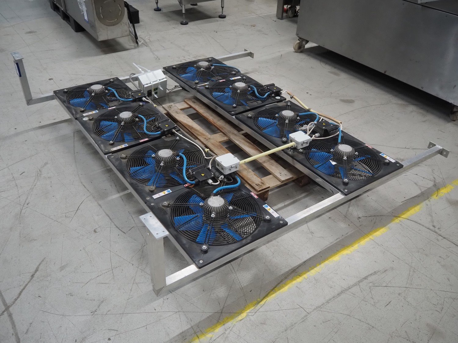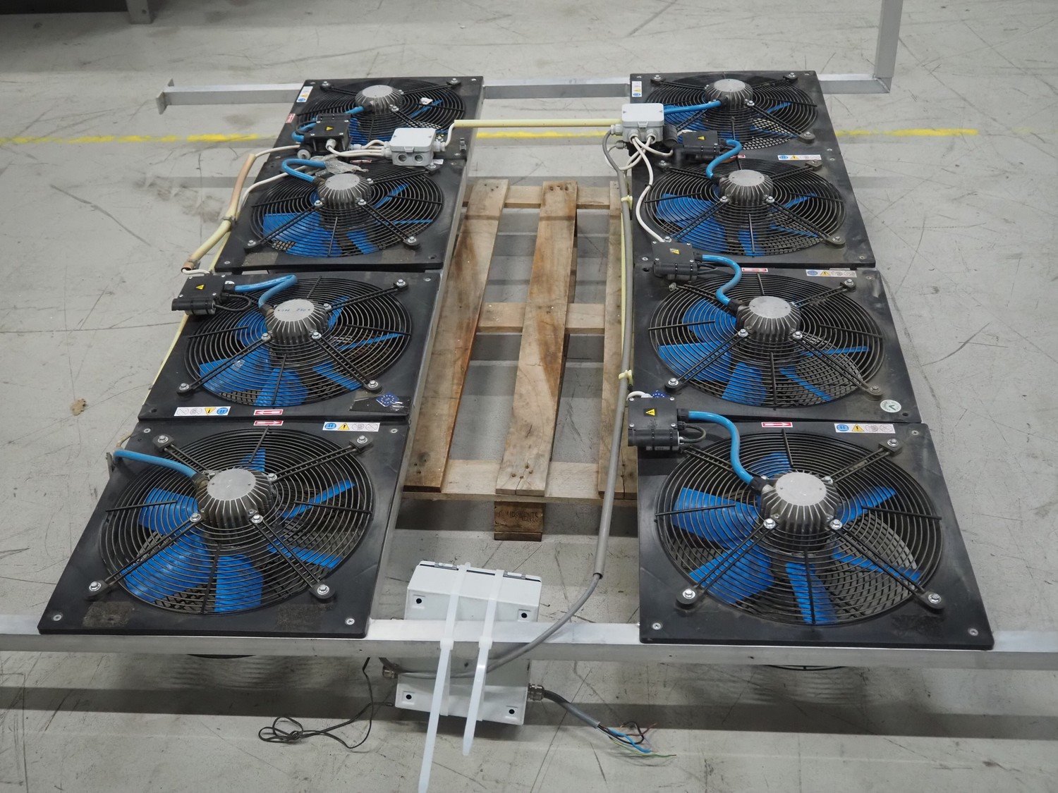 S/s frame with 8 fans, diameter each fan: 420 mm, total dimensions: 2020 mm x 2120 mm x 570 mm.