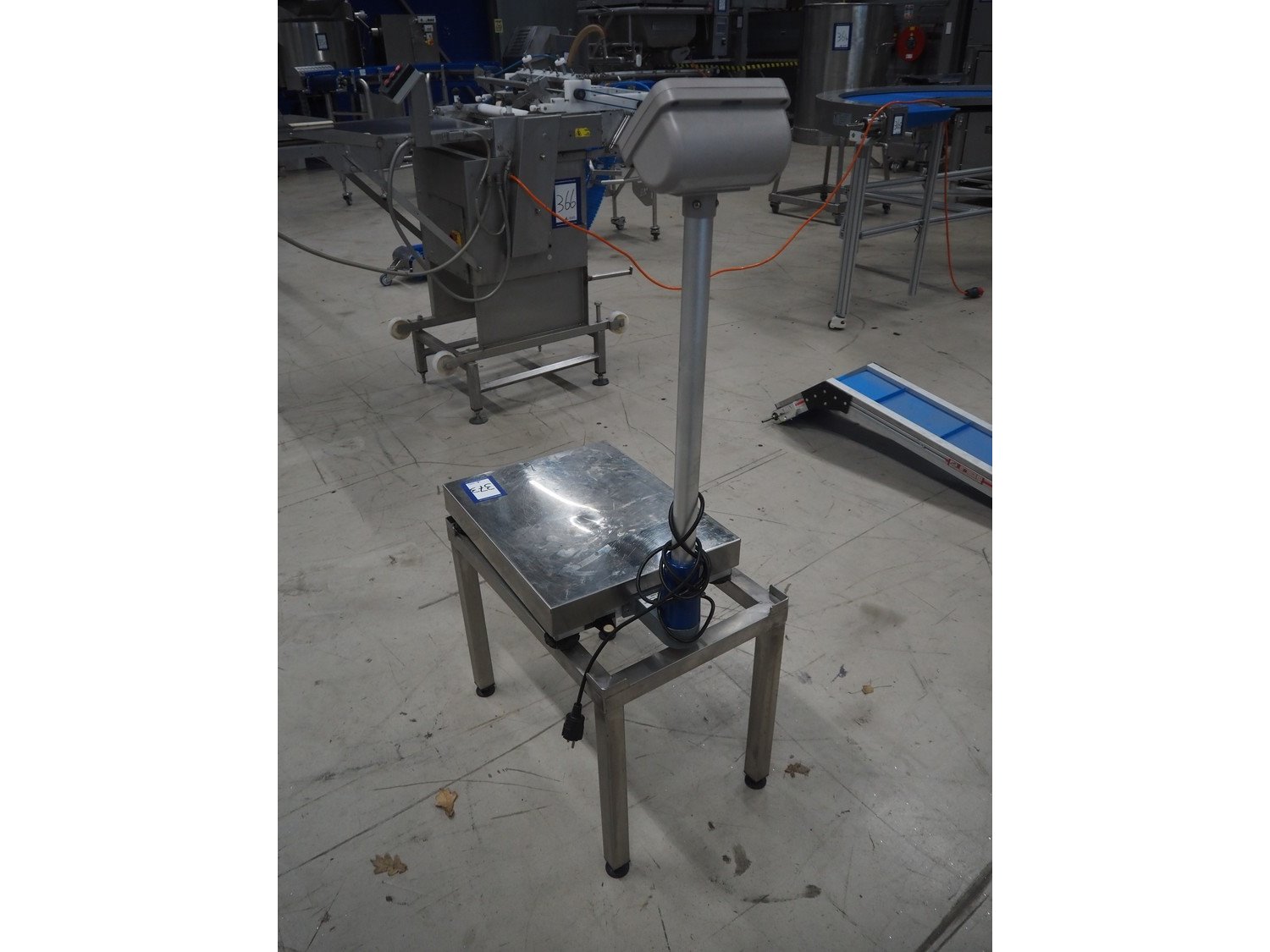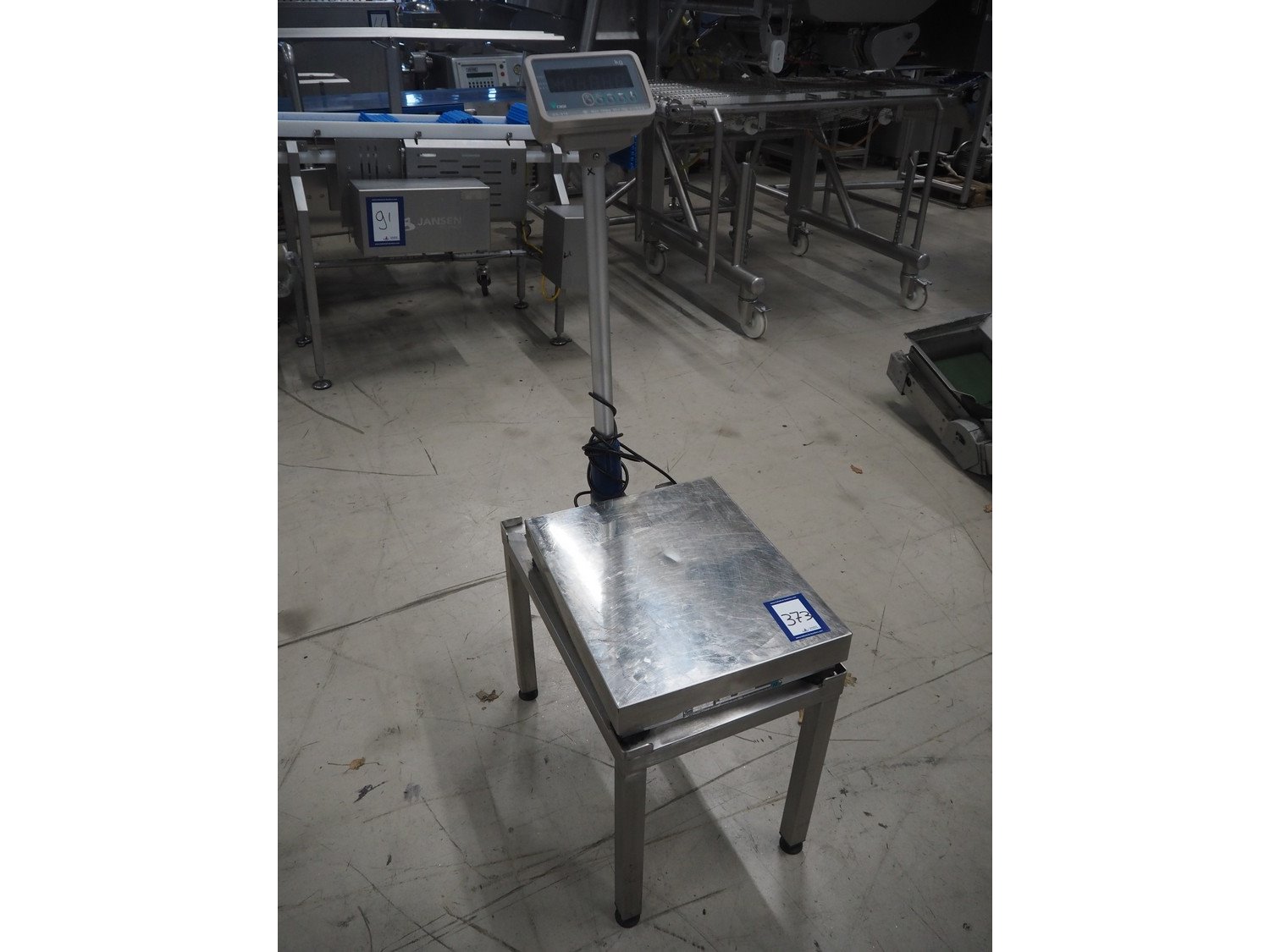 Digi weighing scale, model: DS-516, serial number: 98349000, 100/240 V, 50/60 Hz, 6 W, 0.1 A, maximum: 150 kg, minimum: 1 kg, T=150 kg, e=: 50 g, scale dimensions: 520 mm x 415 mm, total dimensions: 650 mm x 415 mm x 1400 mm.